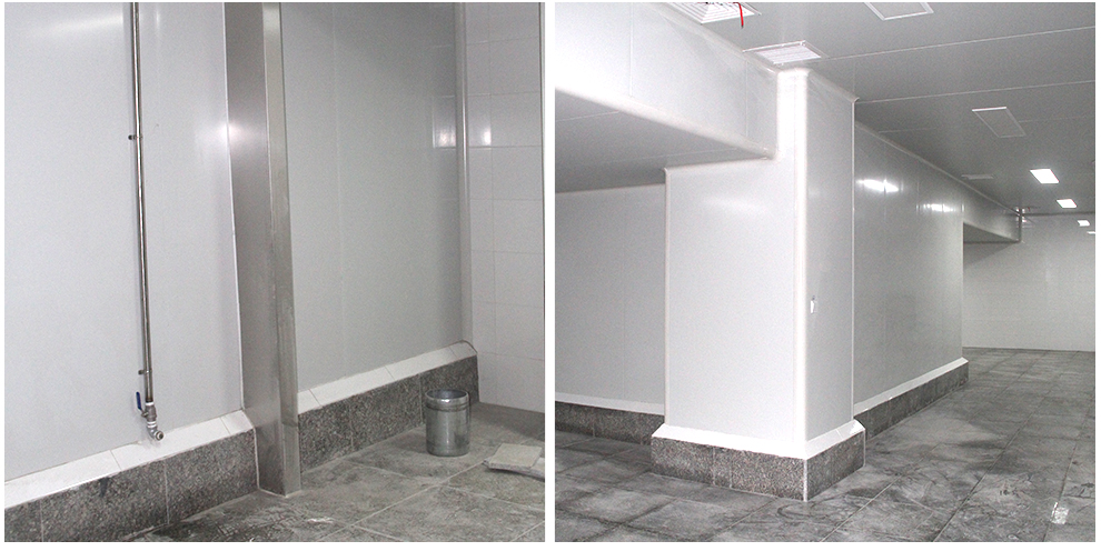 四川品品食品有限公司車間為華盛興邦設(shè)計、裝修,車間裝修建筑面積2800平方米,主要生產(chǎn)肉制品。華盛興邦承接的是其四號牛板筋生產(chǎn)車間,該工程地面采用金剛砂耐磨+固化地坪、花崗石地坪、PVC地坪三種方案,隔墻采用凈化彩鋼硅巖板、凈化不銹鋼硅巖板兩種材質(zhì),門窗均采用鋼質(zhì)門潔凈門、不銹鋼潔凈門、潔凈窗,以及臭氧消毒、通風(fēng)、制冷、排煙工程。