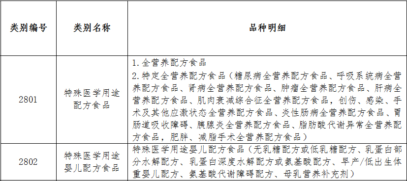 特殊醫(yī)學(xué)用途配方食品類別編號及名稱:2801特殊醫(yī)學(xué)用途配方食品;2802特殊醫(yī)學(xué)用途嬰兒配方食品