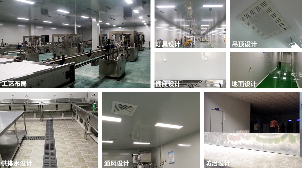 食品工廠設(shè)計(jì)包括:工藝布局(車間設(shè)計(jì))、供排水設(shè)計(jì)、燈具(照明)設(shè)計(jì)、插座設(shè)計(jì)、吊頂設(shè)計(jì)、地面設(shè)計(jì)、通風(fēng)設(shè)計(jì)、防治設(shè)計(jì)