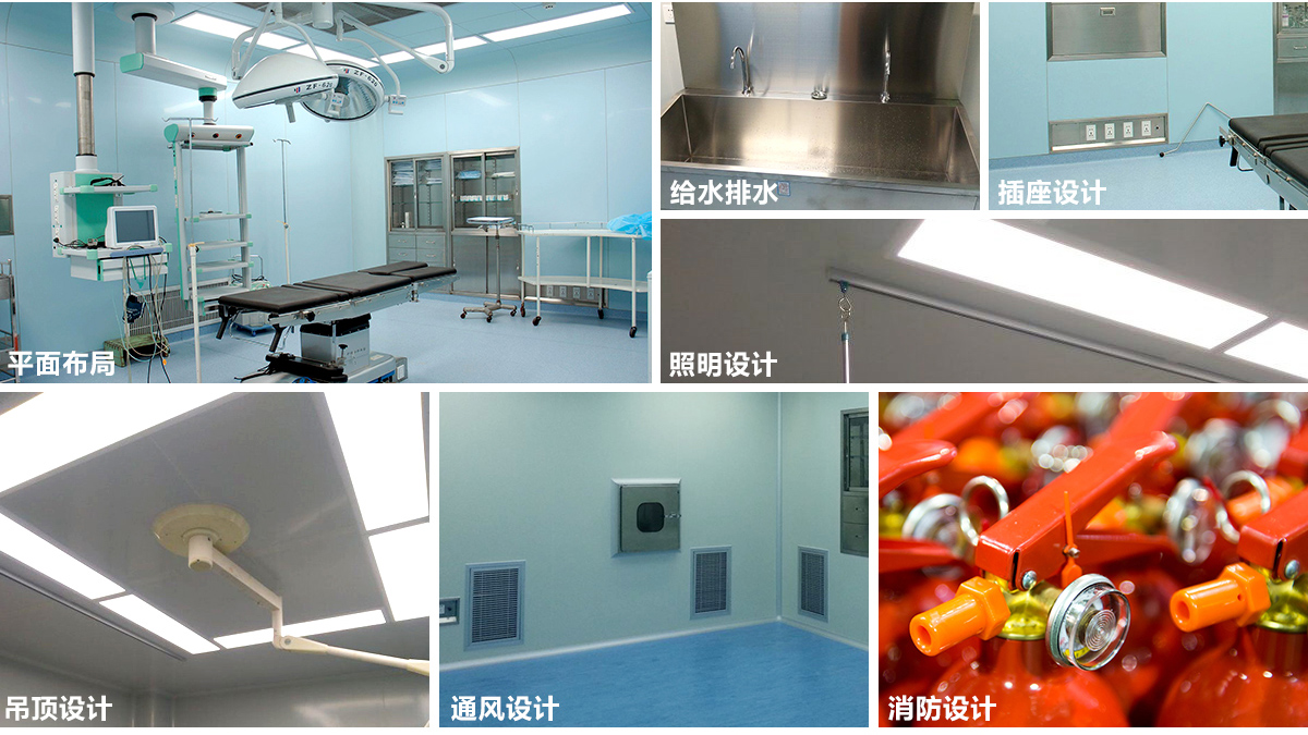 醫院手術室凈化設計包括:平面布局、給水排水、照明、插座、吊頂、通風、消防