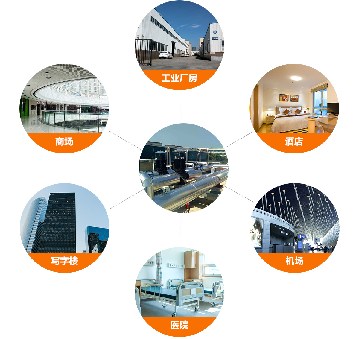 暖通空調工程應用領域:工業(yè)廠房、商場、酒店、寫字樓、醫(yī)院、機場