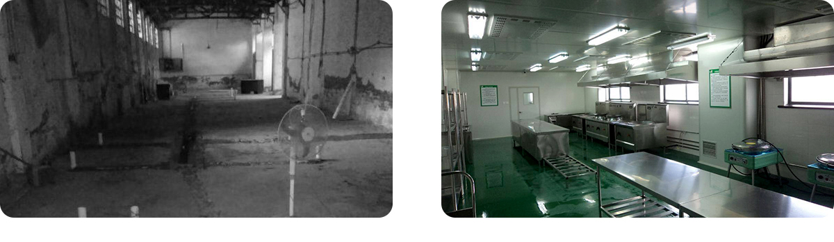 裝修后:工廠更正規(guī)化,完全能夠滿足生產(chǎn)需求,滿足HACCP認(rèn)證以及質(zhì)量體系(ISO)認(rèn)證要求,操作更規(guī)范流暢,高效生產(chǎn),工位條理清晰,節(jié)約人工成本。