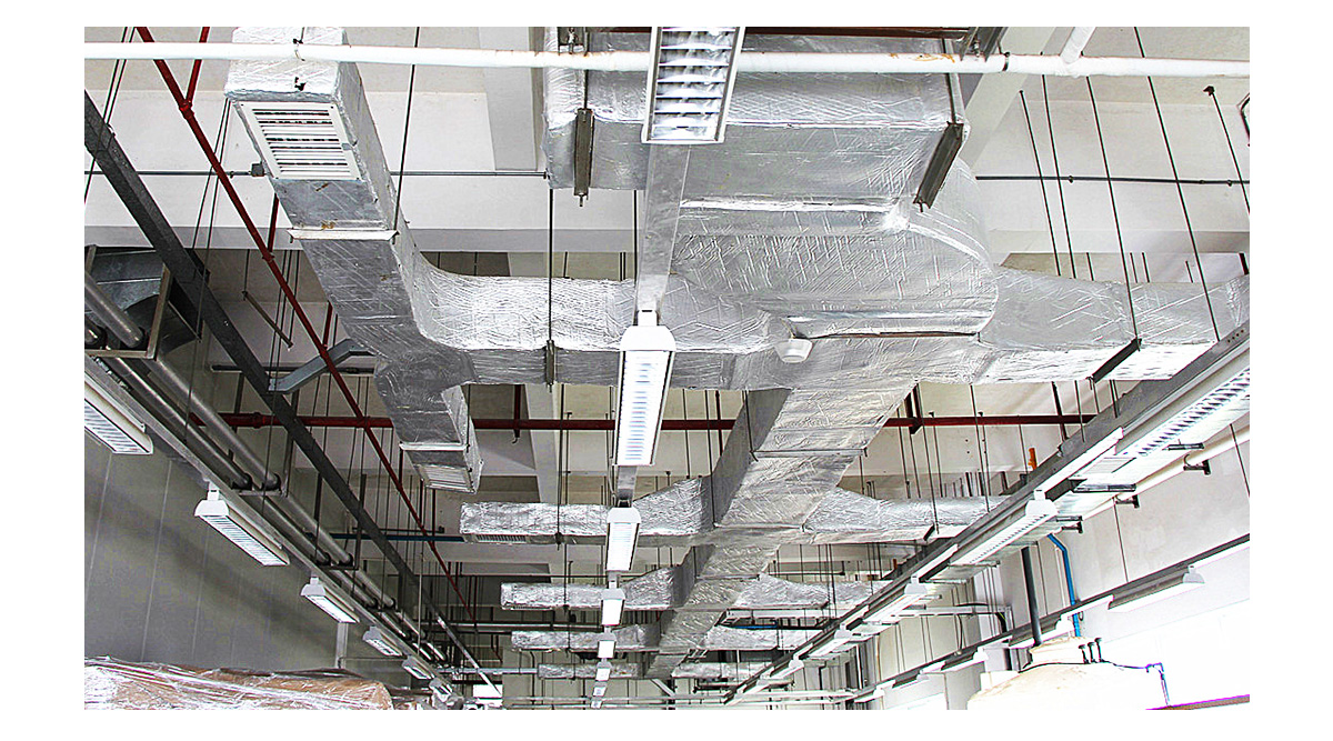凈化和空調合一的方案其凈化空調機組(AHU)集中設置在空調機房內,全部的送風均在凈化空調機組內進行過濾和熱、濕處理,然后由龐大的送風管將全部的送風輸送到潔凈室的吊頂上部,再經過設在潔凈室吊頂上的終端高效過濾器或高效過濾器送風口送到潔凈室內,來實現潔凈室工藝生產所需要的溫度、濕度、潔凈度和房間的壓差,潔凈室的回風經回風口、回風管再接回到空調機房的空調機組內與新風混合后重復進行過濾和熱、濕處理。凈化和空調合一的方案又可分為全新風方案(直流系統);一次回風方案;一、二次回風方案和(MAU)加(RAU)方案等四種不同的凈化空調送風型式。這些送風方案是當前潔凈室特別是非單向流潔凈室中應用最廣泛的凈化空調送風方案。這些送風方案的系統劃分明確,風量和溫、濕度控制調節都比較單一。