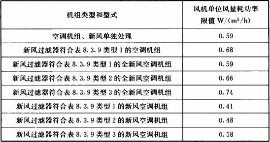 8.1.11 現行國家標準《公共建筑節能設計標準》GB 50189對空調風機的單位風量耗功率的限值作出了規定,不過該標準沒有考慮醫院潔凈手術部空調機組和新風機組的應用情況。本條的規定是對該標準的補充。