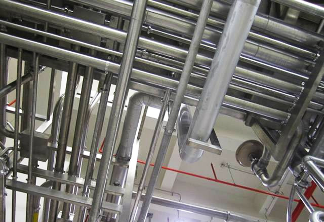 為滿足一定的生產工藝而連接起來的管道,工業廠房里包括給排水管道、消防管道、雨排水管道等,比如生產循環水、壓縮空氣、蒸汽、氮氣、煤氣、硫酸、堿液、氨水、氨氣等等。 原則上施工程序先地下、后地上,先室外、后室內,先預制、后安裝。