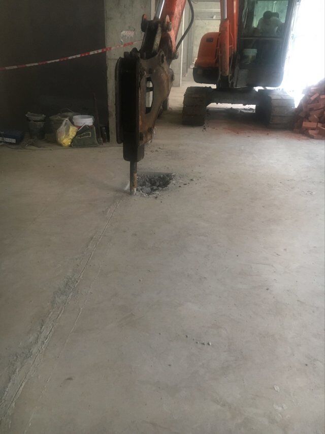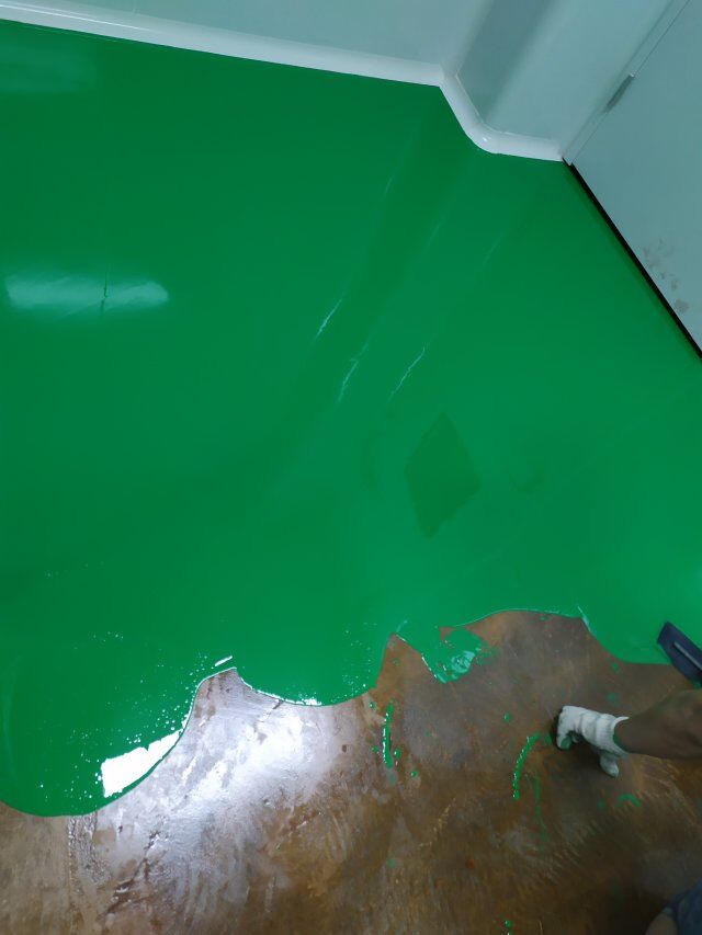 四川美料美味食品科技有限公司廠房裝修現(xiàn)場,地坪施工中