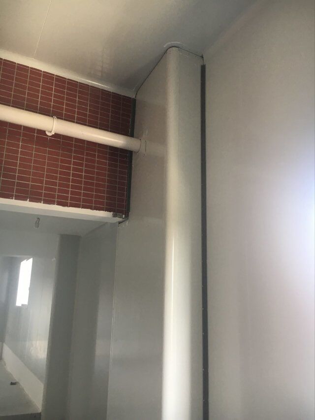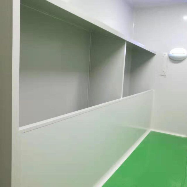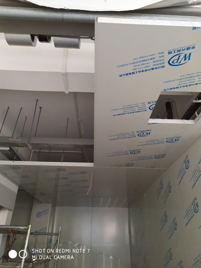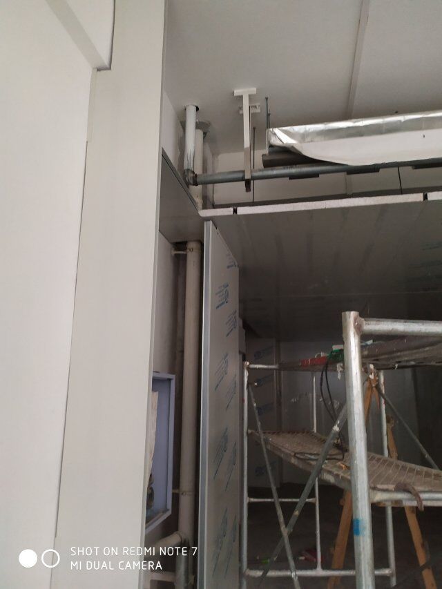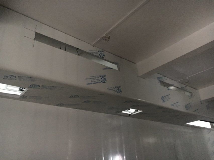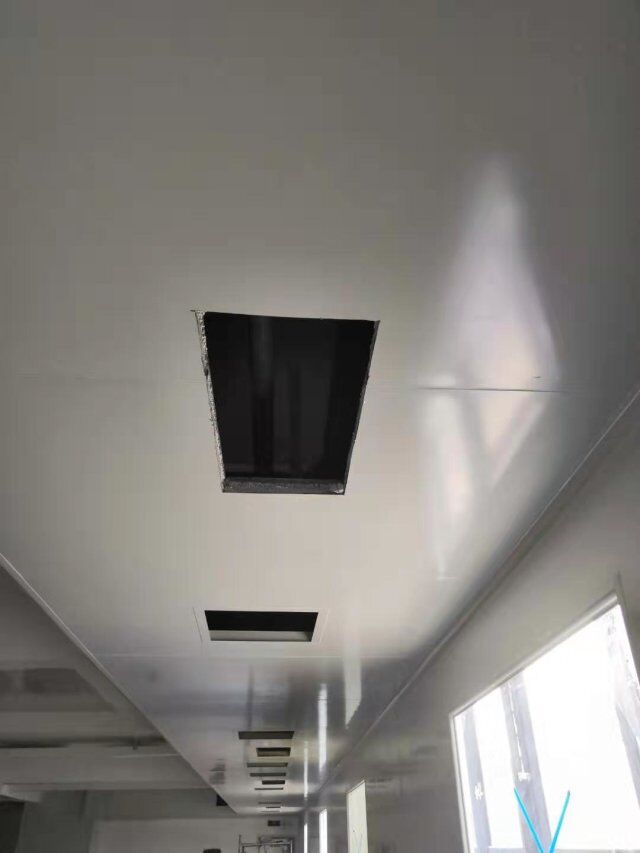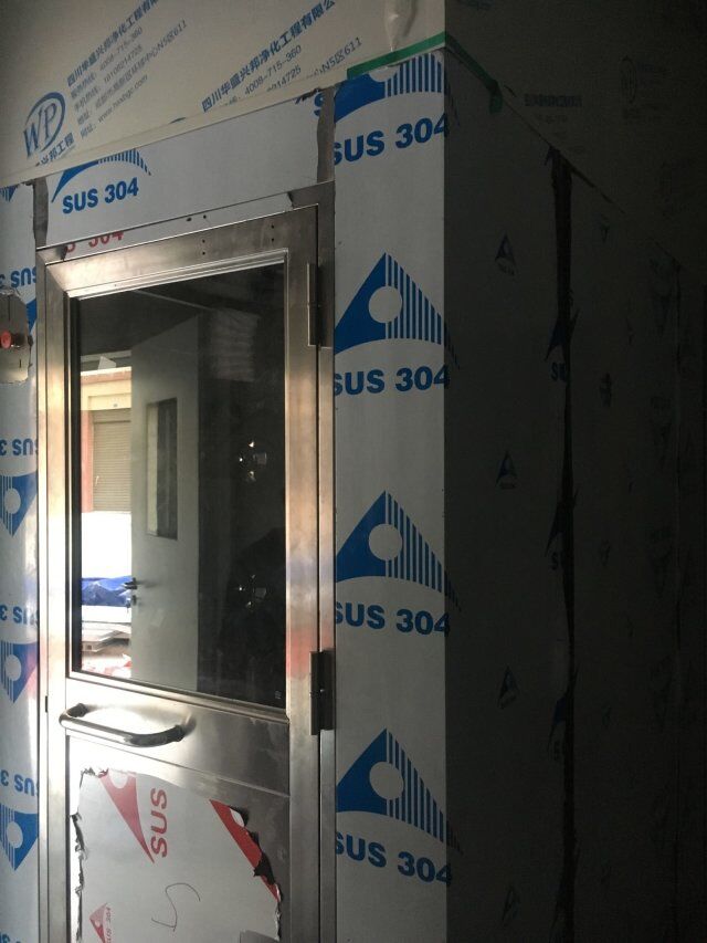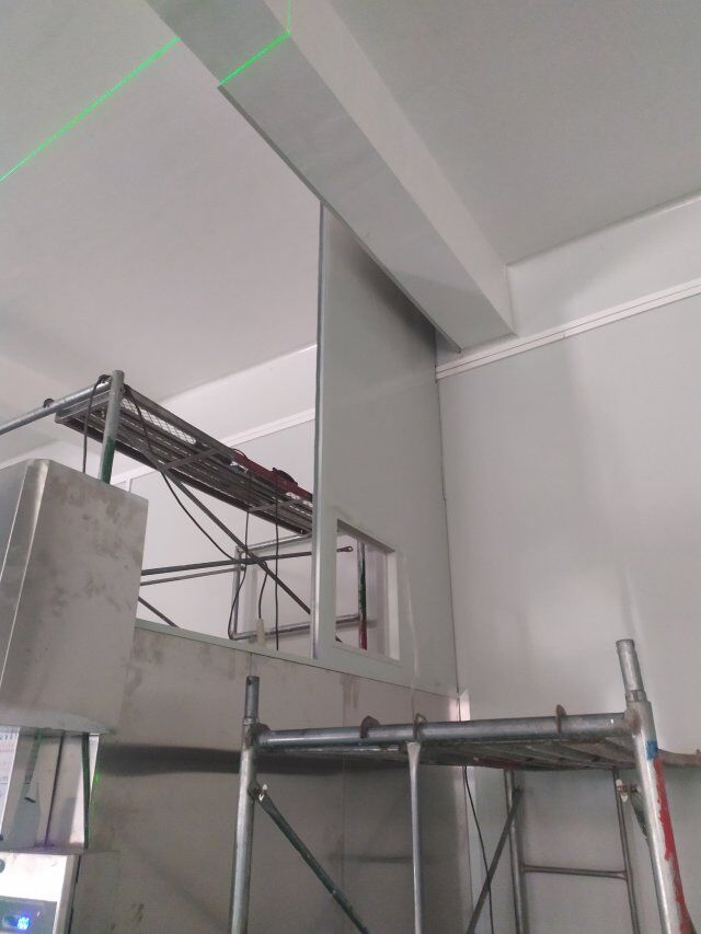 四川美料美味食品科技有限公司廠房裝修現(xiàn)場,風(fēng)淋室調(diào)試安裝完成,板材包邊完成