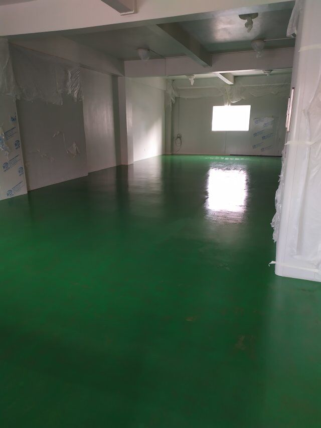 四川美料美味食品科技有限公司廠房裝修現(xiàn)場,地坪施工