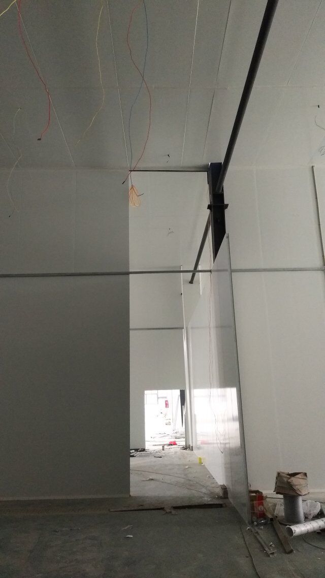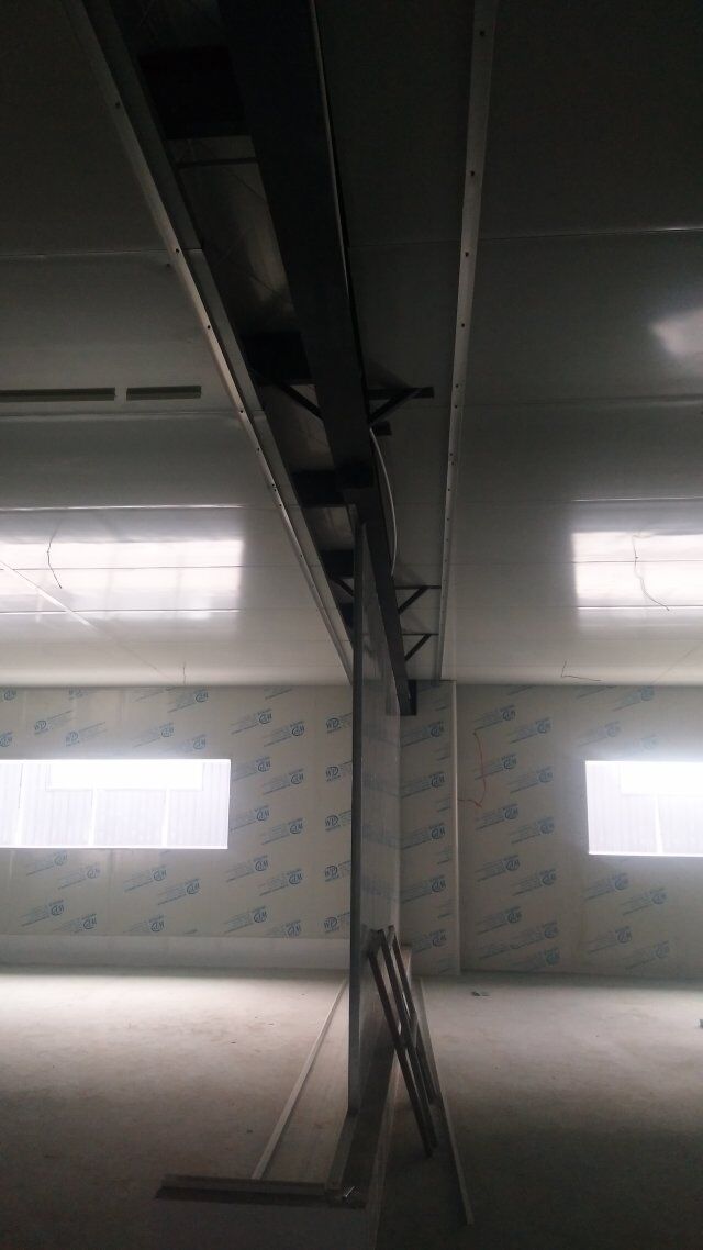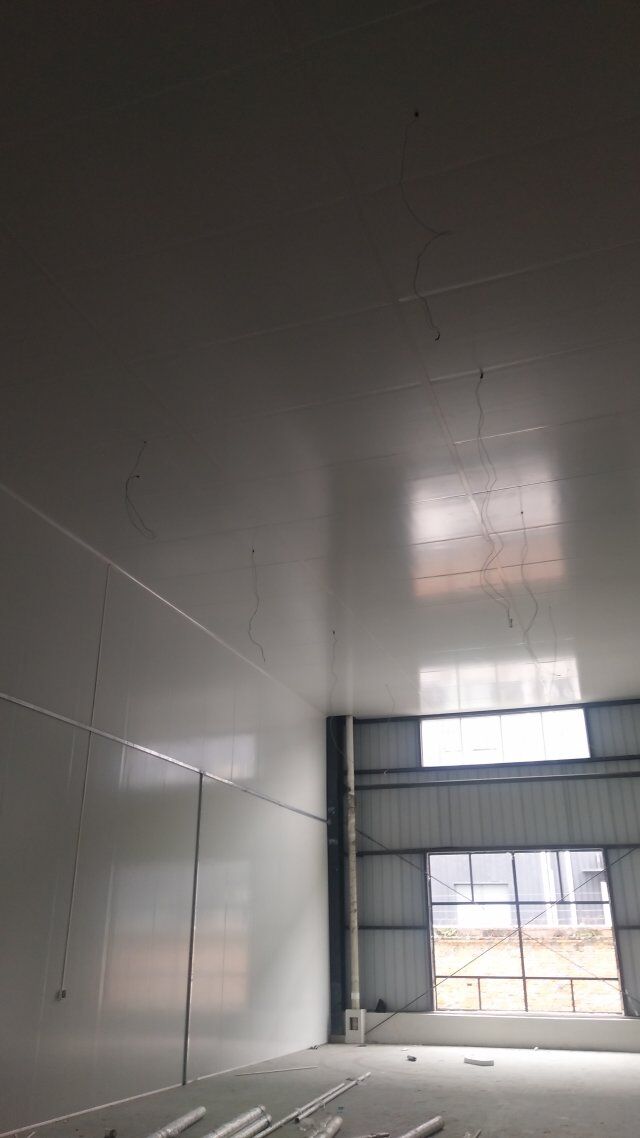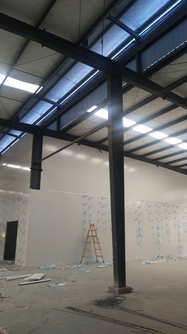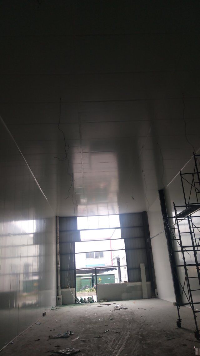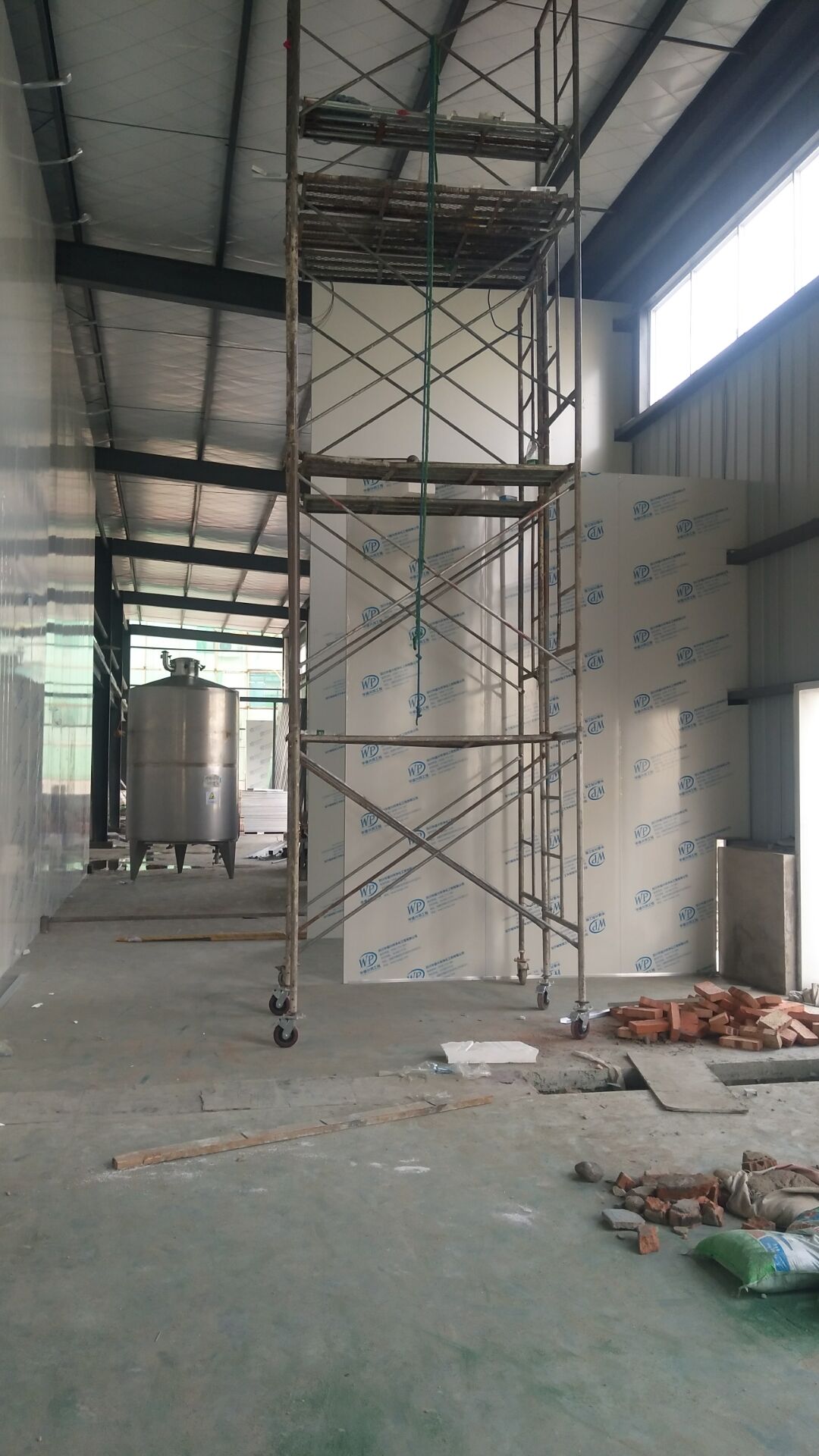 成都天廚生物科技有限公司廠房裝修現(xiàn)場,墻板施工中