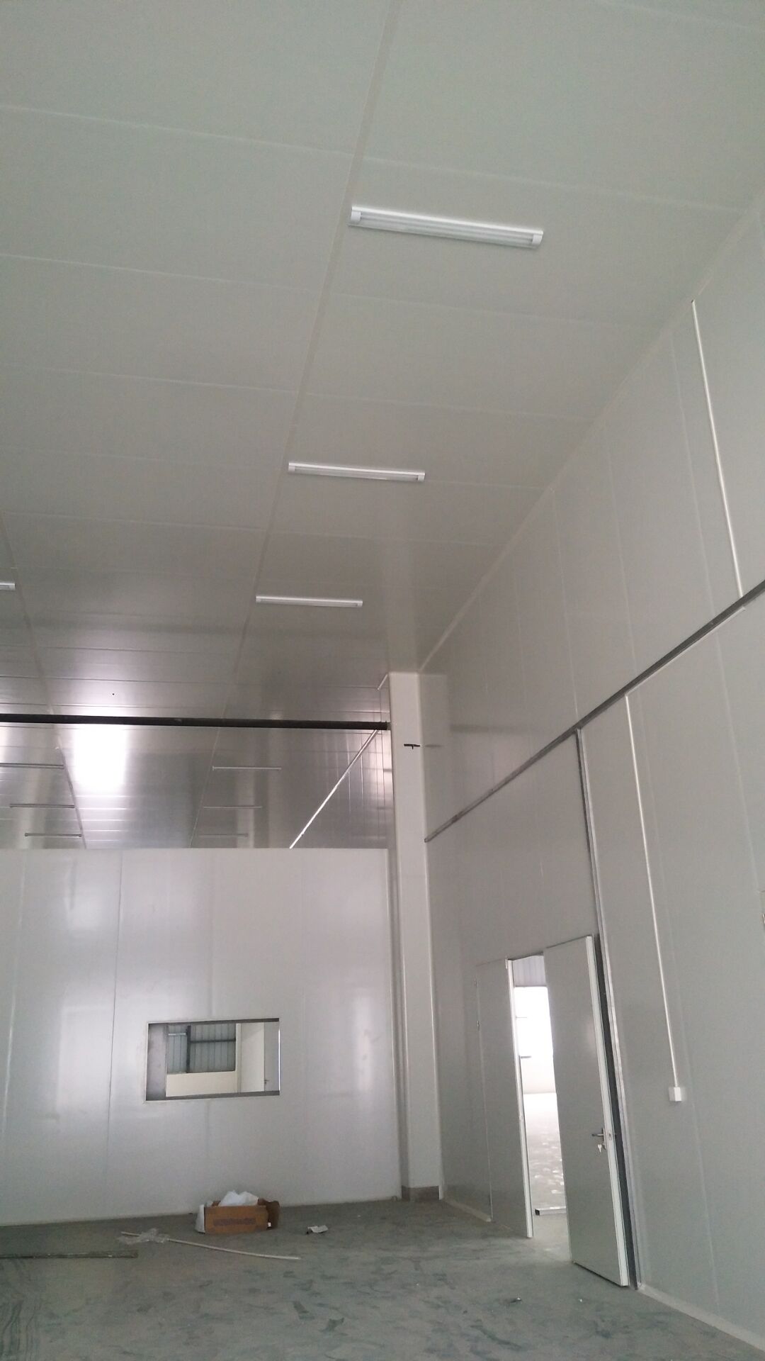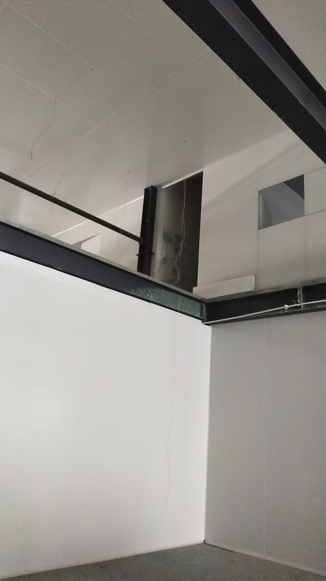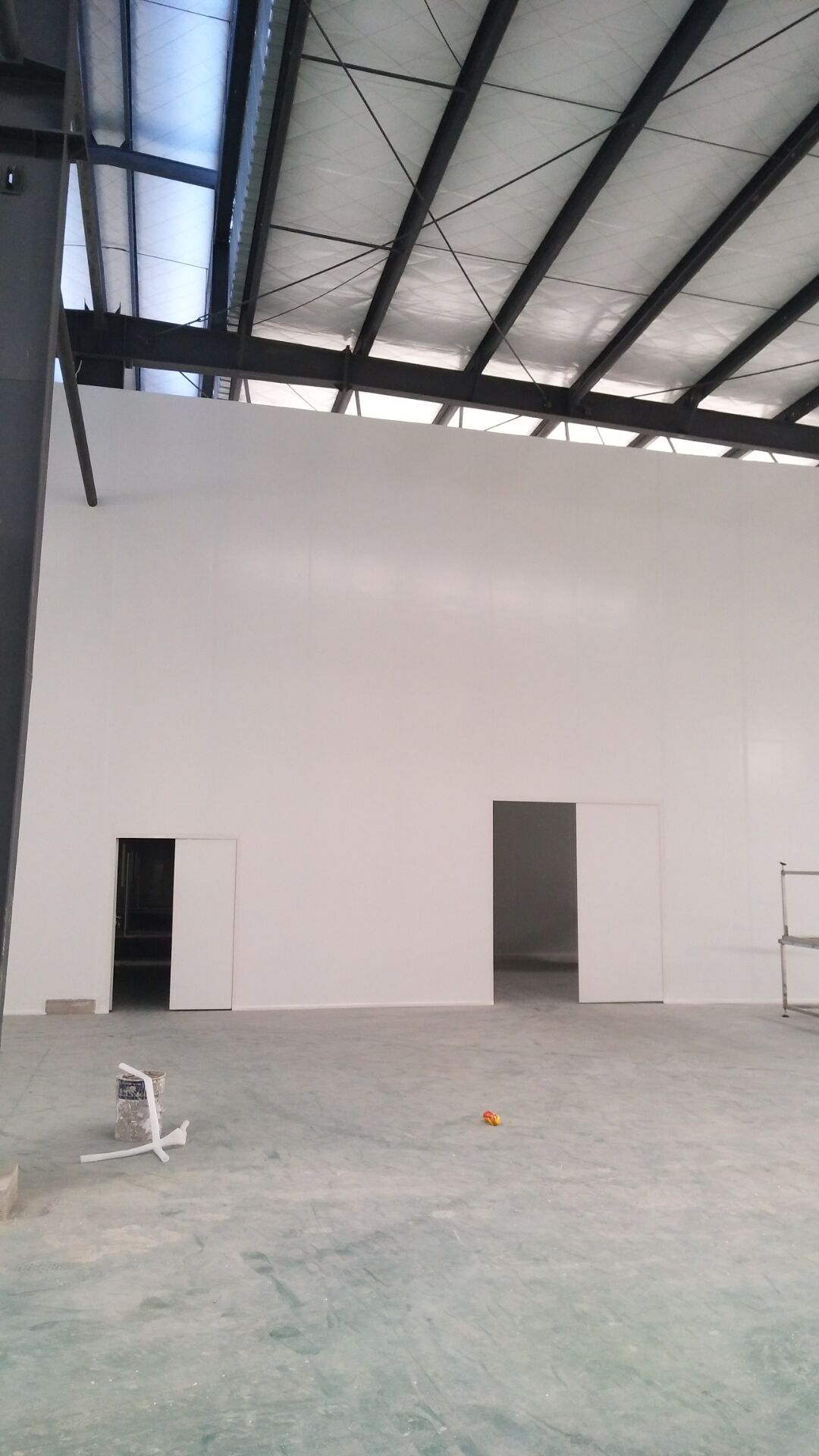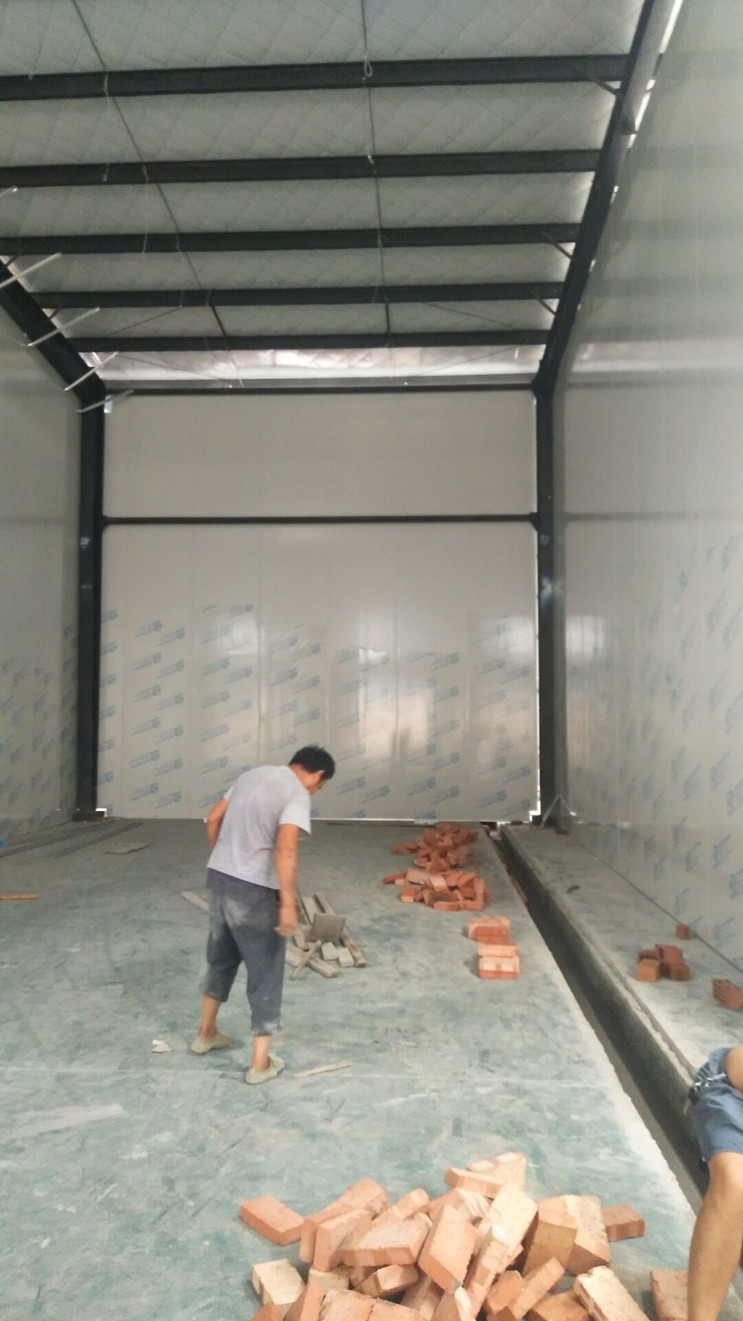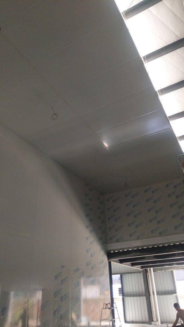 成都天廚生物科技有限公司廠房裝修現(xiàn)場,墻板施工中