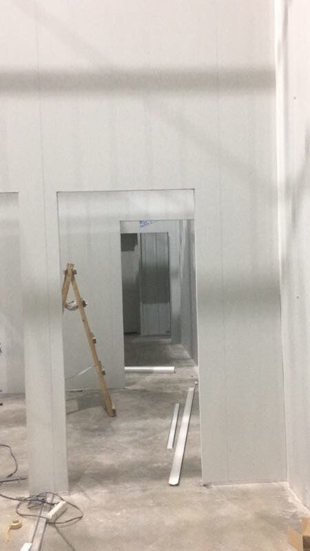 四川聚峰谷農業科技開發有限公司廠房裝修現場,隔斷立墻板