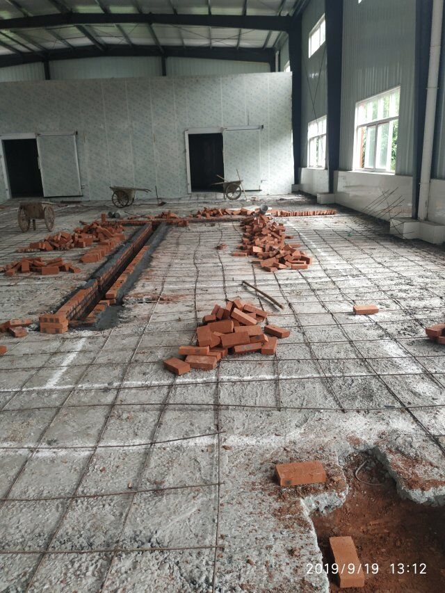 四川鄉(xiāng)巴佬農牧集團有限公司廠房施工現場,擋水墻貼磚完成,板材到現場,板材搬運