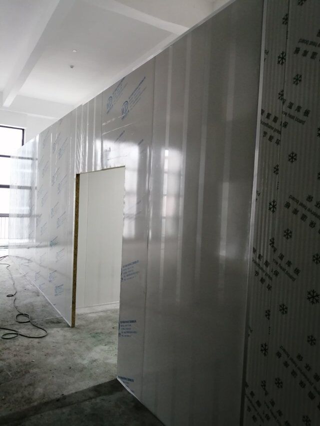 1.墻板完成百分之八十 2.吊頂吊筋安裝完成,3.門料下料切角施工