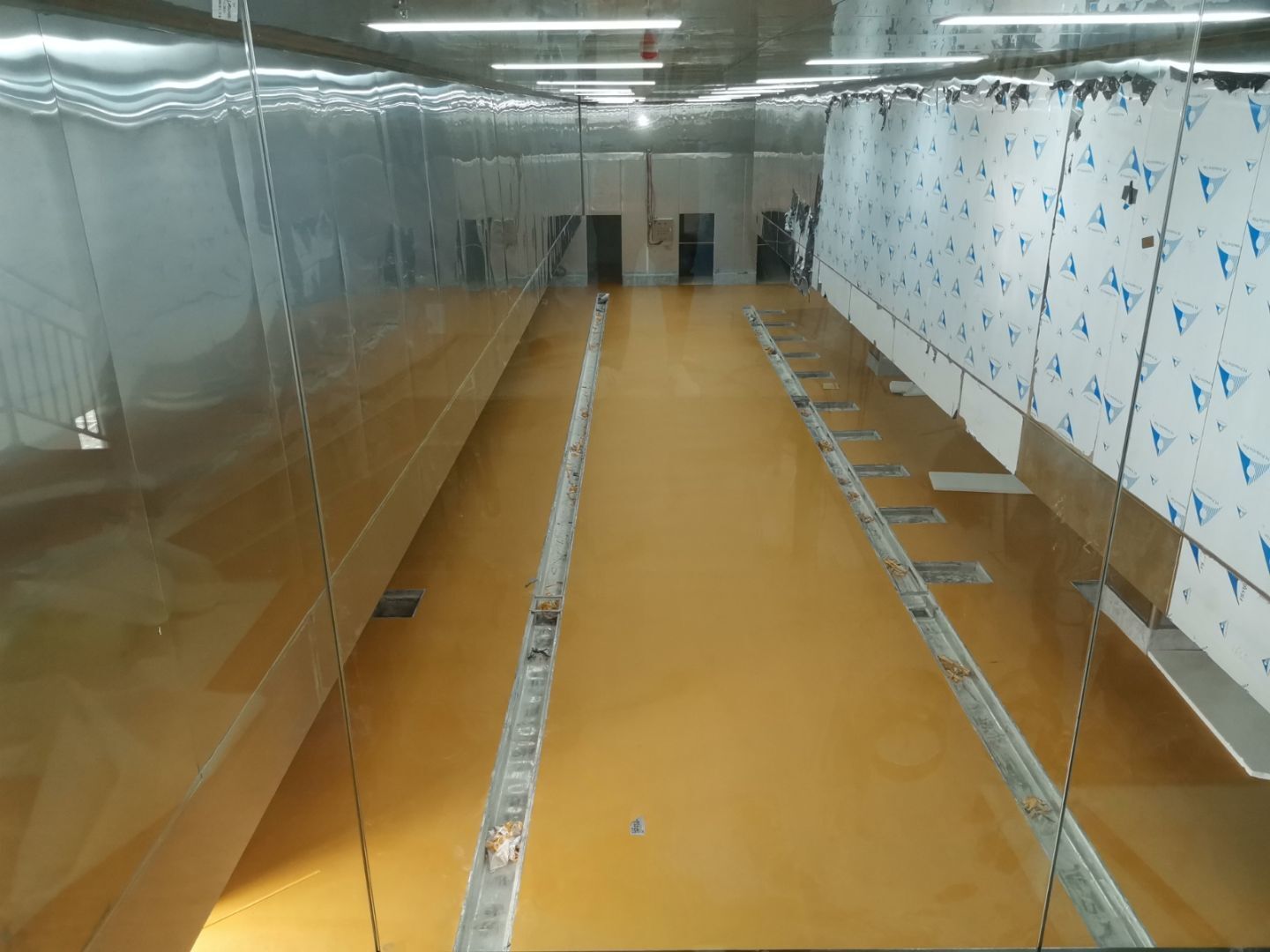 四川吉百興食品有限公司中央廚房施工現場,地坪灑水,放線