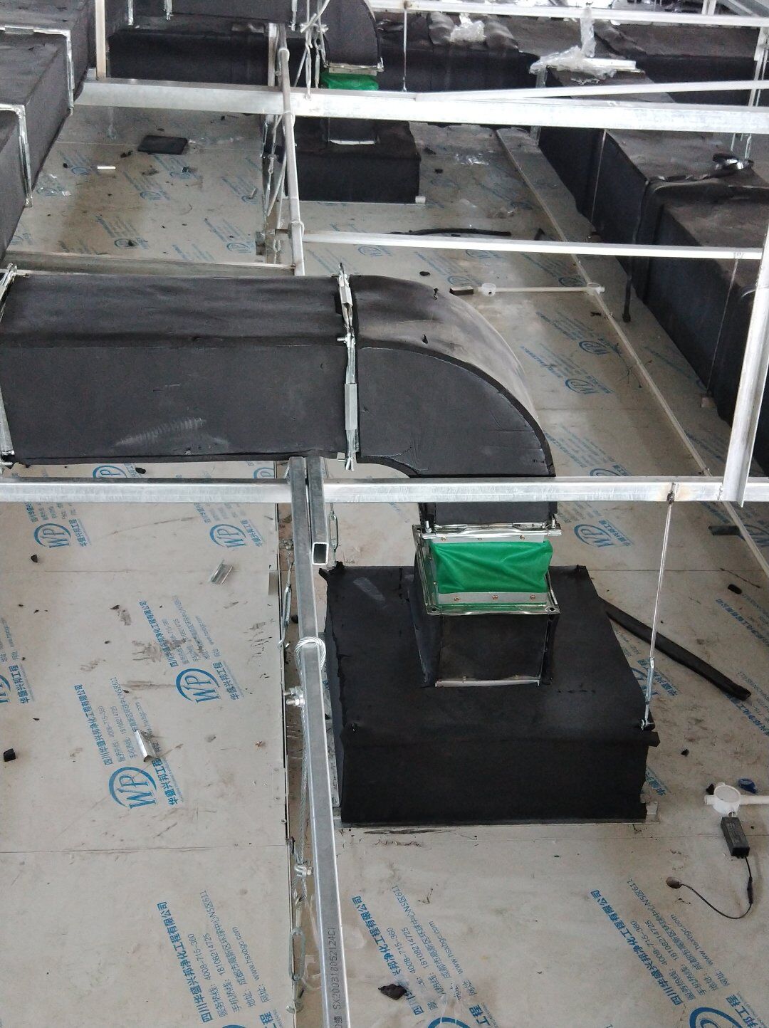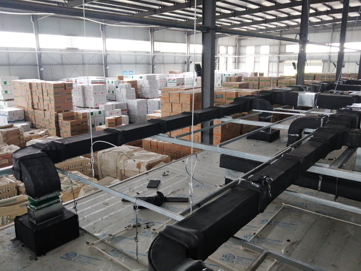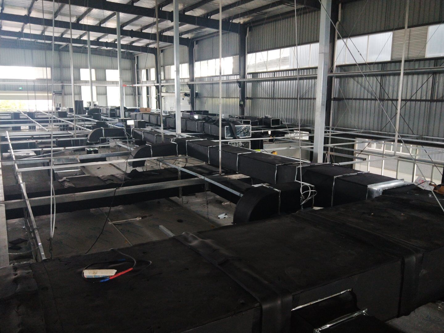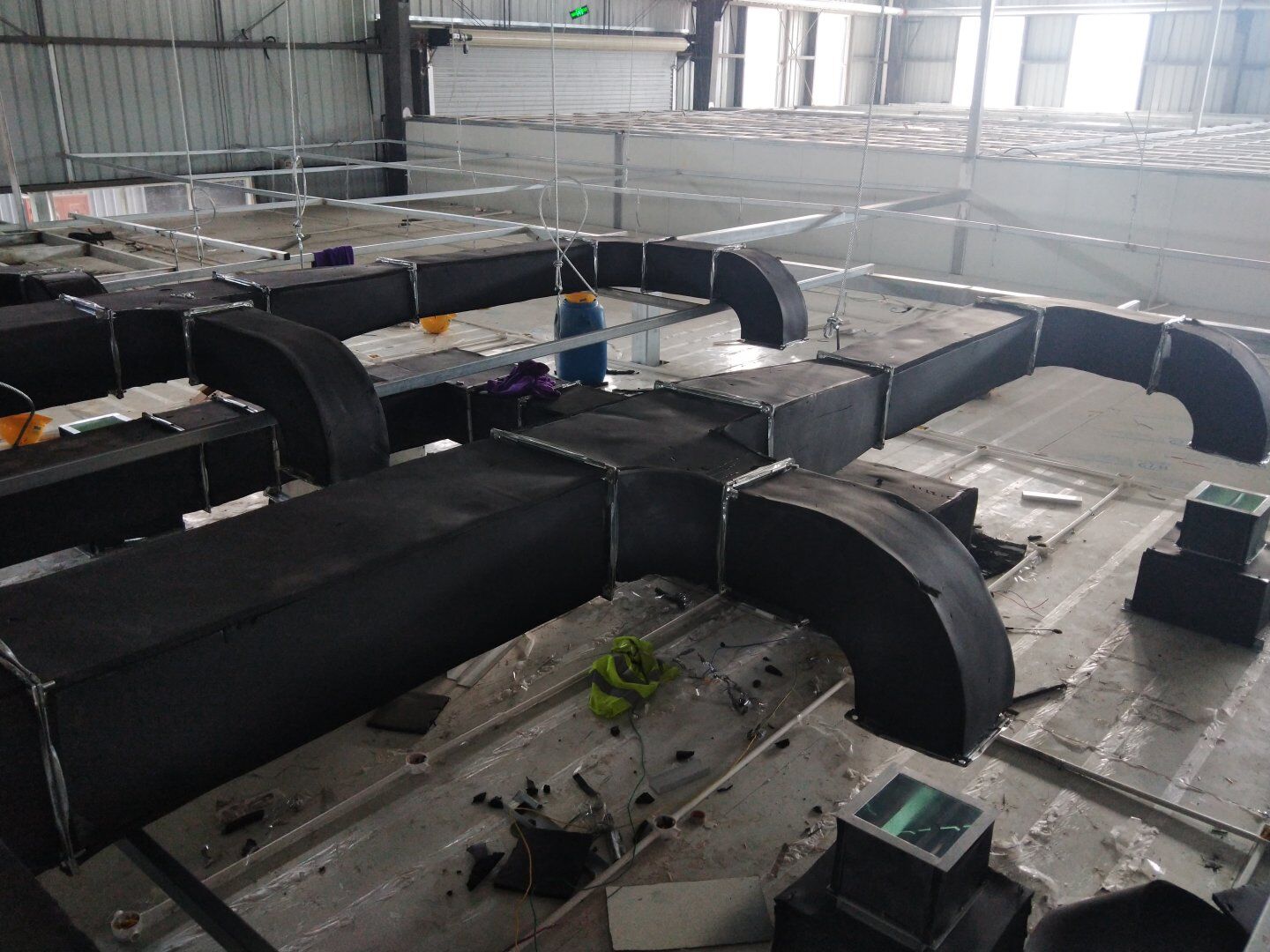 口罩廠風管主管組裝完成80%并完成相應保溫。