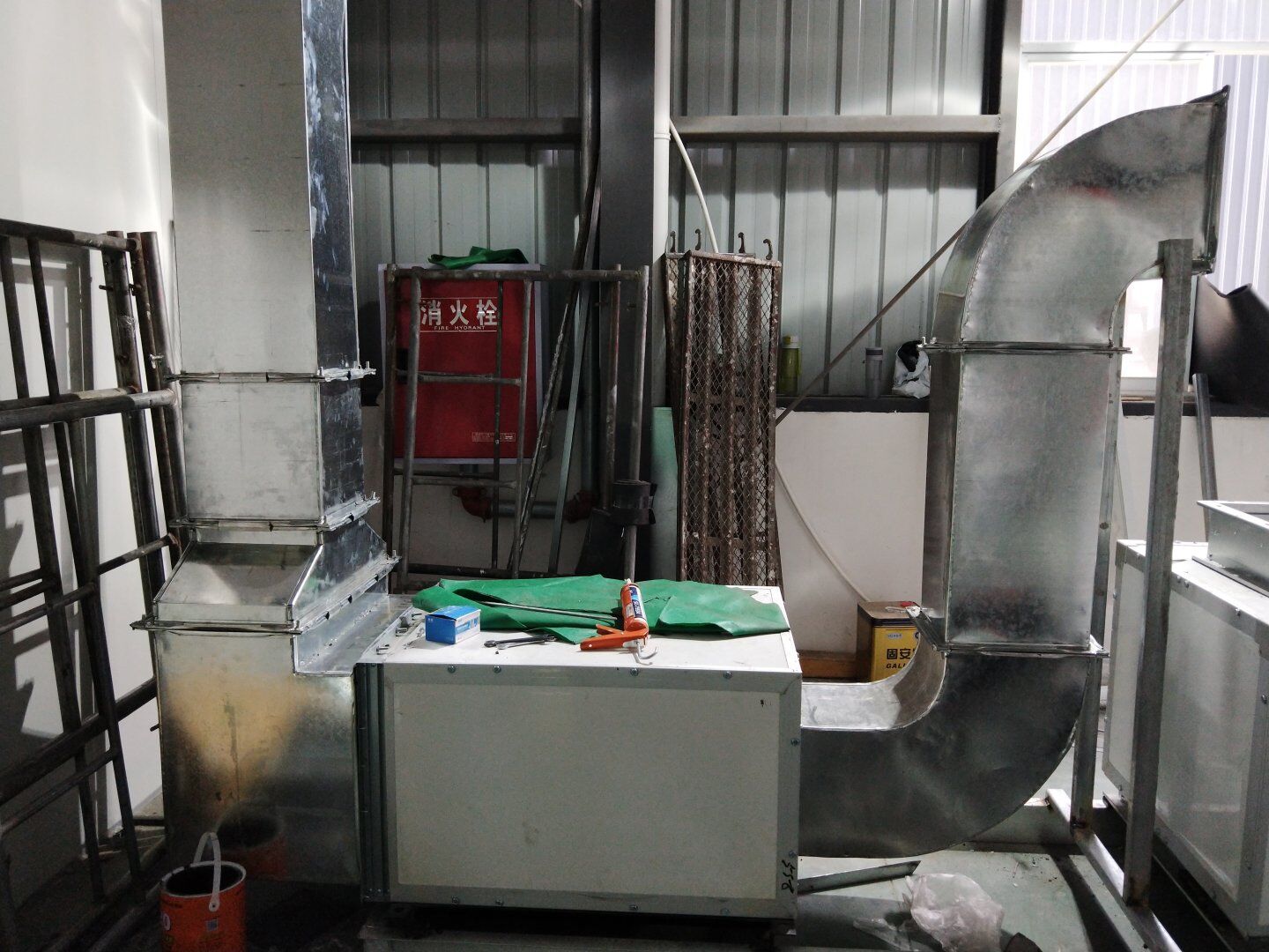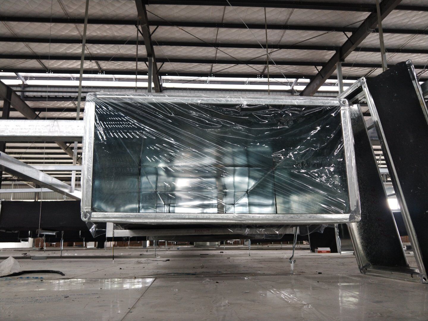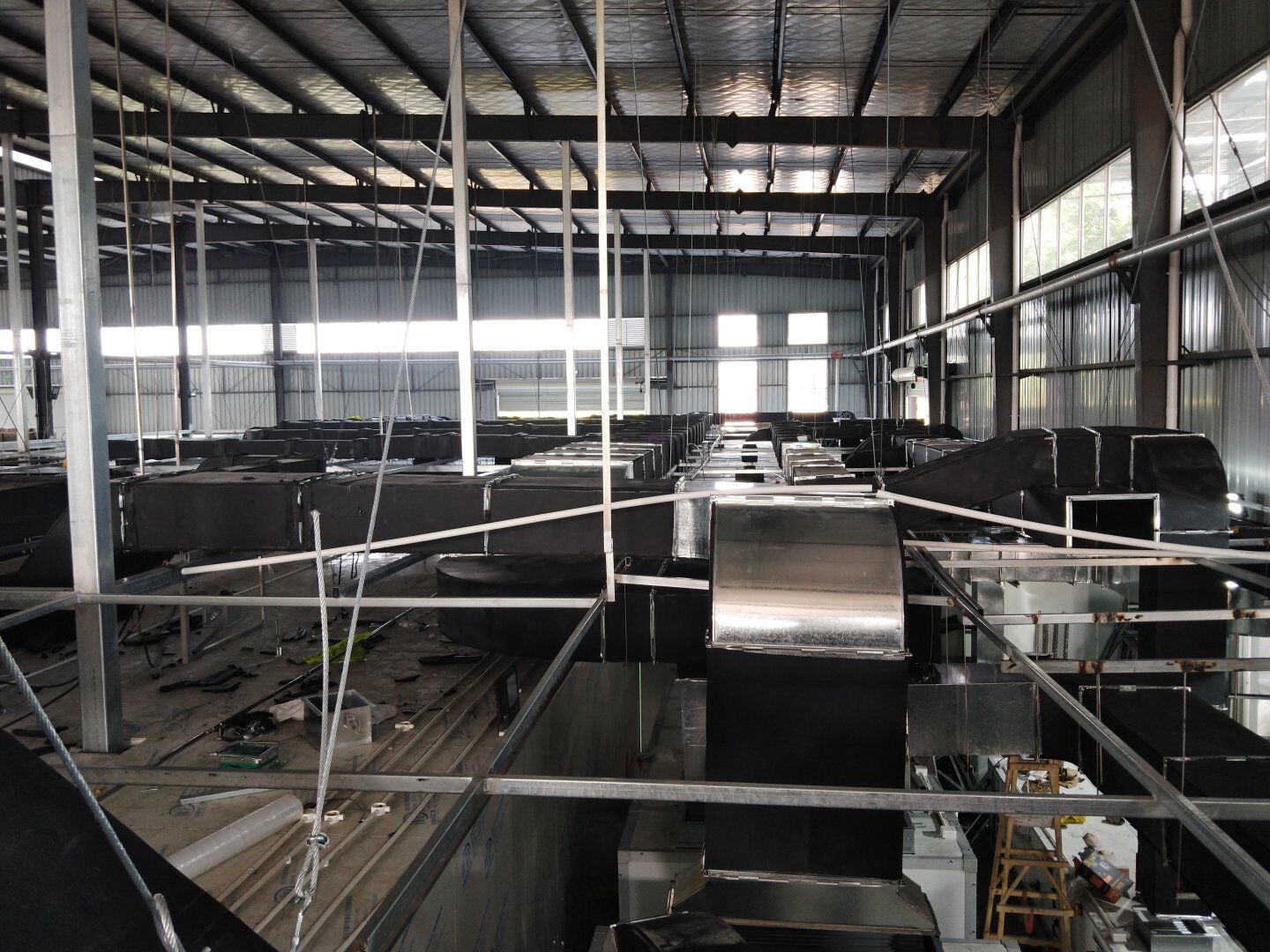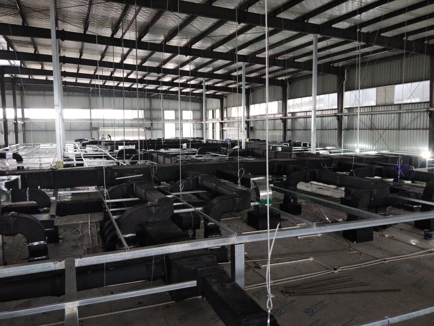 口罩廠風管主管組裝完成80%并完成相應保溫。