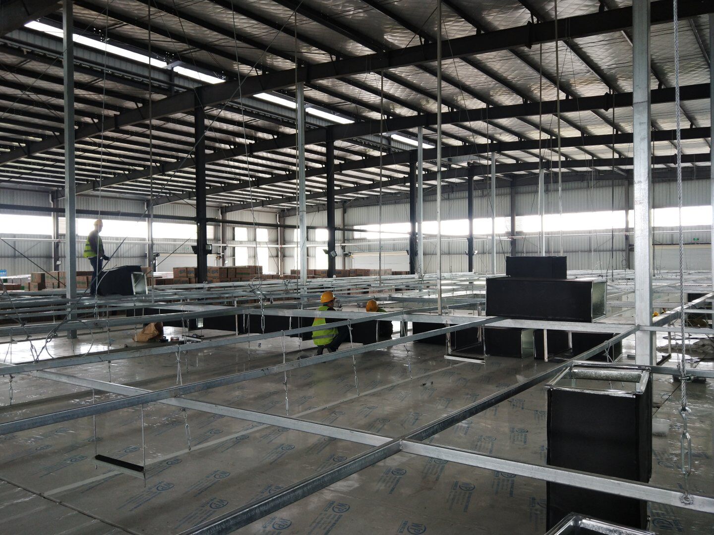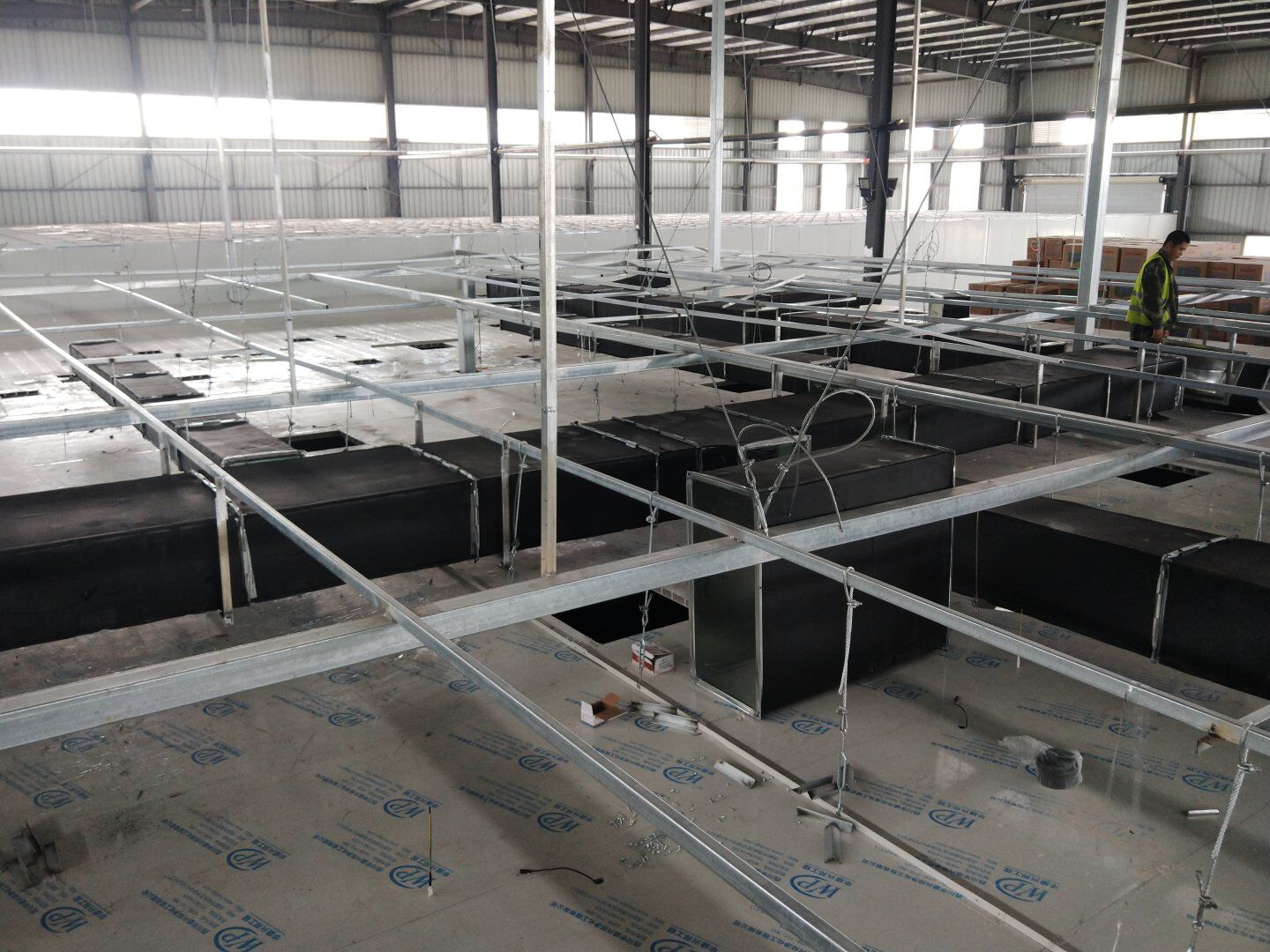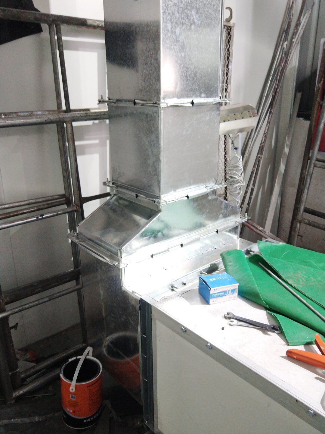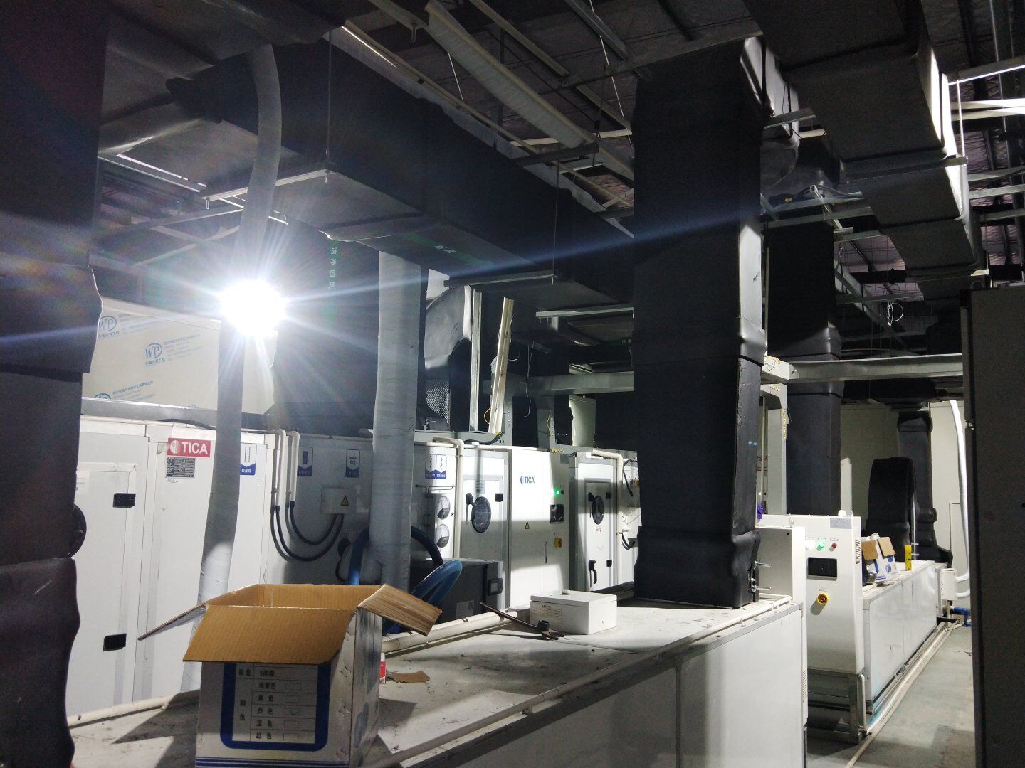 口罩廠風管主管組裝完成80%并完成相應保溫。