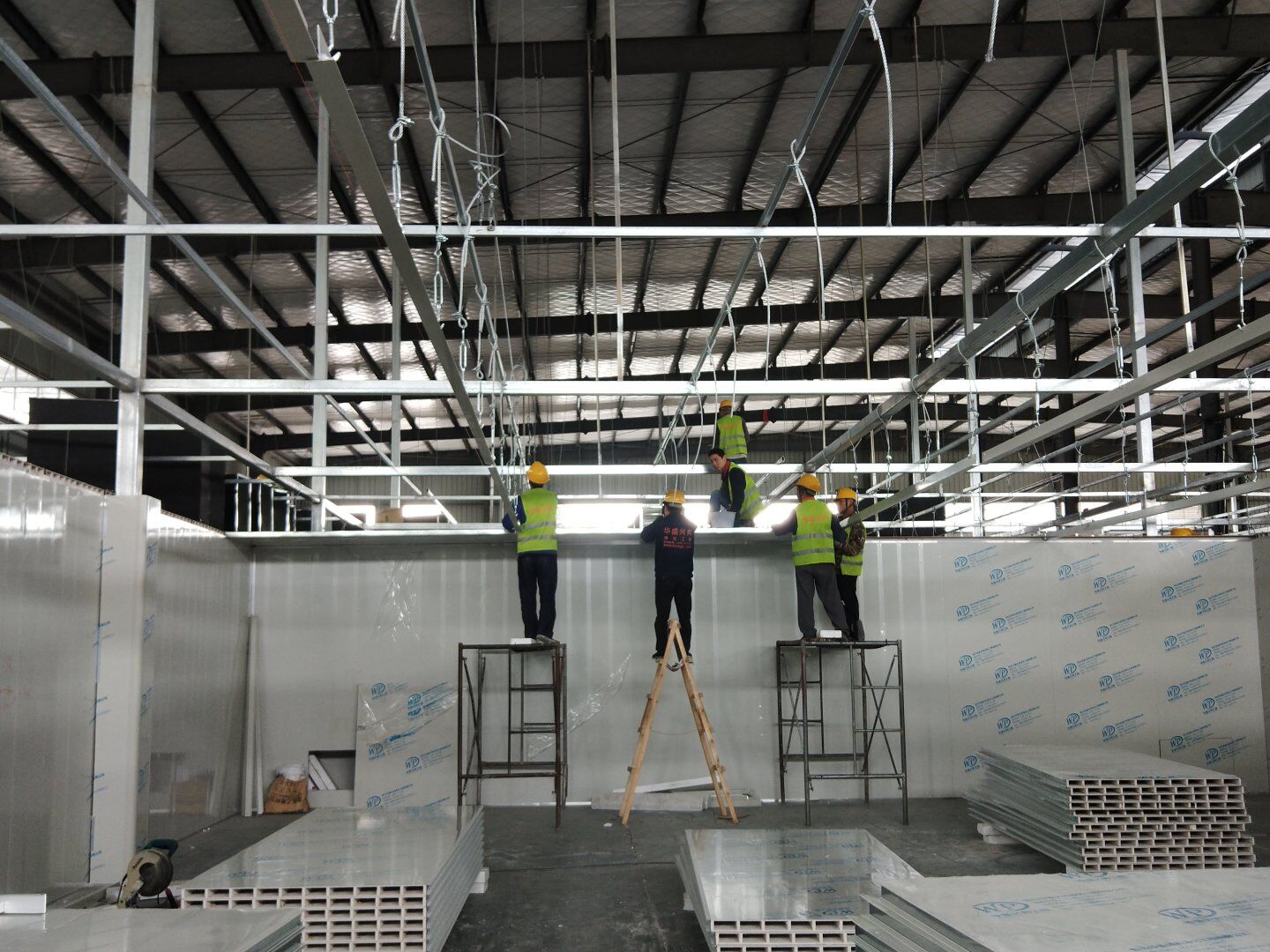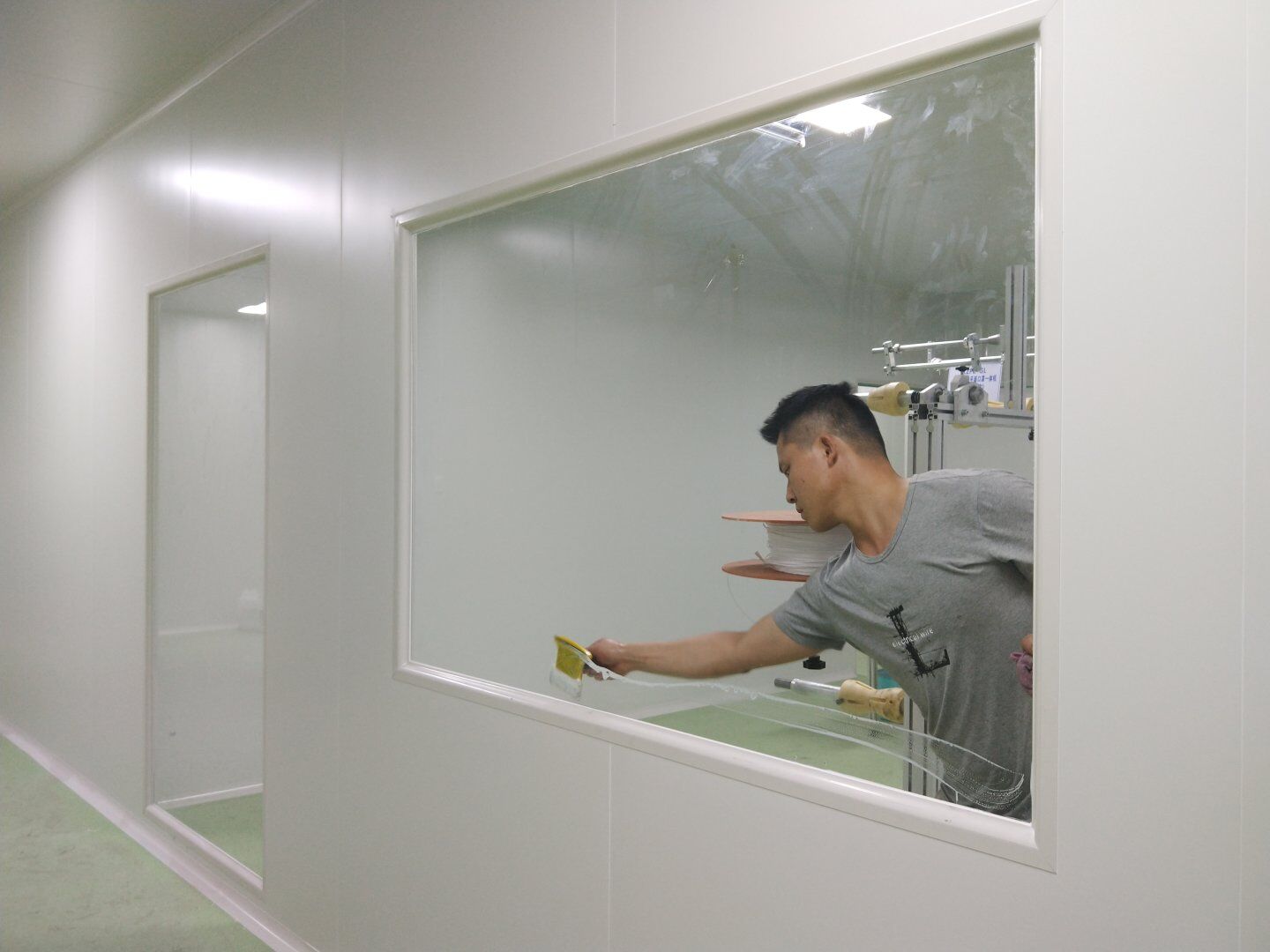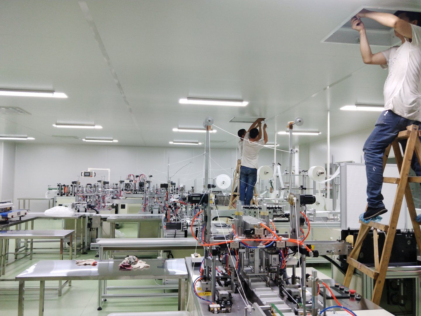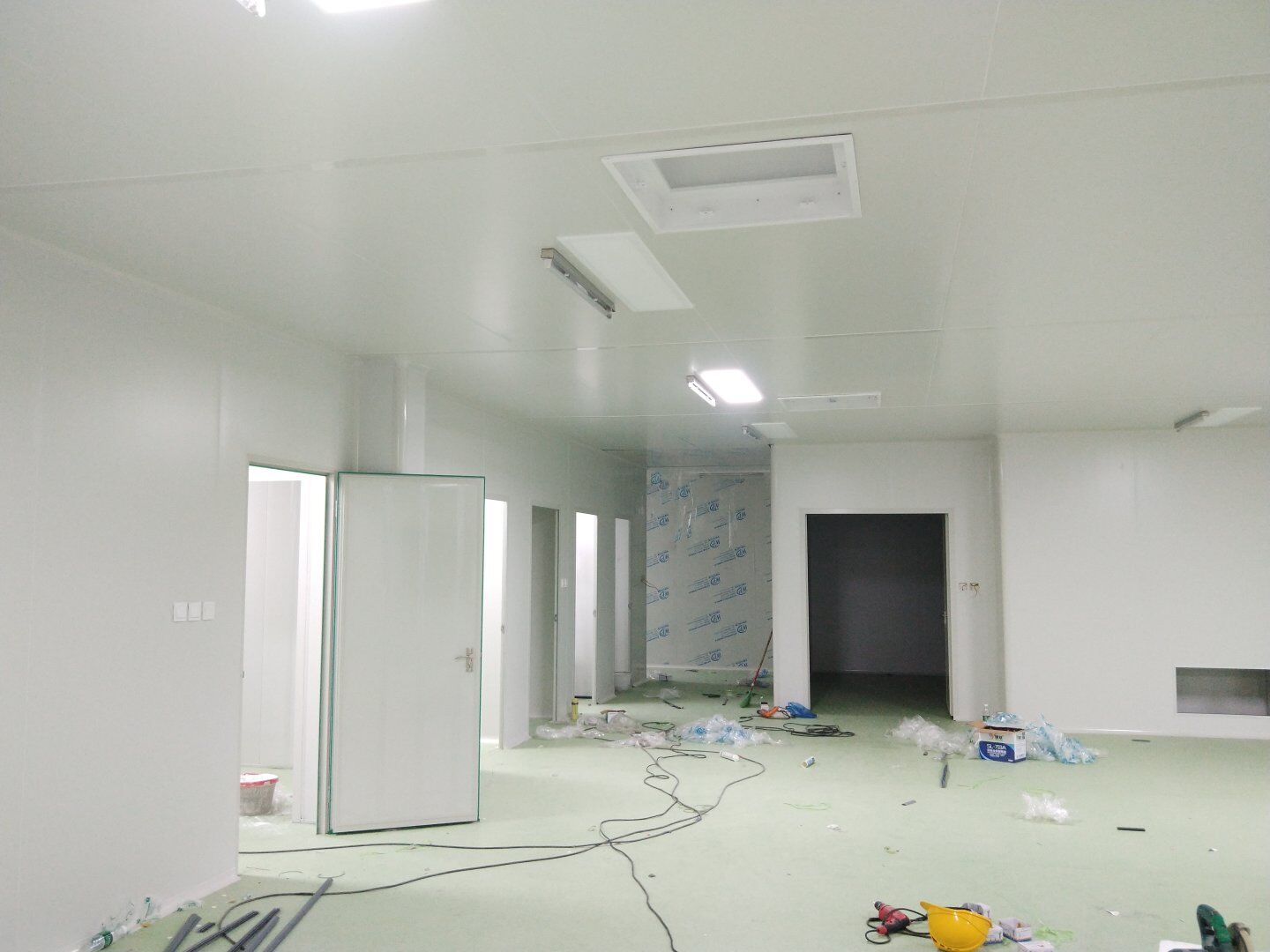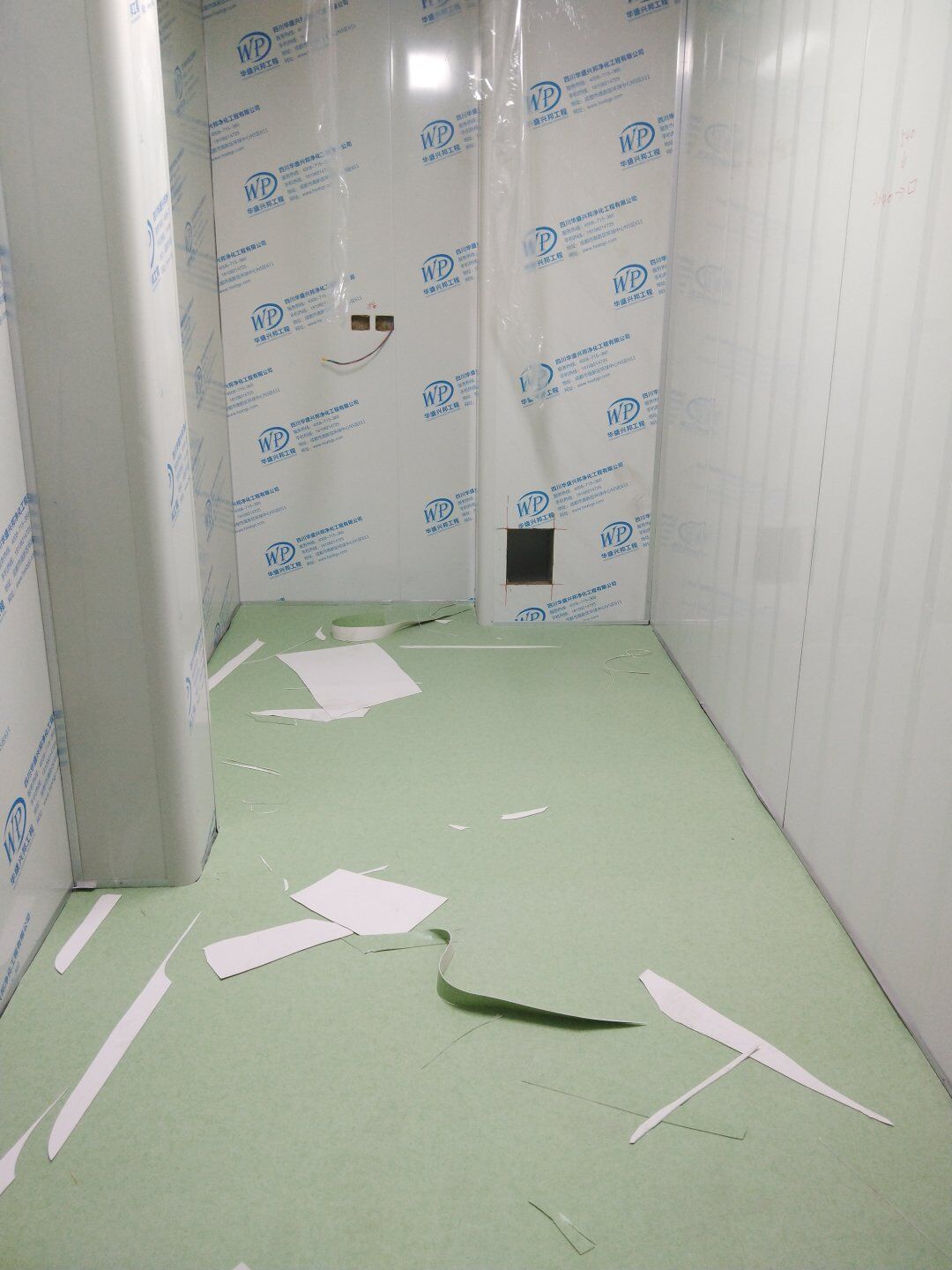 2020.4.20?濕巾廠門板安裝完成80%,回風夾道安裝完成40%.