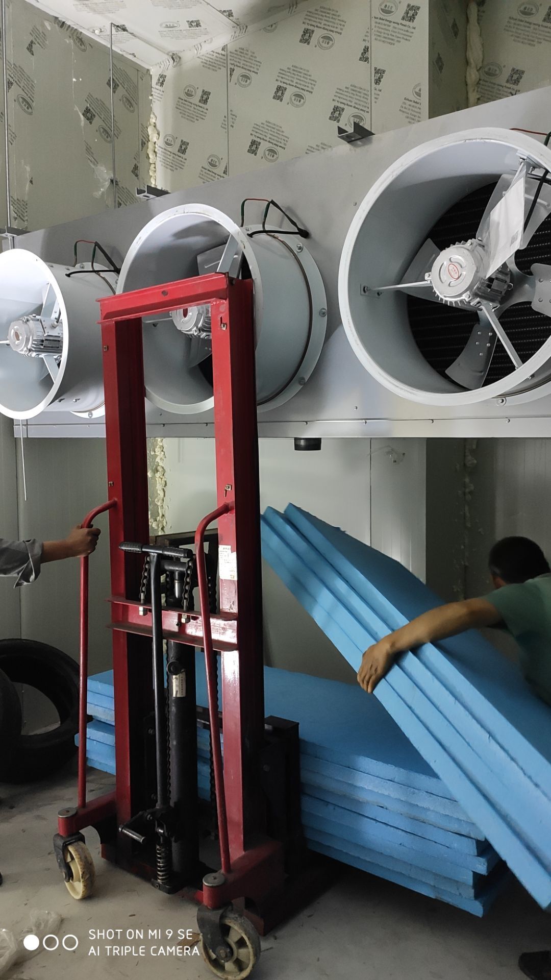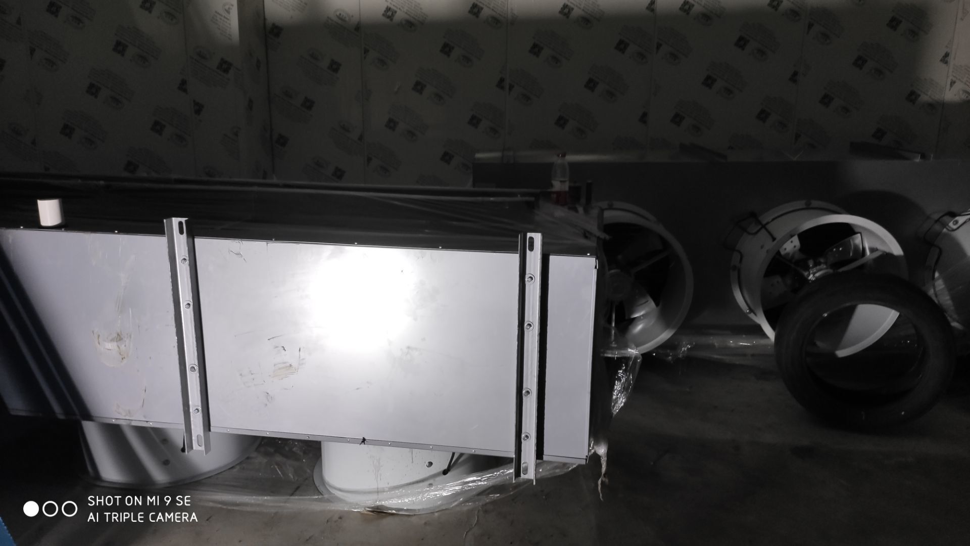 風管安裝完成50%,頂板完成50%,風機到現場