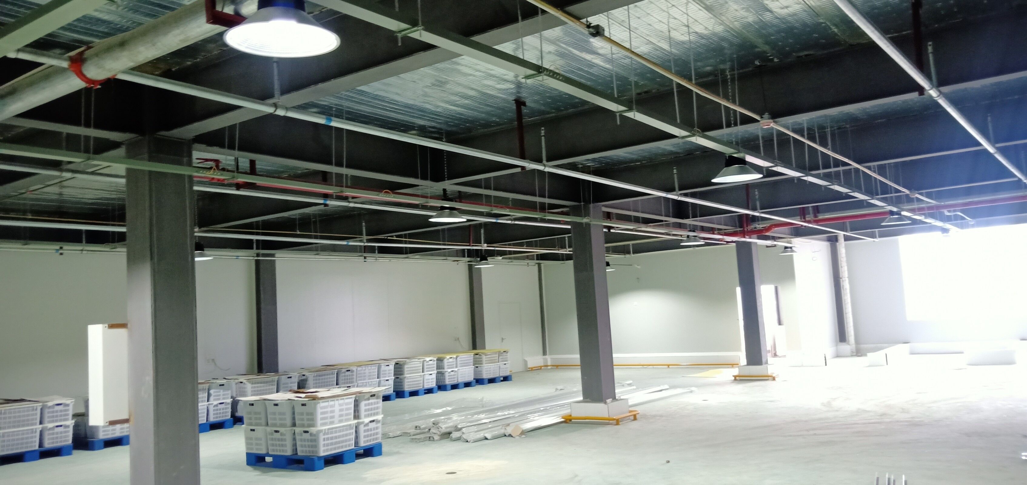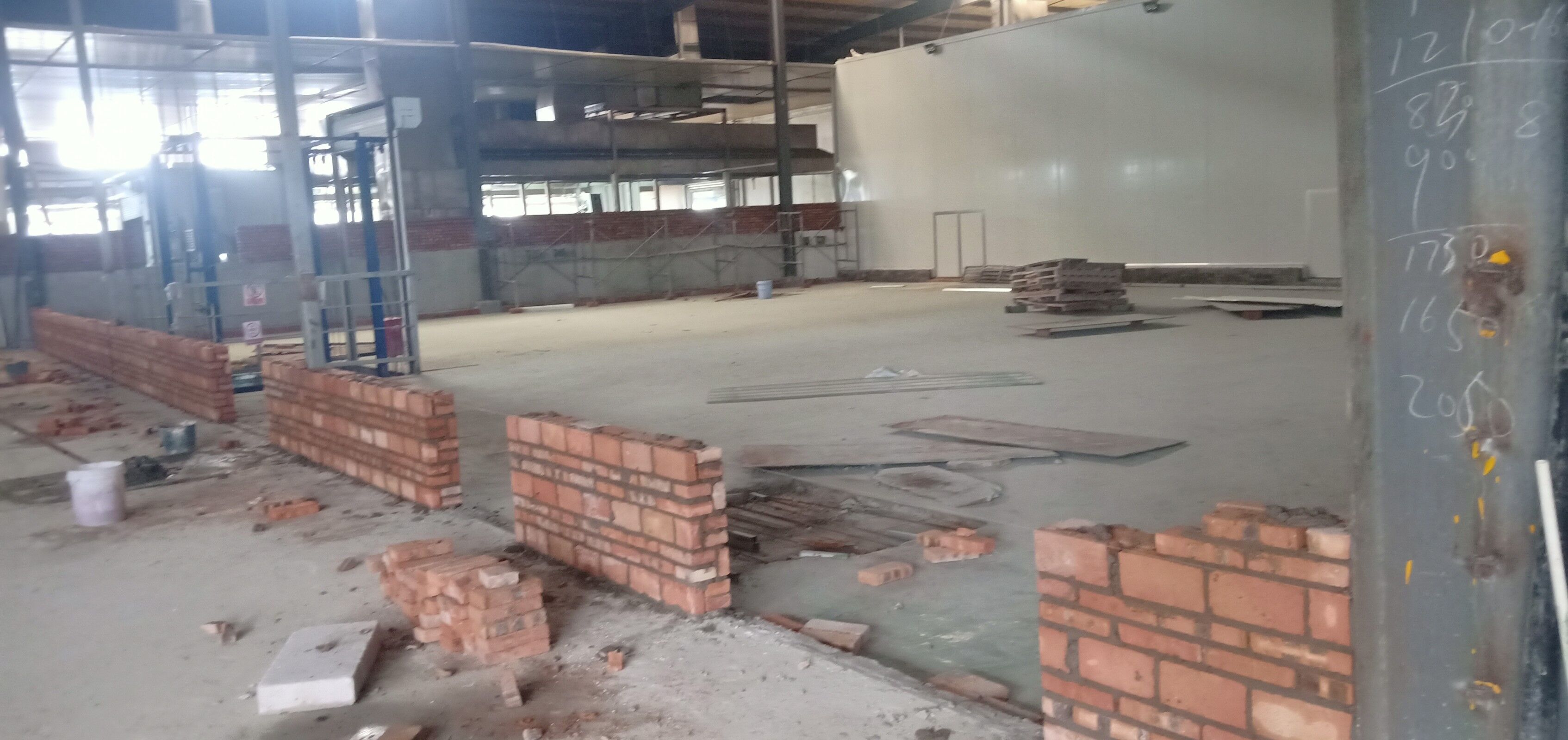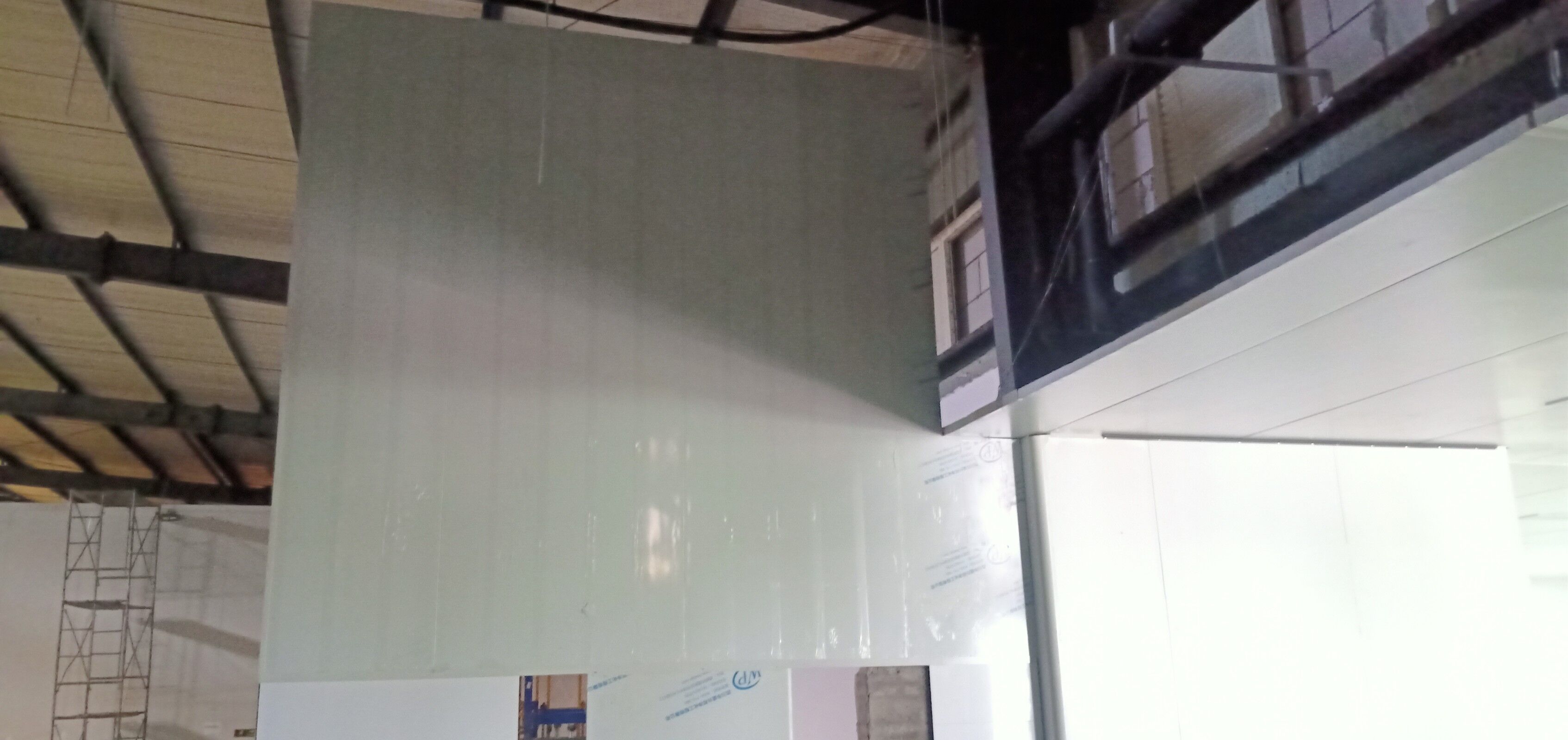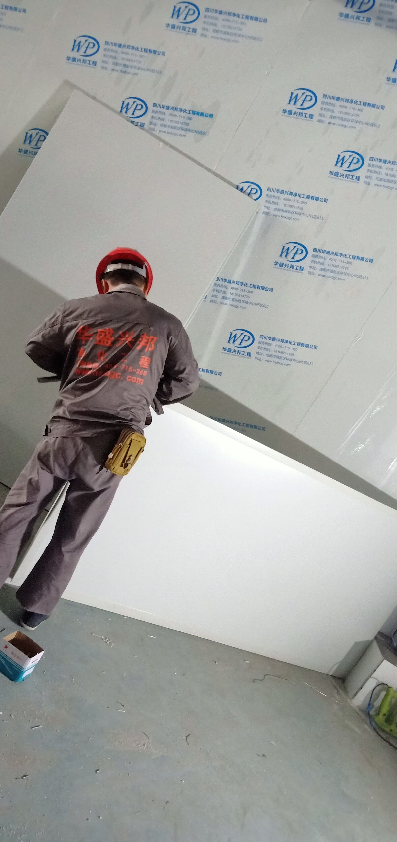 凈化車間墻面施工完成,吊頂燈具施工完成