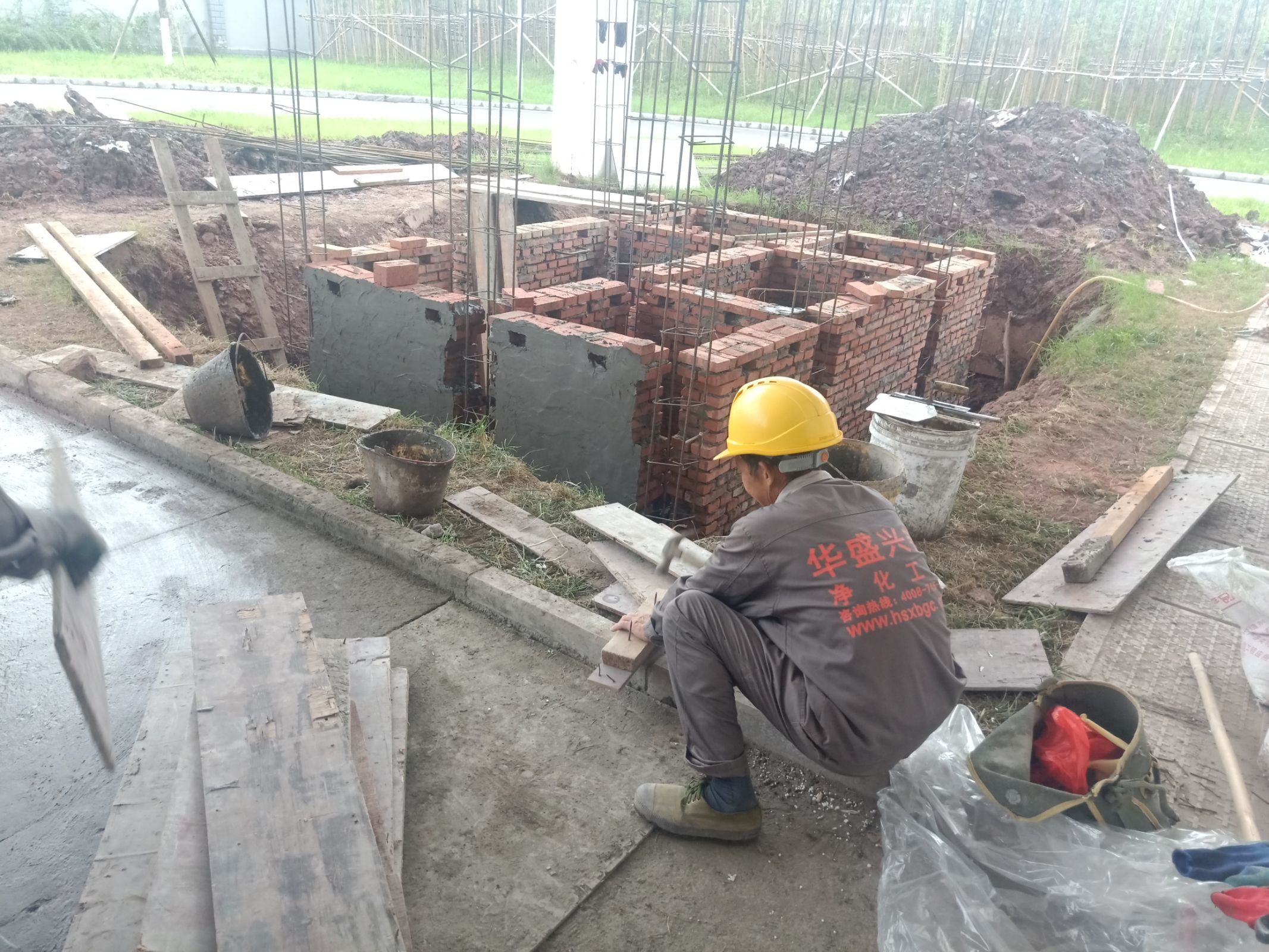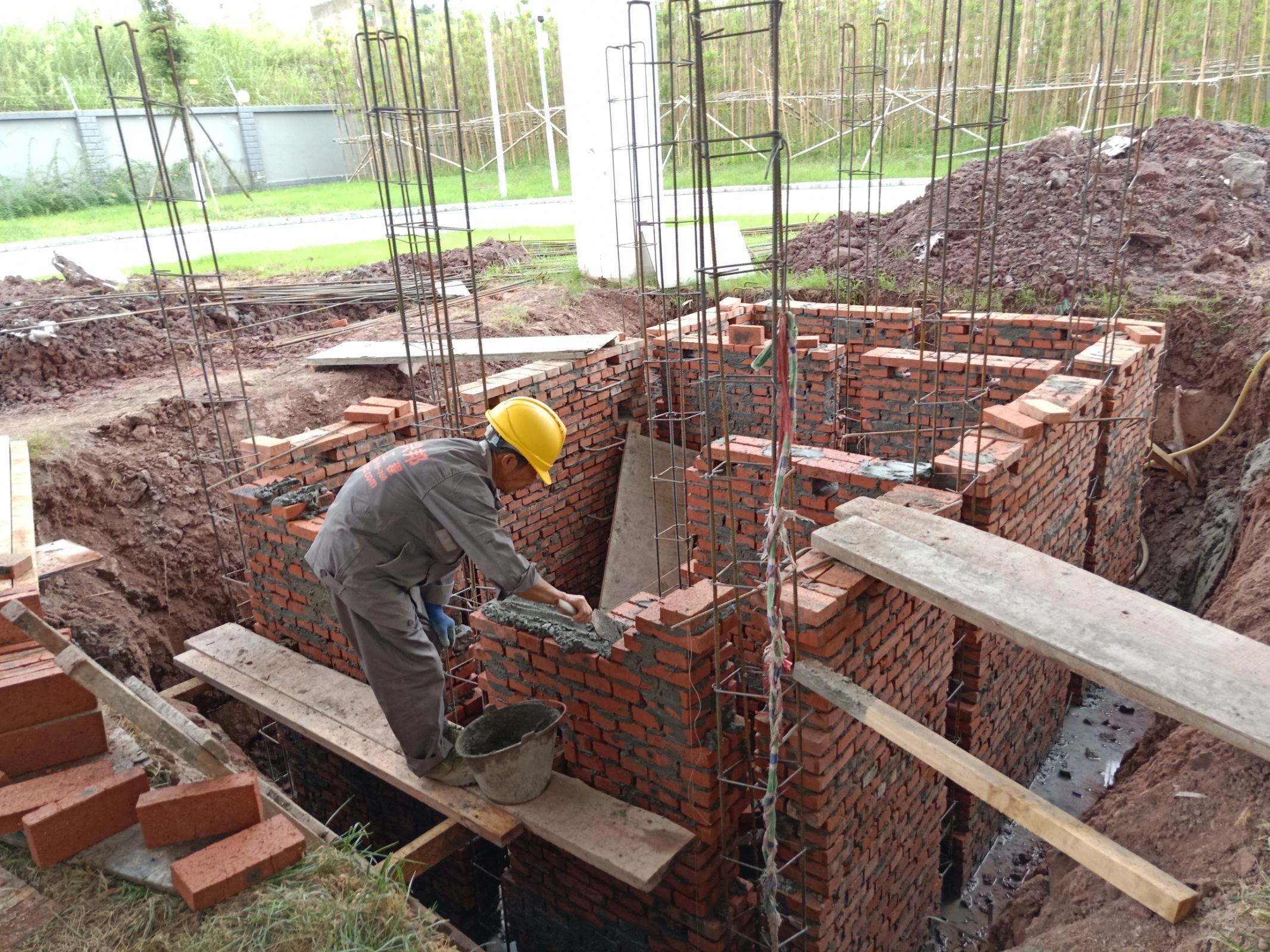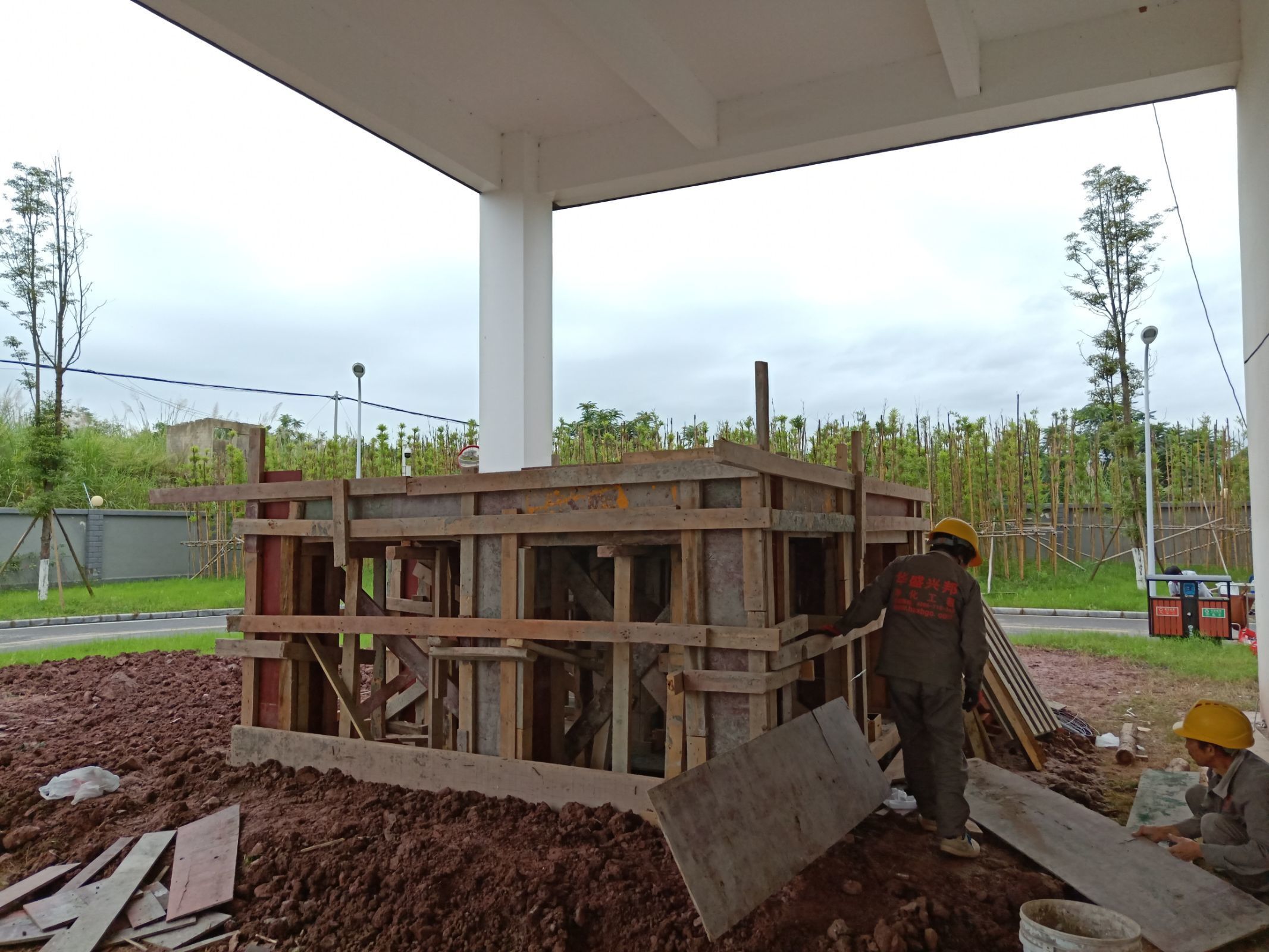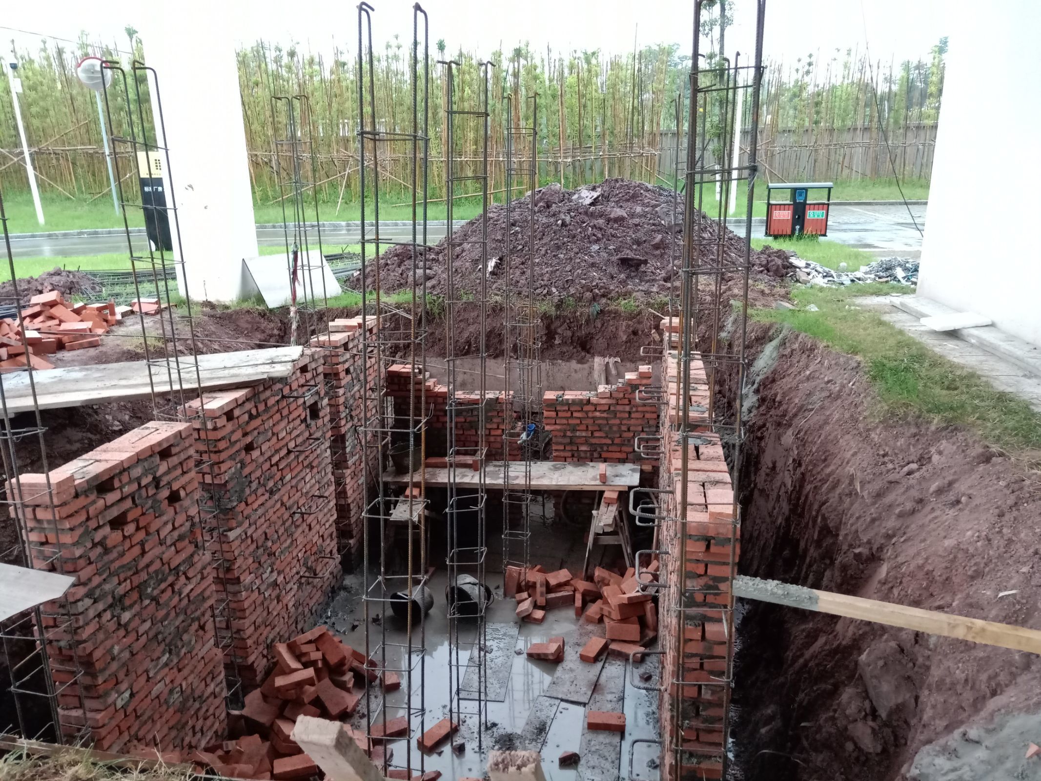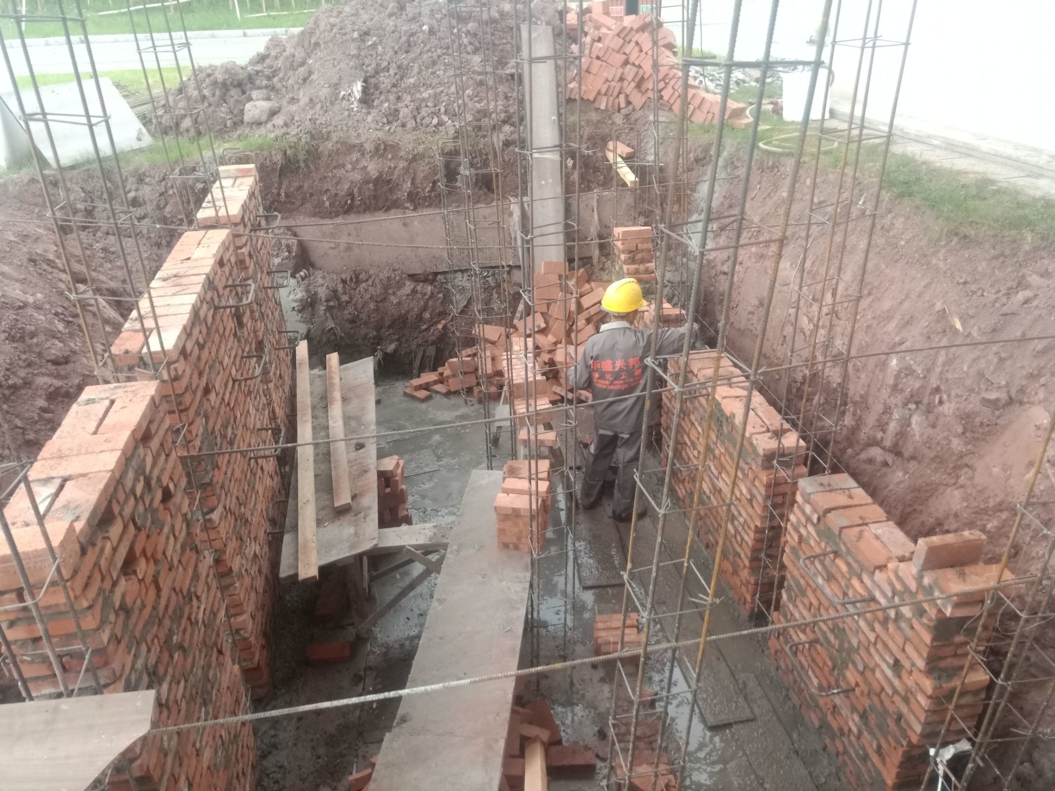 1.污水池回填施工 2.污水池二層平臺柱子關模施工 3.水電安裝 4.圓弧膠條施工 5.墻磚施工