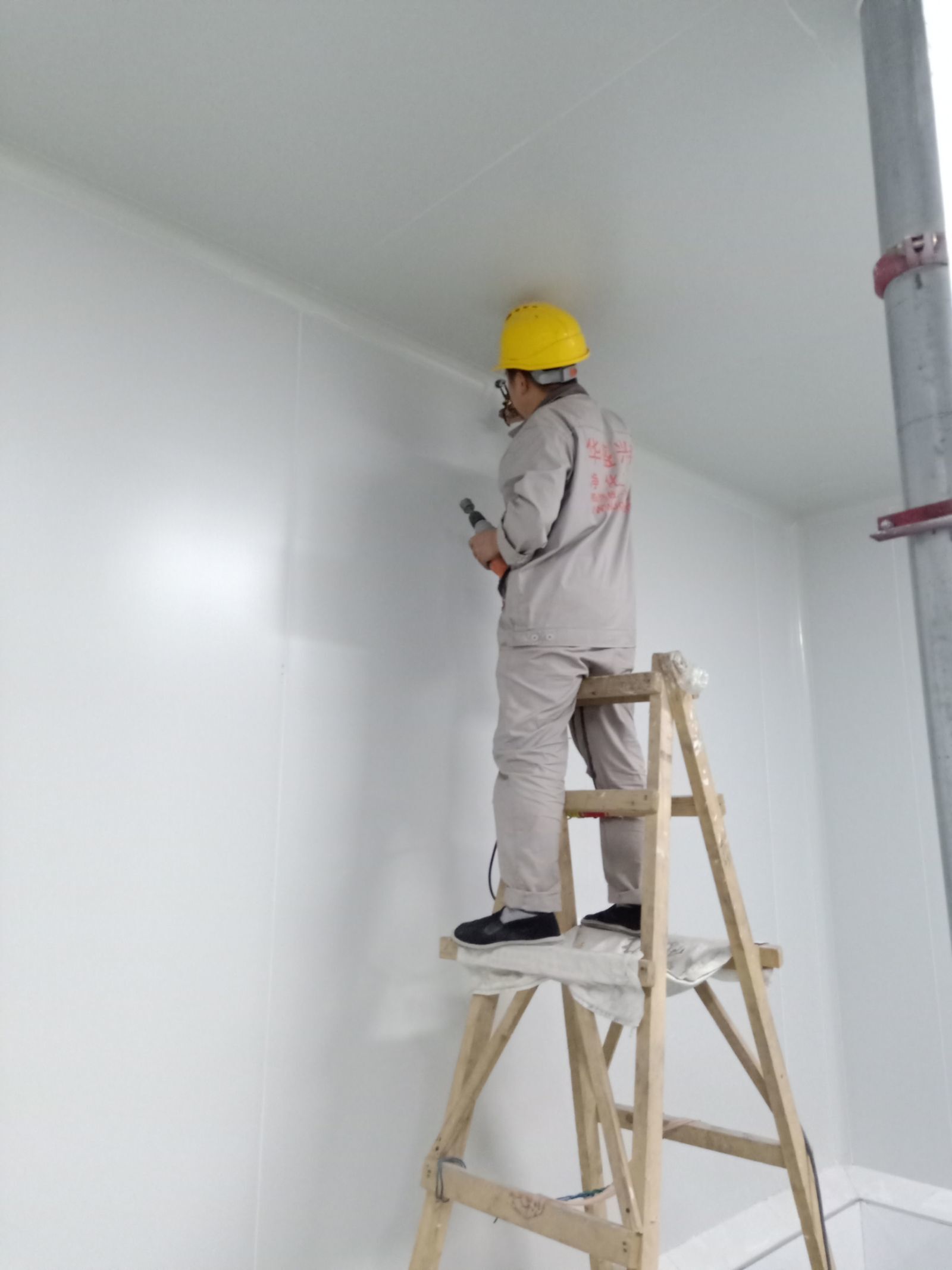 車間燈具安裝完成,不銹鋼銘牌安裝完成