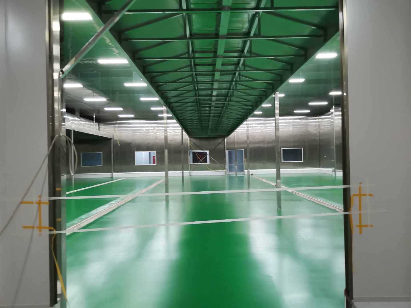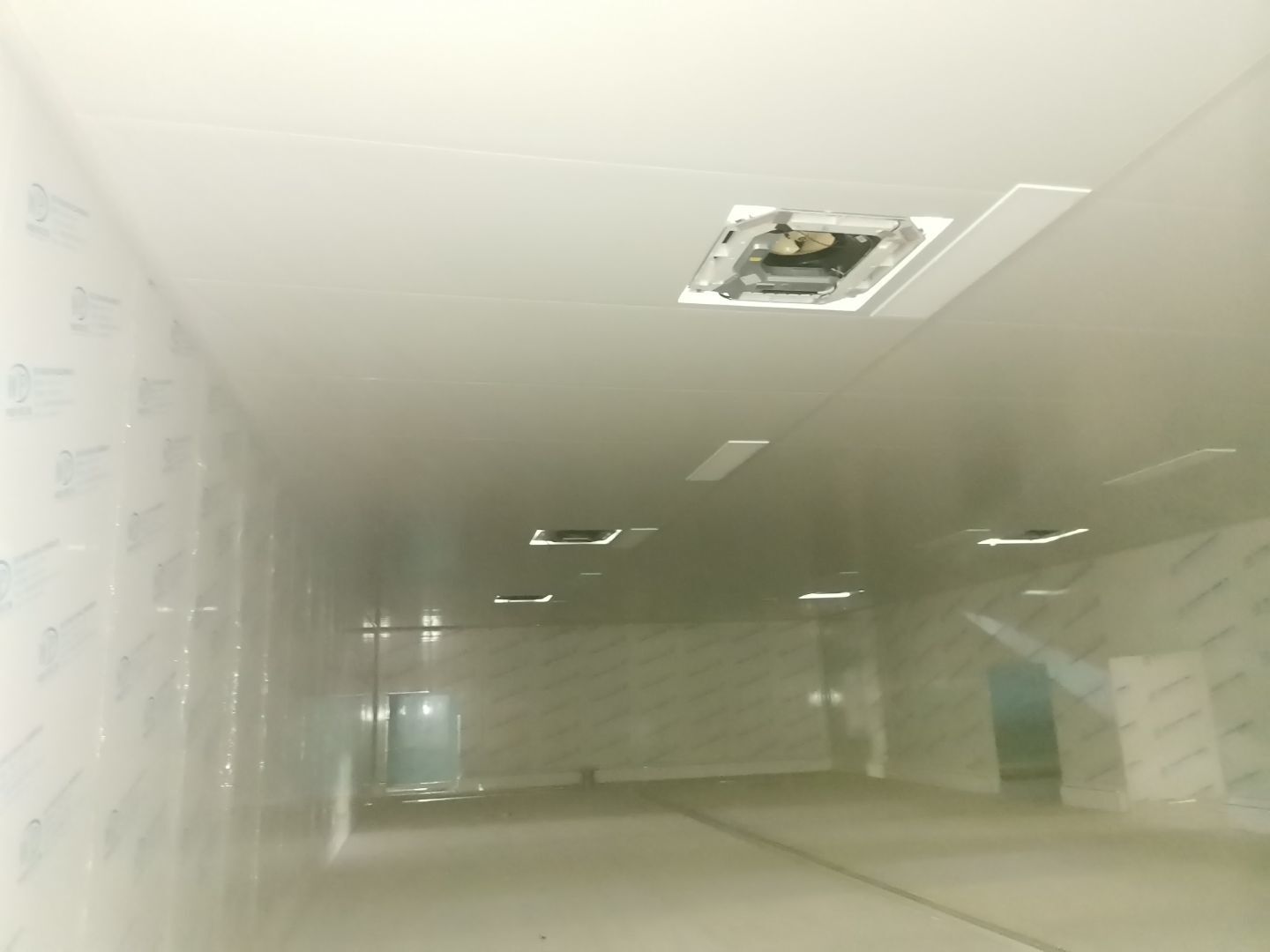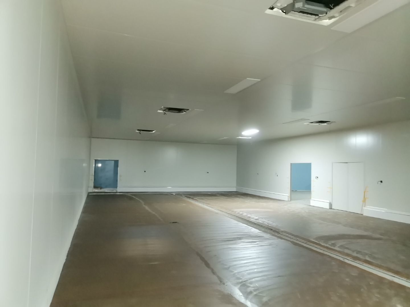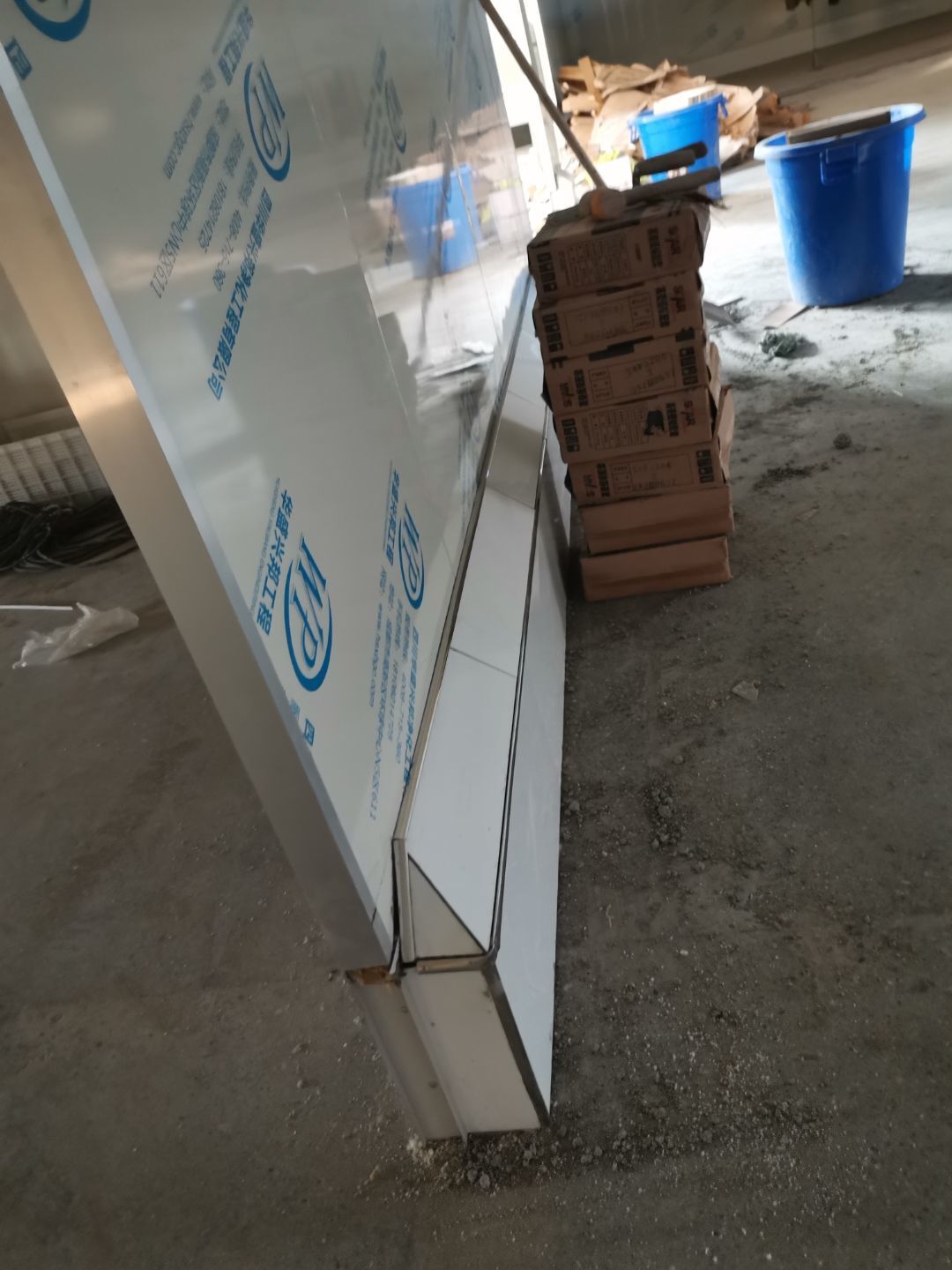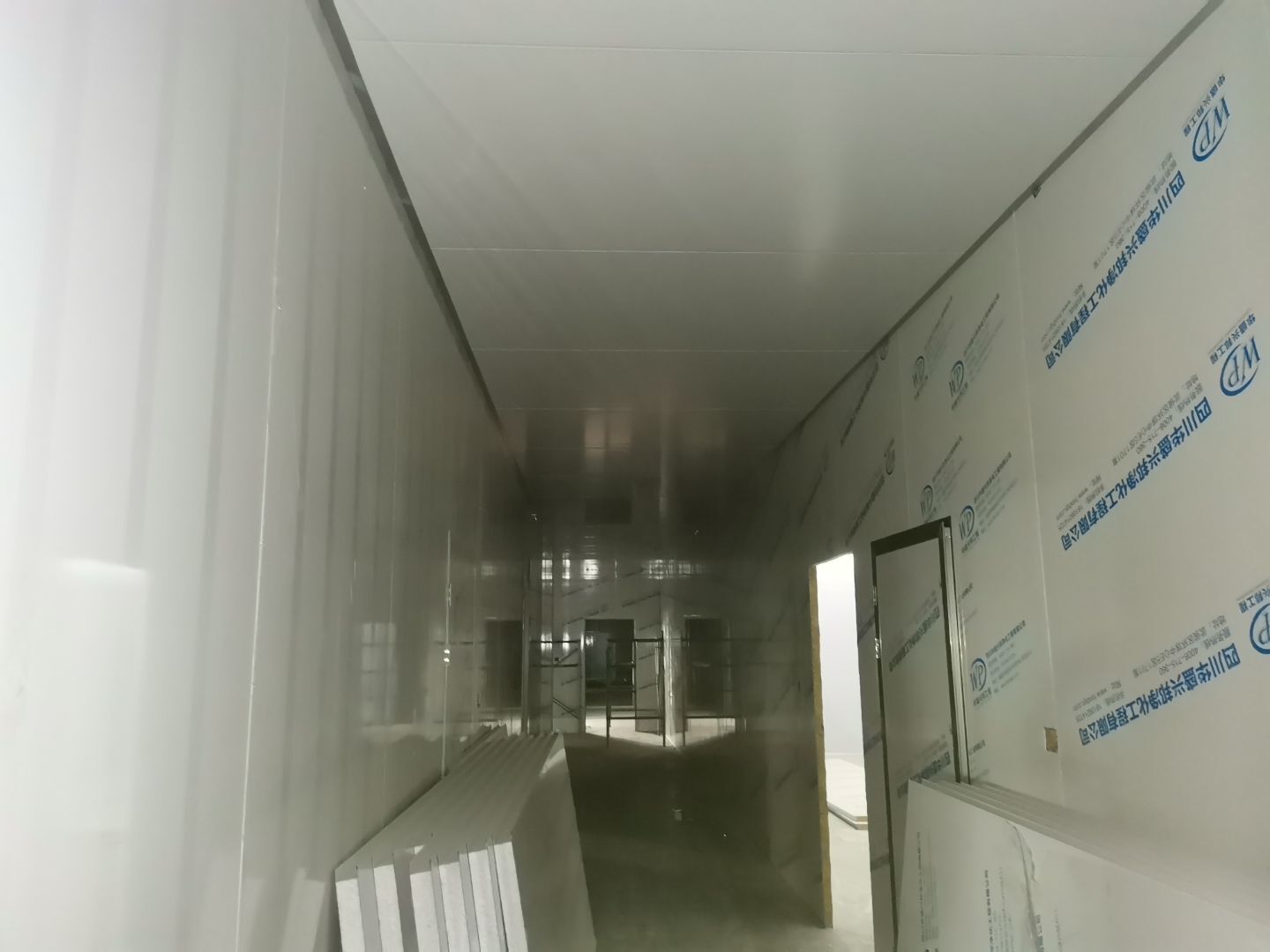 1、 吊筋安裝完成70%,頂板安裝完成70%; 2、彩鋼墻板安裝完成95%,門洞開設(shè)完成90%,自制門框下料完成100%; 3、地坪打磨第三遍完成100%; 4、水電燈具安裝完成90%,插座定位開孔完成100; 5、彩鋼圓弧安裝完成70%; 6、原水溝混凝土面層修補完成100%; 7、墻板撕膜打膠完成45%; 8、冷風(fēng)機主機安裝完成100%,風(fēng)管安裝完成15%; 9、場地清理。