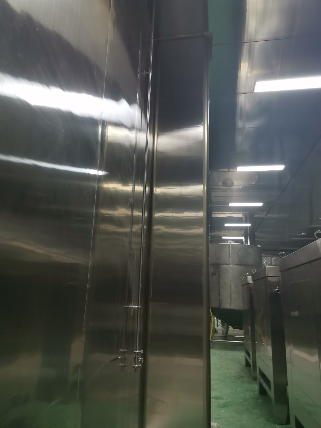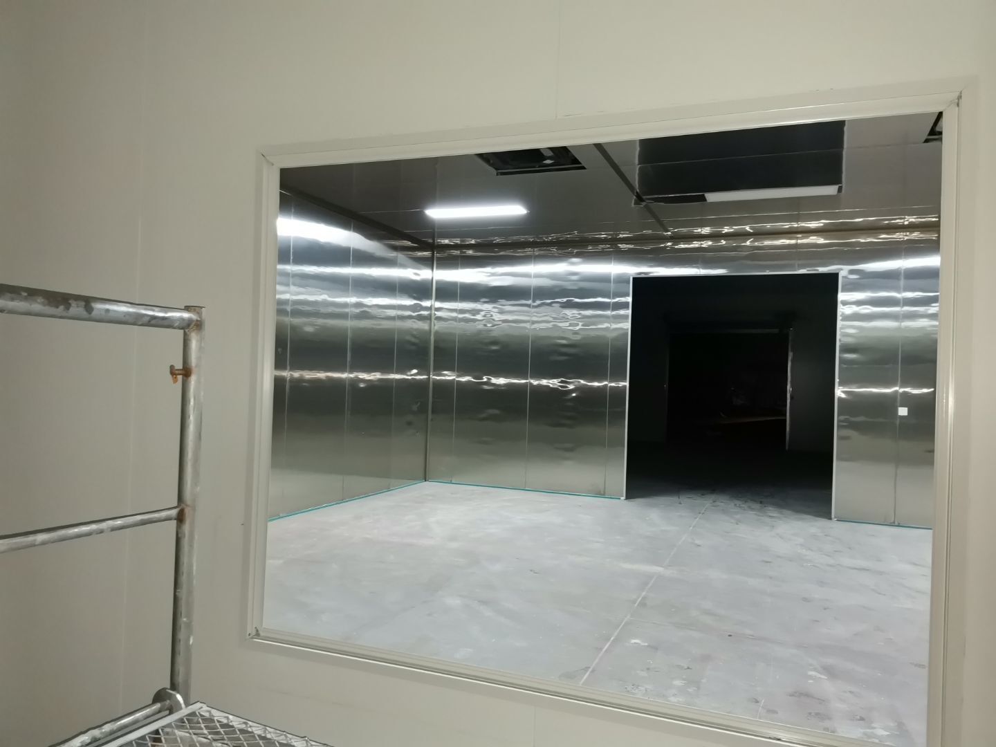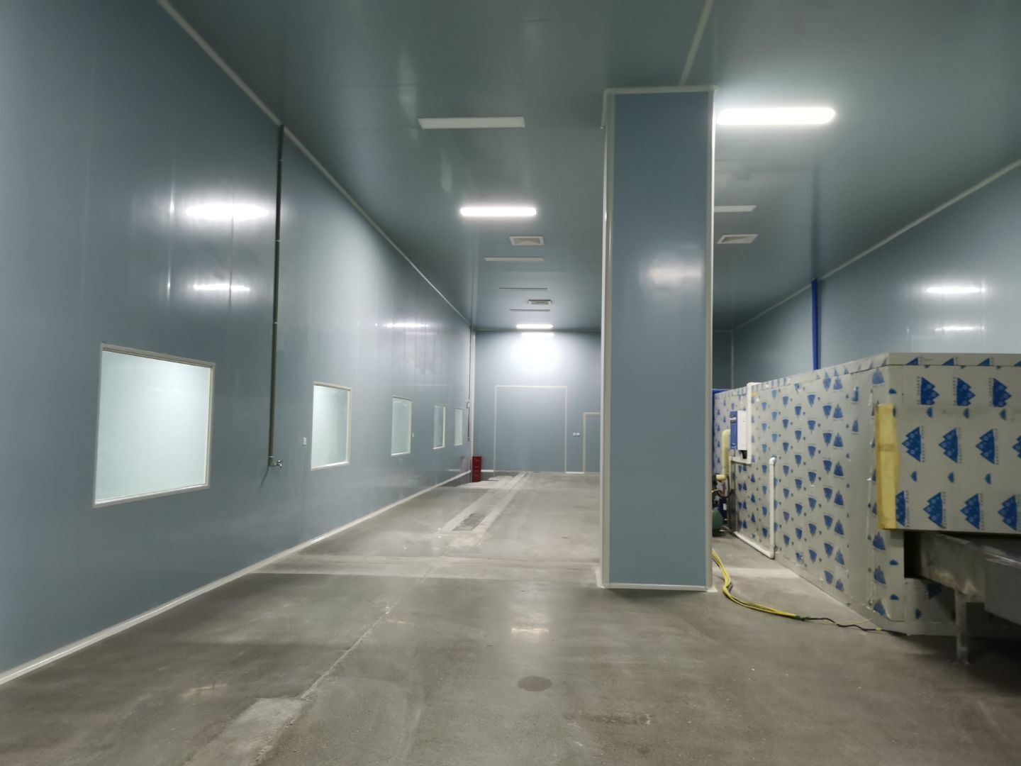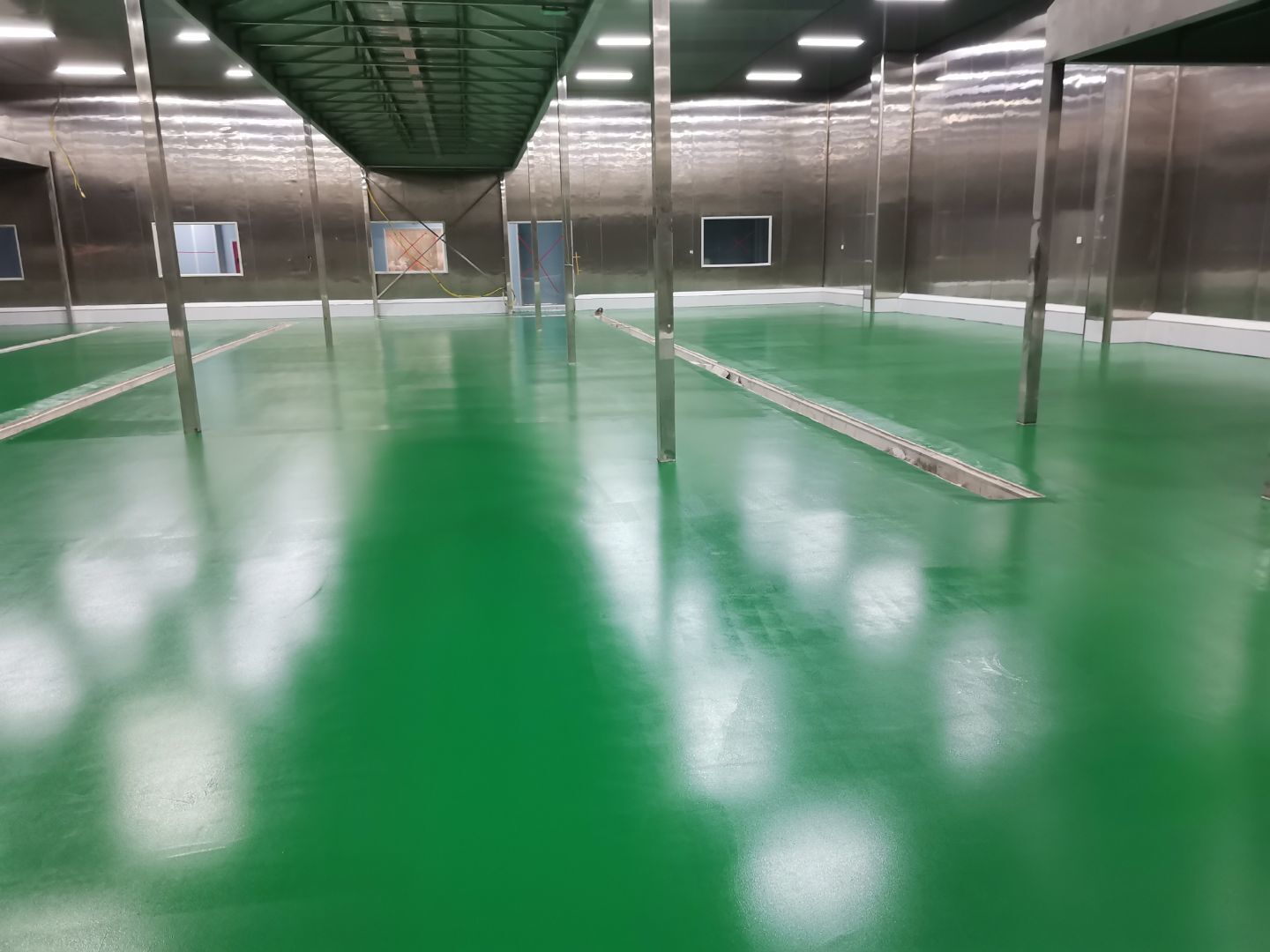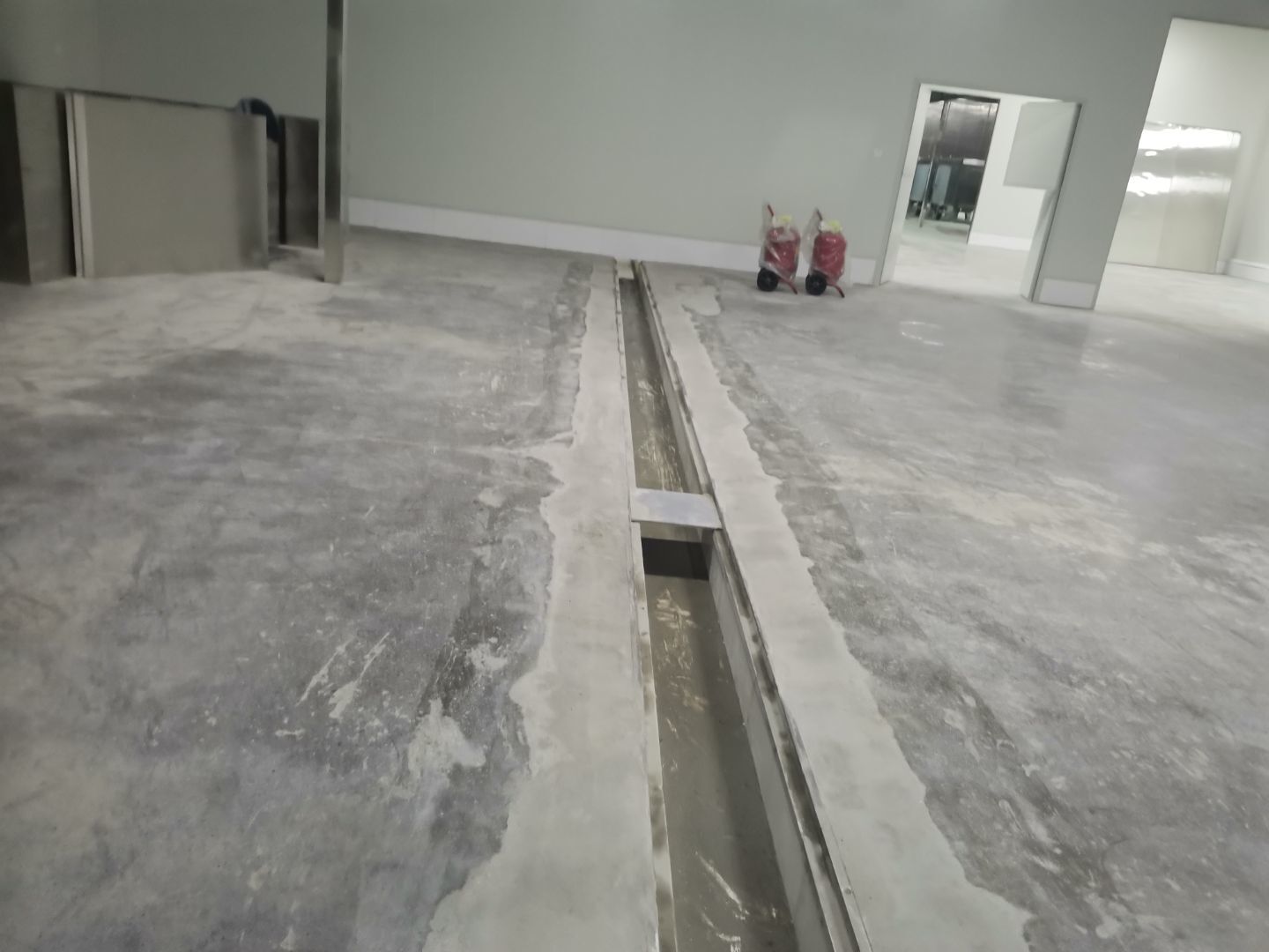 1、 吊筋安裝完成70%,頂板安裝完成70%; 2、彩鋼墻板安裝完成95%,門洞開設(shè)完成90%,自制門框下料完成100%; 3、地坪打磨第三遍完成100%; 4、水電燈具安裝完成90%,插座定位開孔完成100; 5、彩鋼圓弧安裝完成70%; 6、原水溝混凝土面層修補完成100%; 7、墻板撕膜打膠完成45%; 8、冷風(fēng)機主機安裝完成100%,風(fēng)管安裝完成15%; 9、場地清理。