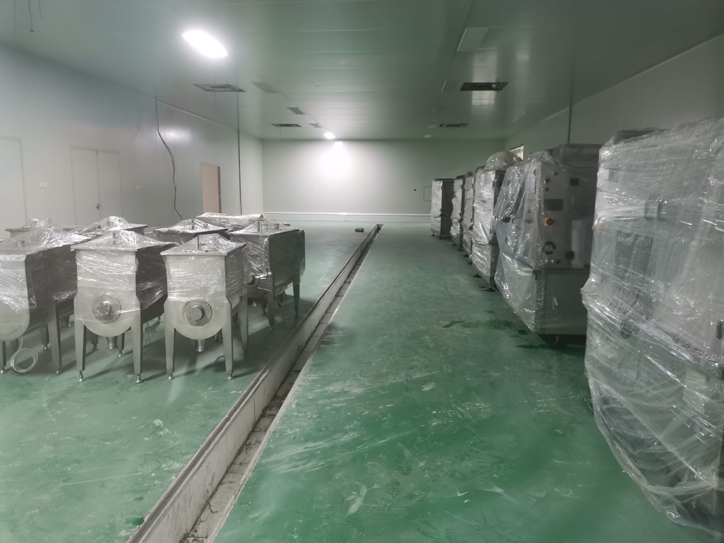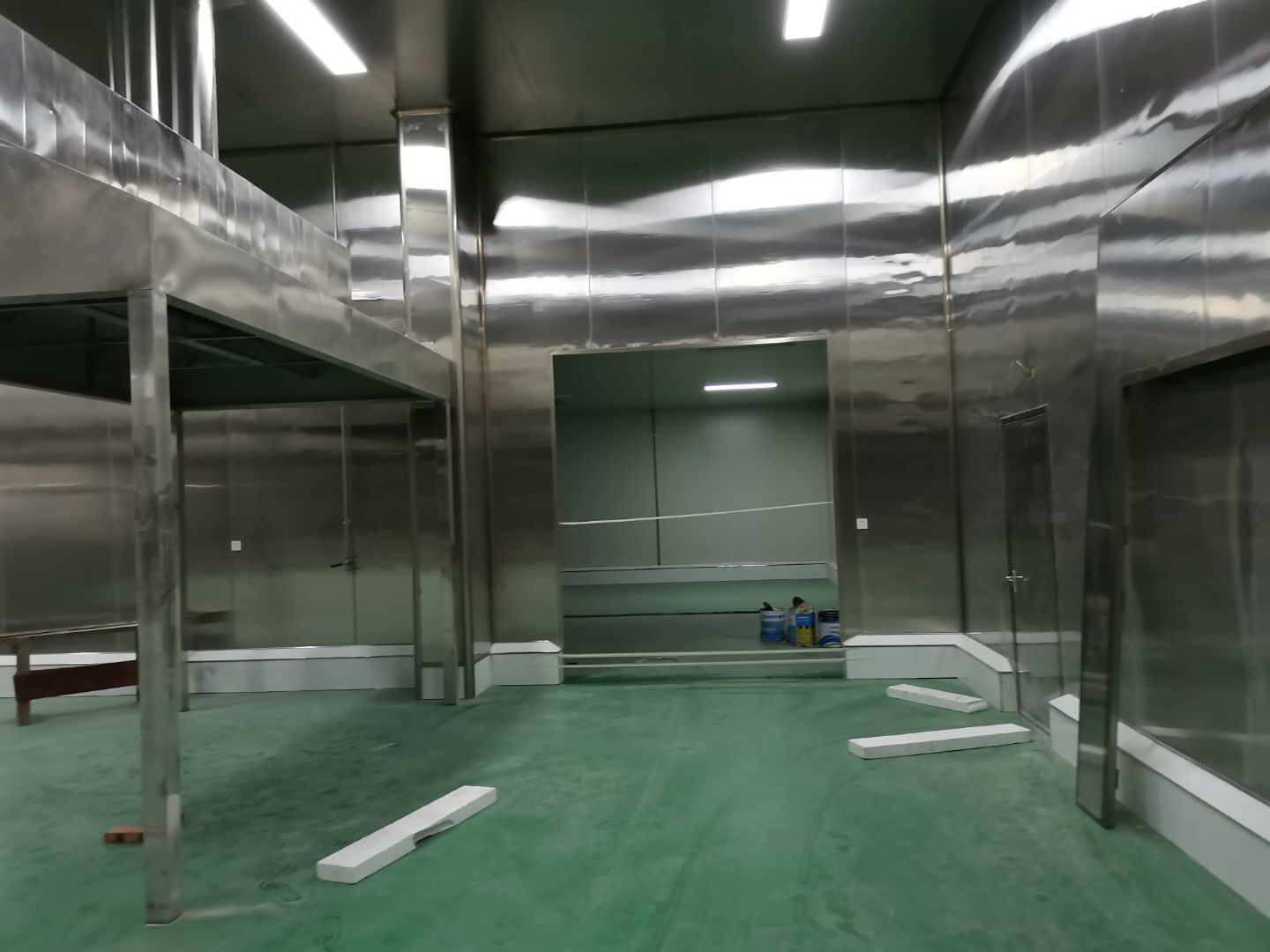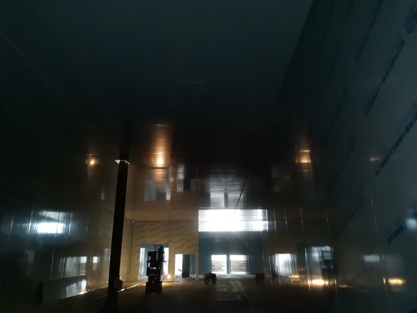 1、彩鋼墻板安裝完成97%,門洞開設(shè)完成95%,自制門框安裝完成95%(墻板待圍堰貼磚完成后進(jìn)行); 2、內(nèi)包間、粉料間、炒制間地坪面漆完成100%; 3、水電燈具安裝完成100%,插座布線完成100%,照明插座回路線布設(shè)完成100%,排風(fēng)扇安裝完成100%; 4、彩鋼圓弧安裝完成100%,窗洞開設(shè)完成100%,玻璃安裝完成100%; 5、原水溝混凝土面層固化完成70%,參觀通道地面基層處理完成100%; 6、墻板撕膜打膠完成100%; 7、場地清理。
