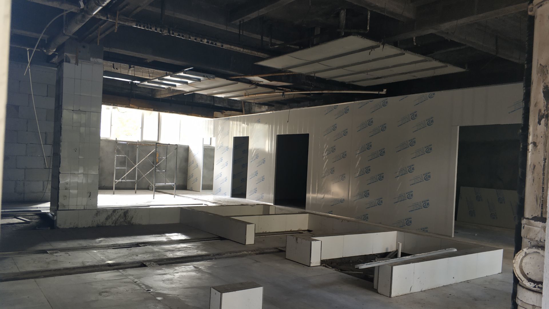 四川鼎力鑫食品有限公司車間施工現場,車間排水溝開挖,擋水墻施工