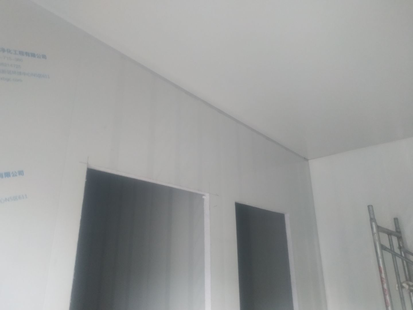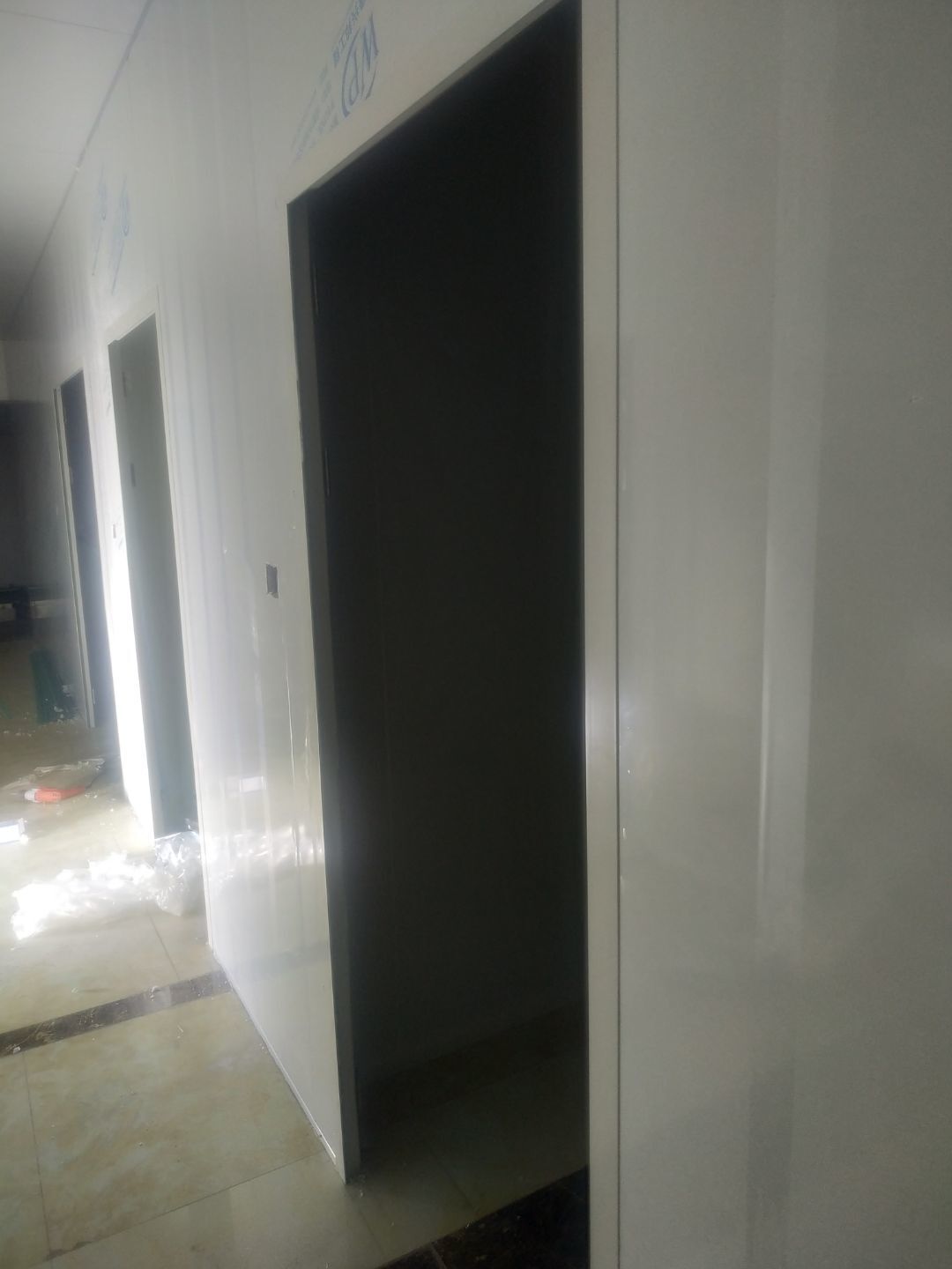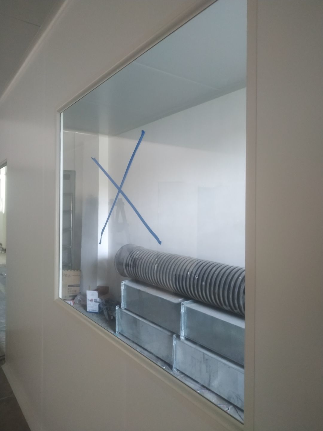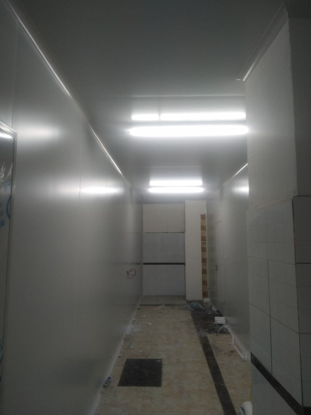 門安裝完成,門鎖安裝完成,換氣扇、進風口、空調風口開洞完成,照明電試電完成。
