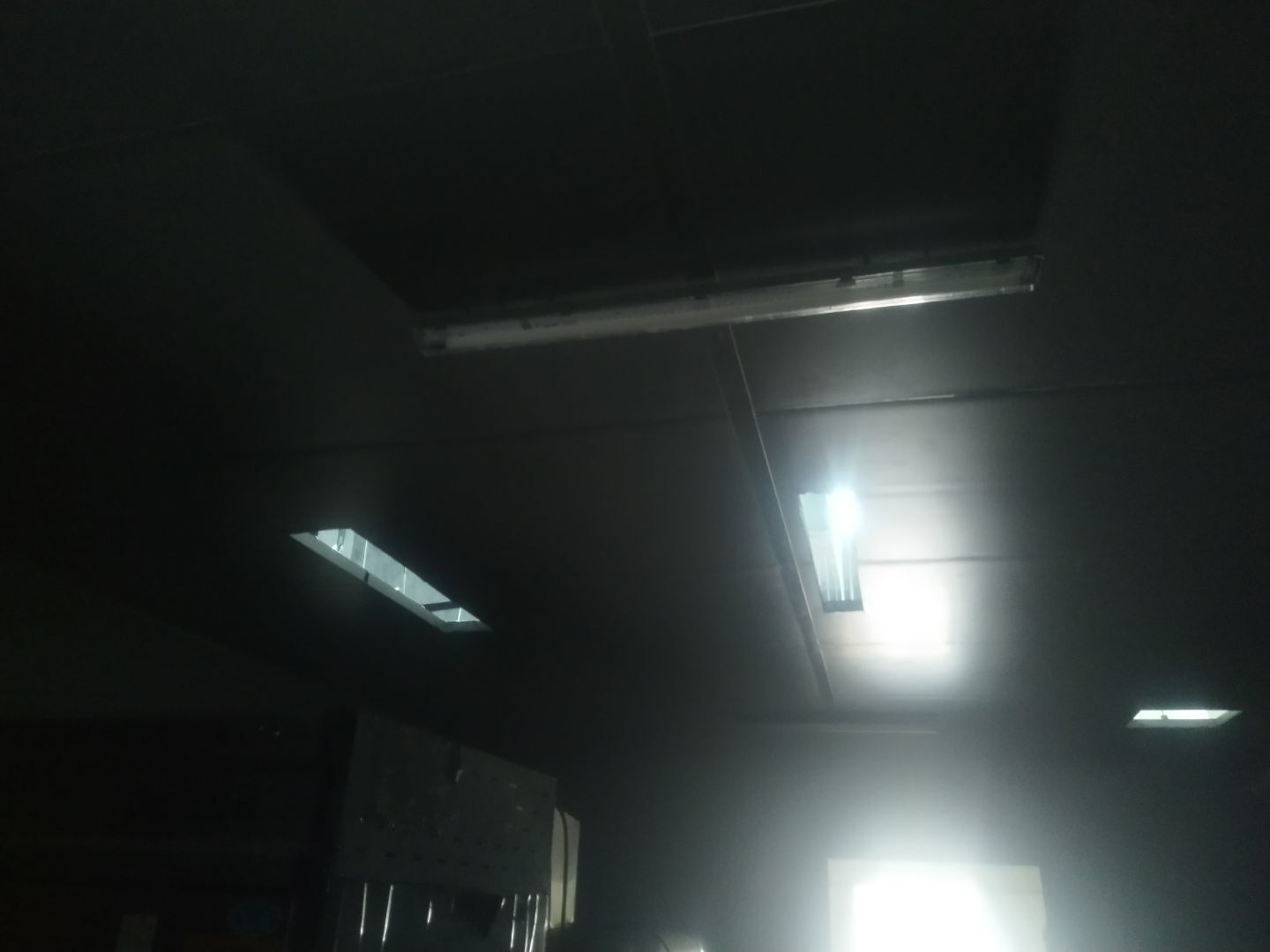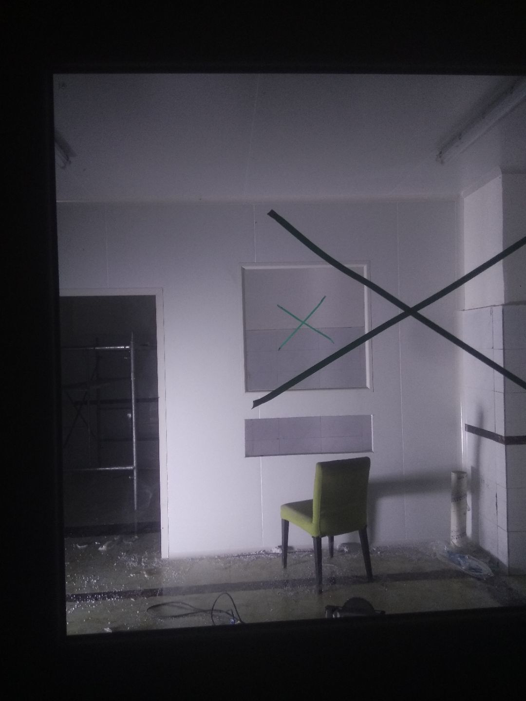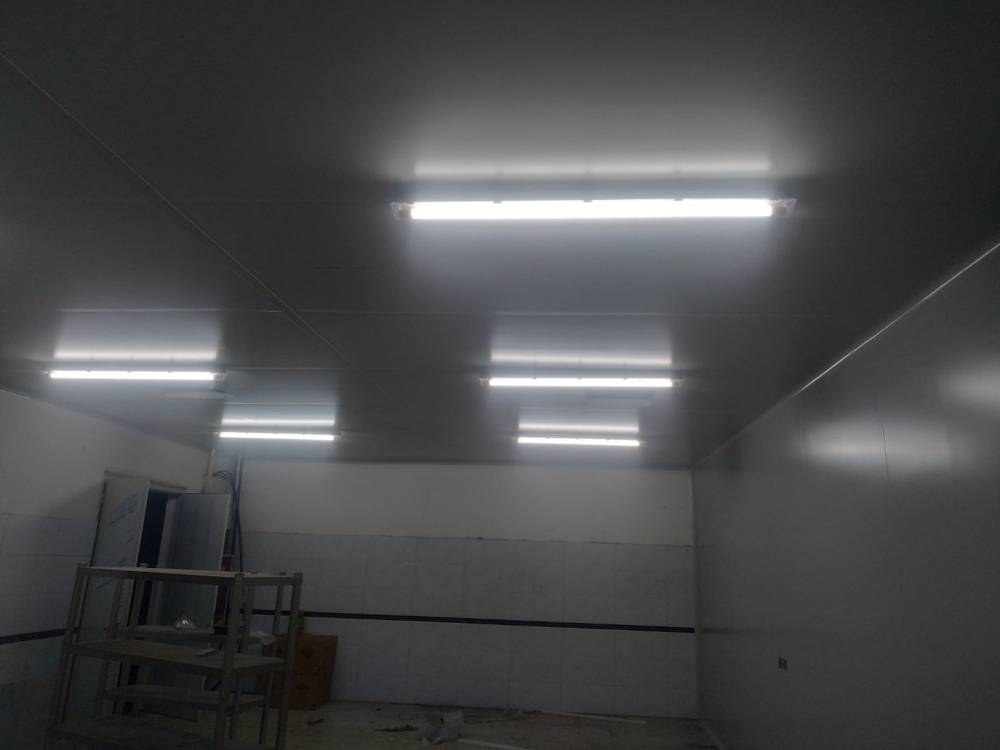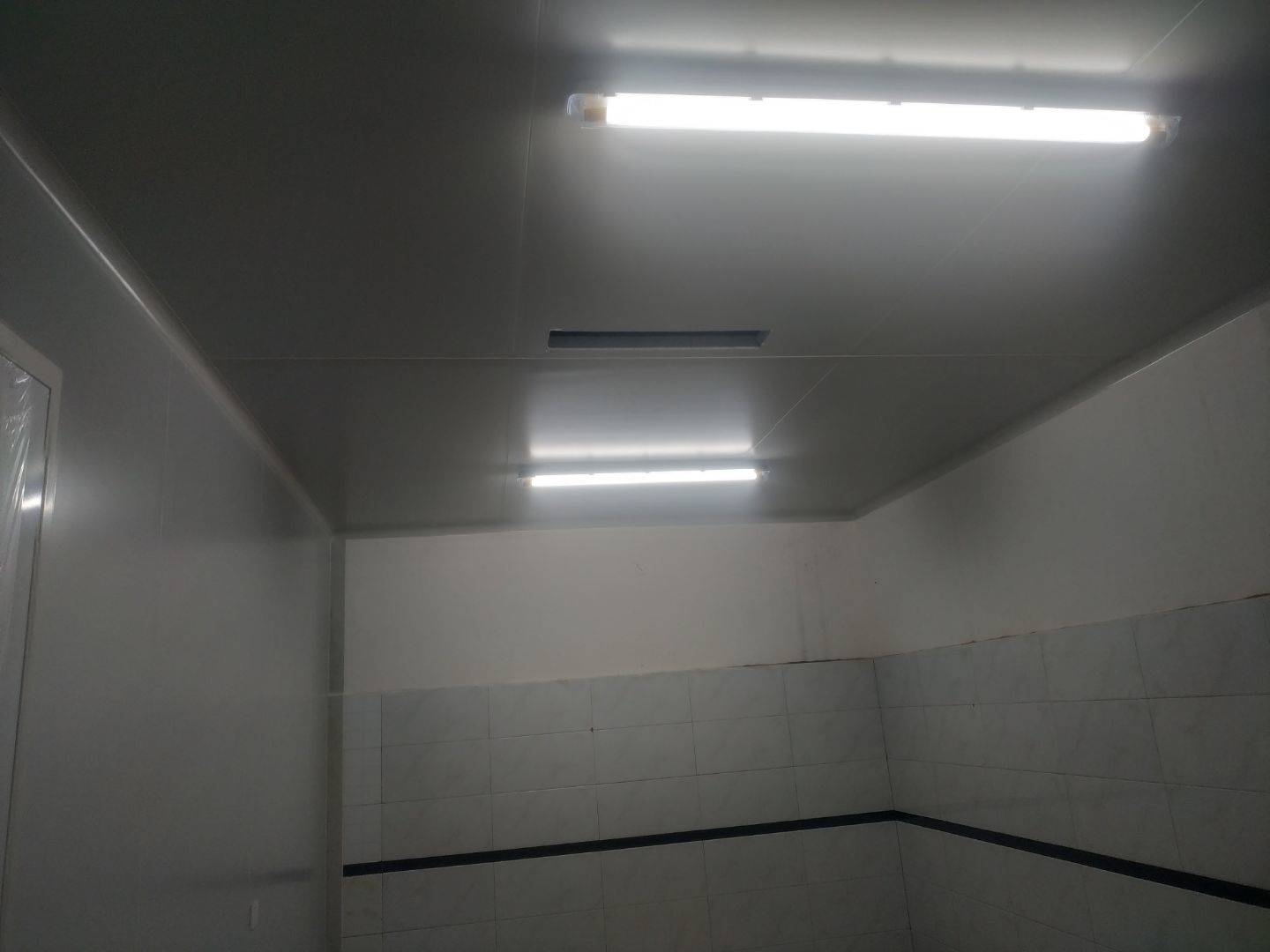 門安裝完成,門鎖安裝完成,換氣扇、進風口、空調風口開洞完成,照明電試電完成。