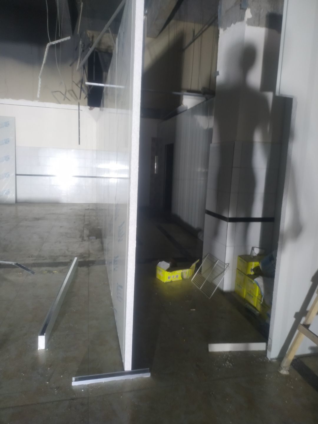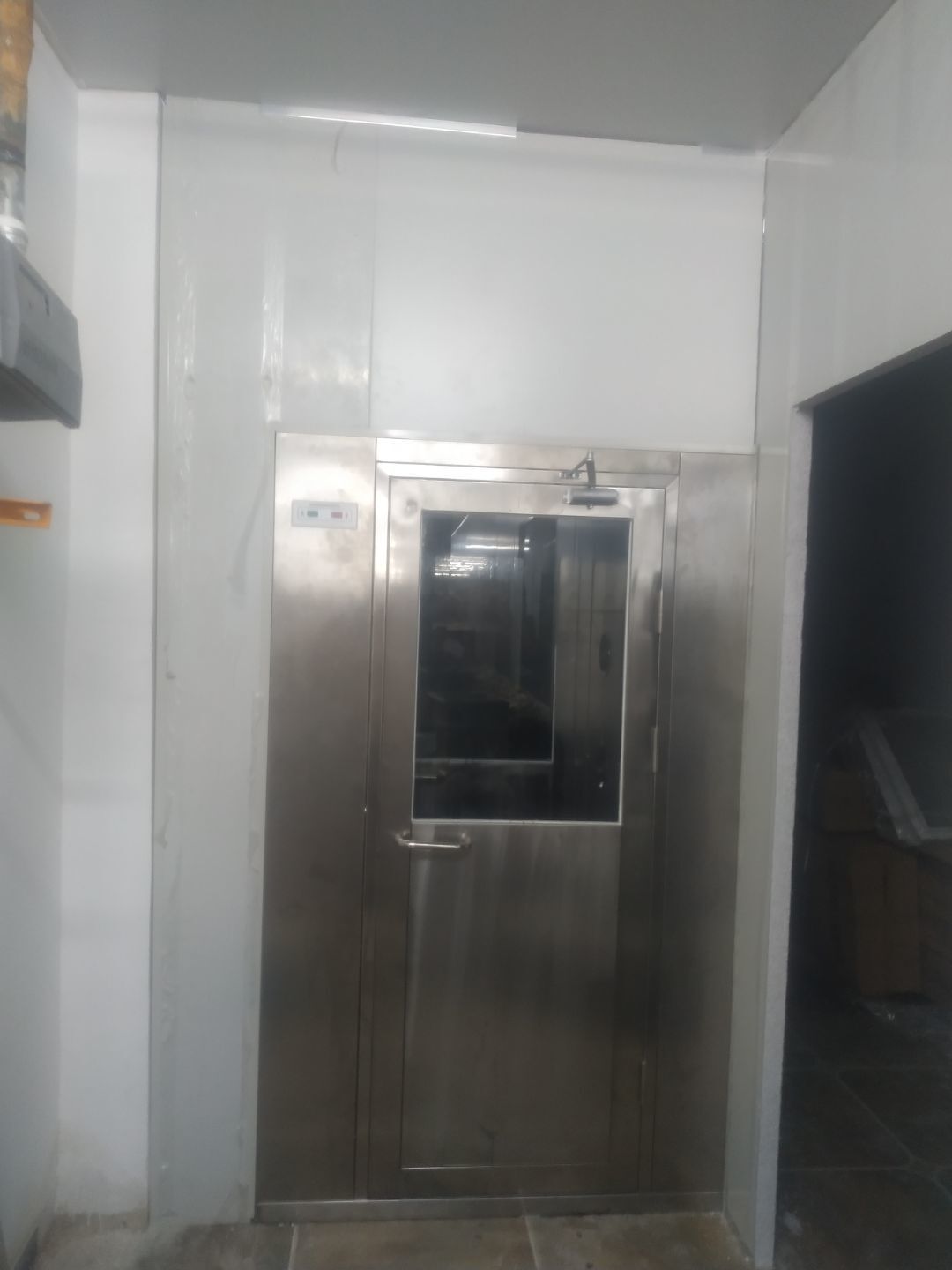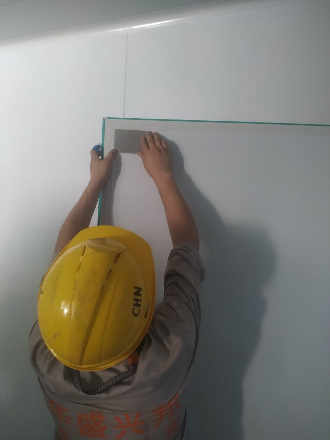圓弧安裝完成90%,打膠完成85%,門鎖安裝完成75%,觀察窗開洞和玻璃安裝完成。