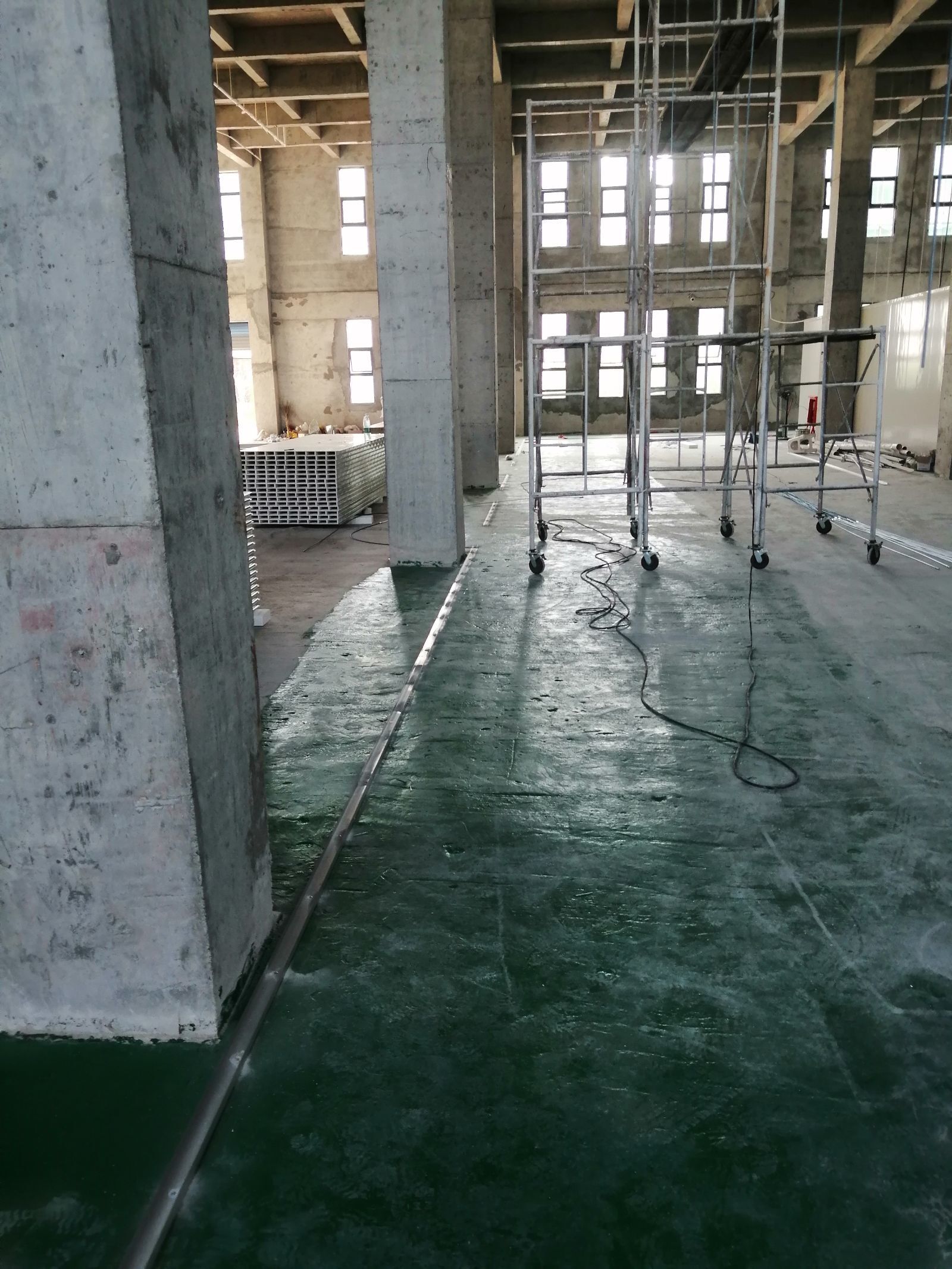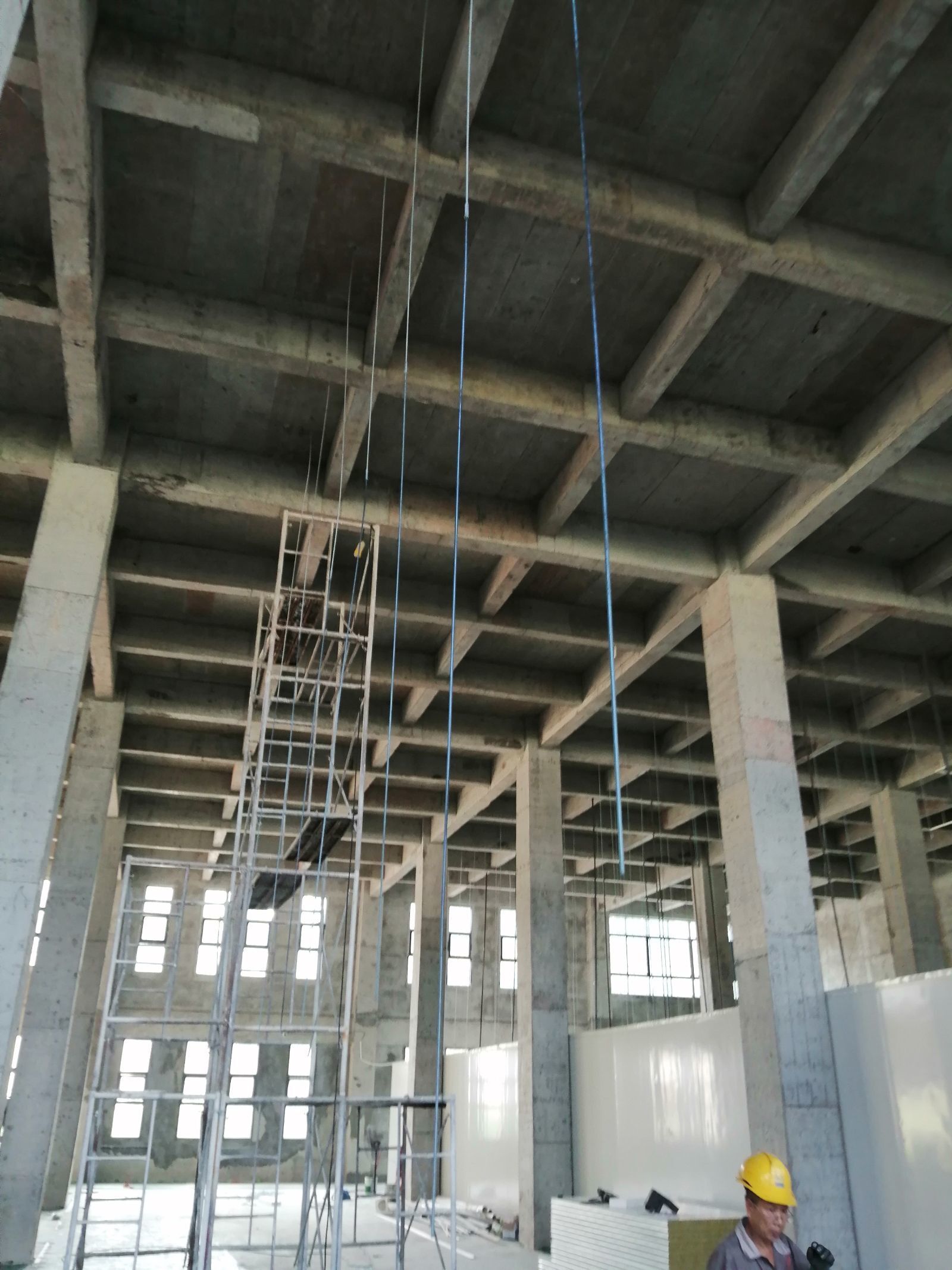 1.卸貨,放線完成,打地槽完成 2.吊筋制作完成,開始施工安裝,樓層較高,施工進度緩慢