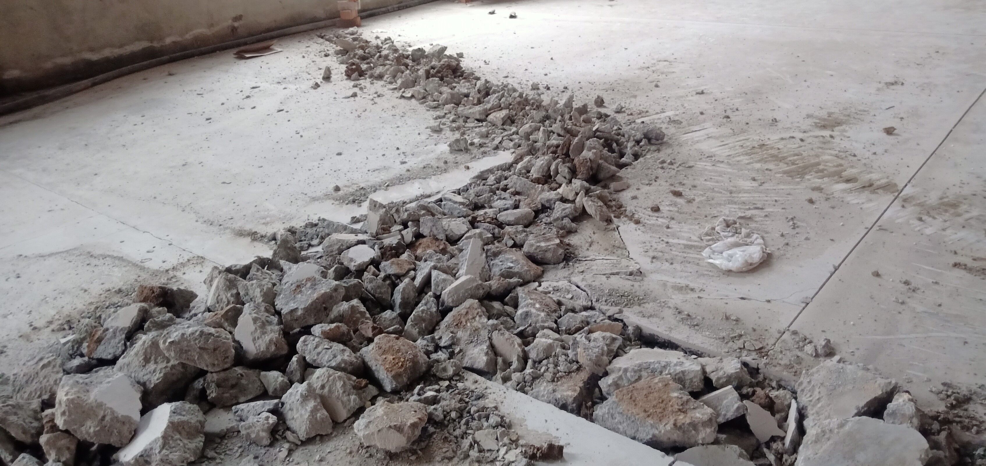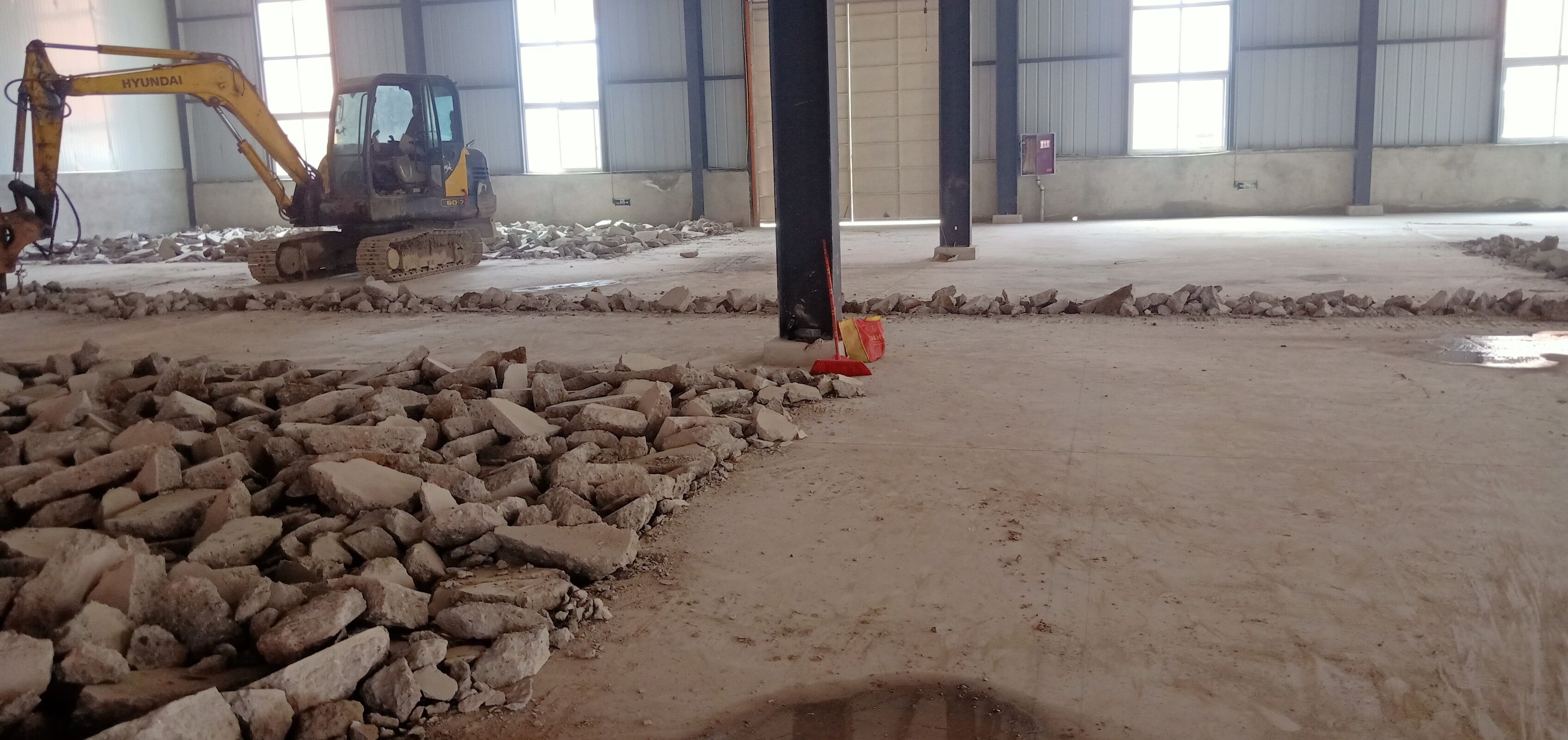 室內(nèi)排水溝破碎及清挖完成,待泥水進(jìn)場(chǎng)
