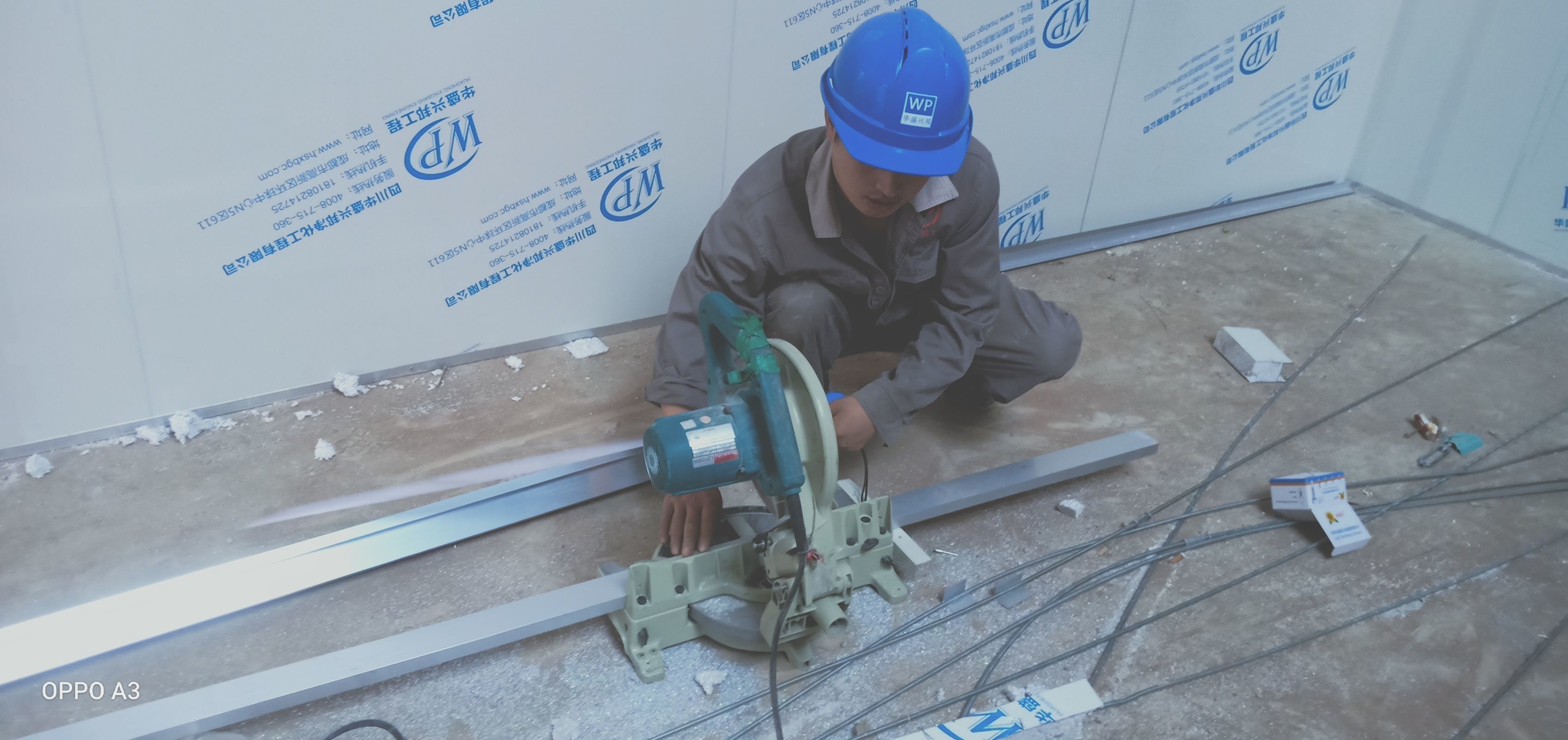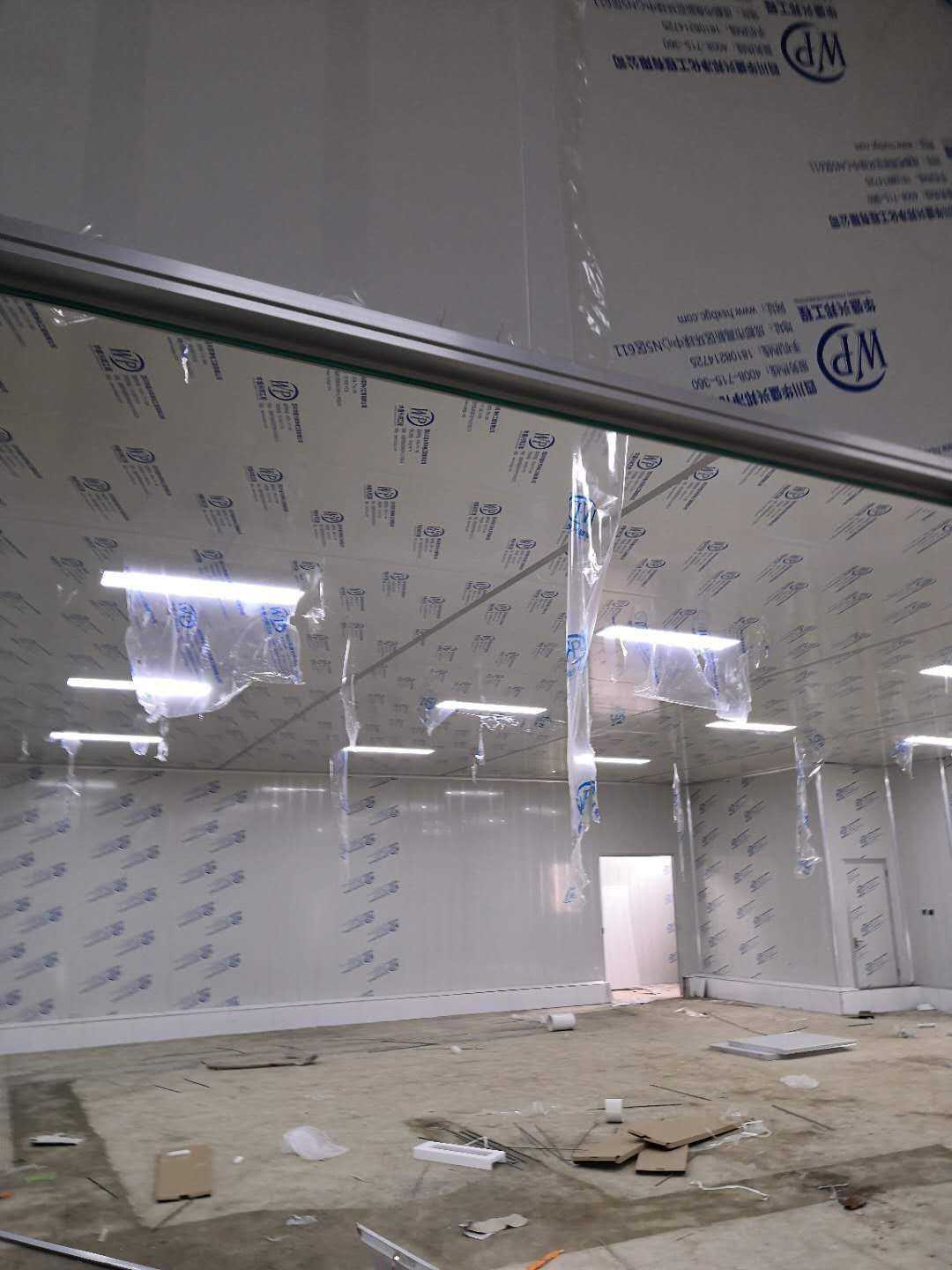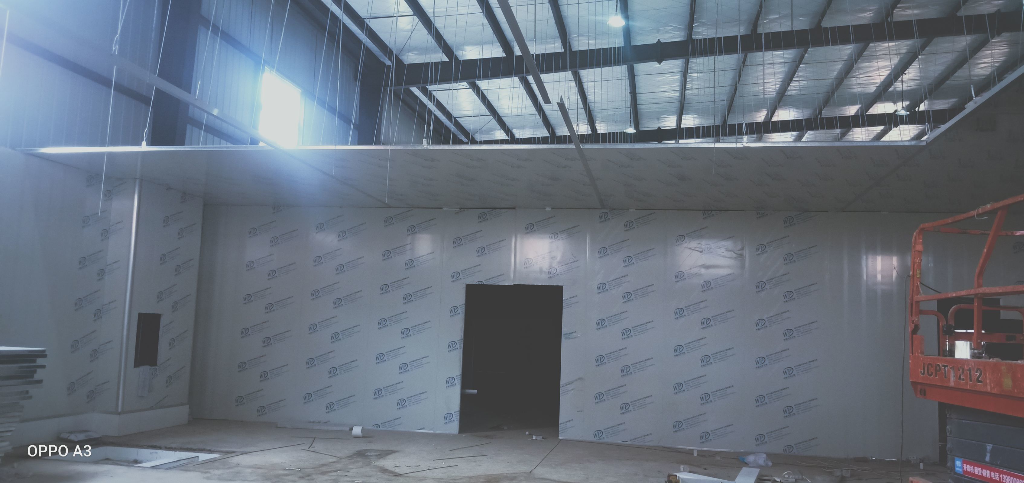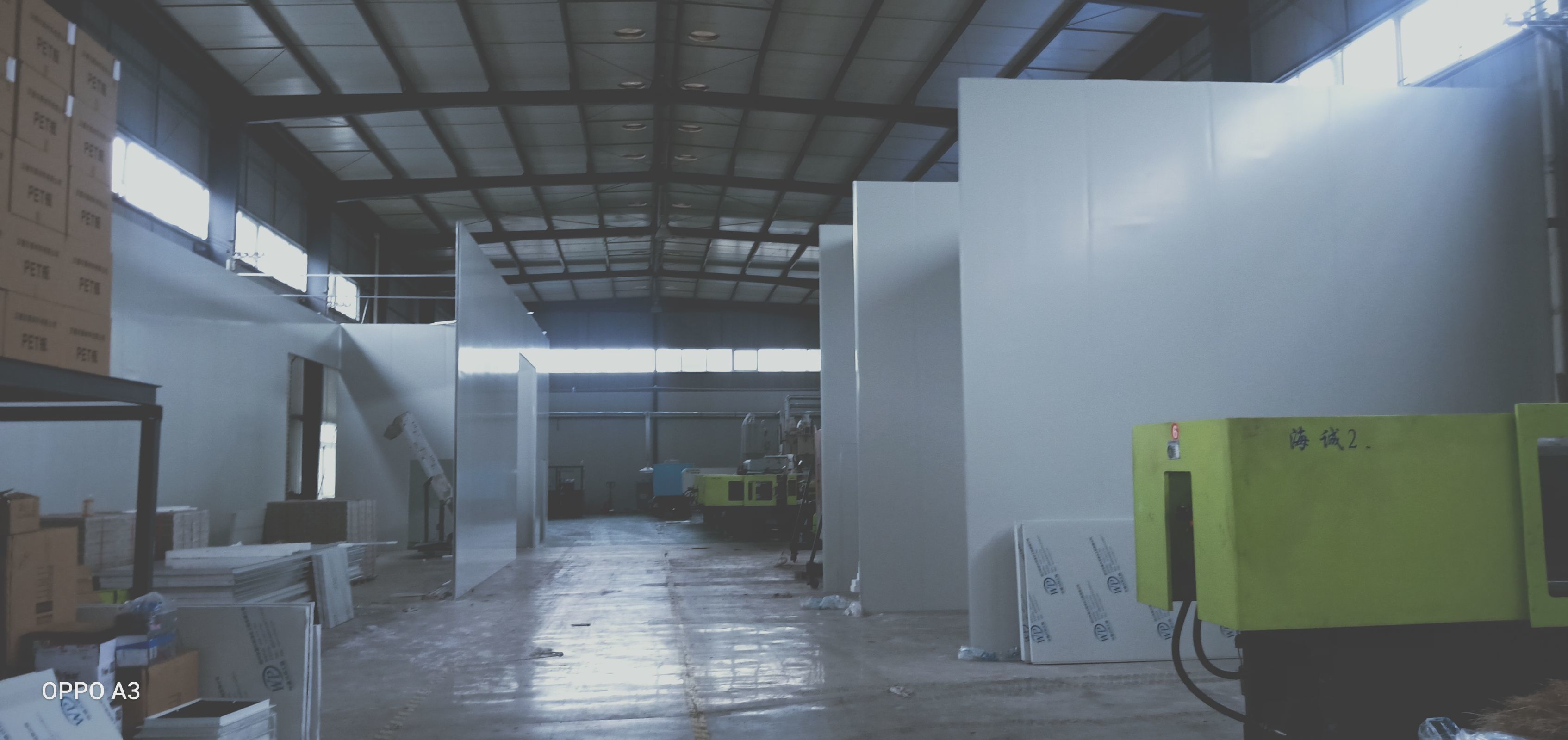 彩鋼板、凈化板施工現(xiàn)場(chǎng)。