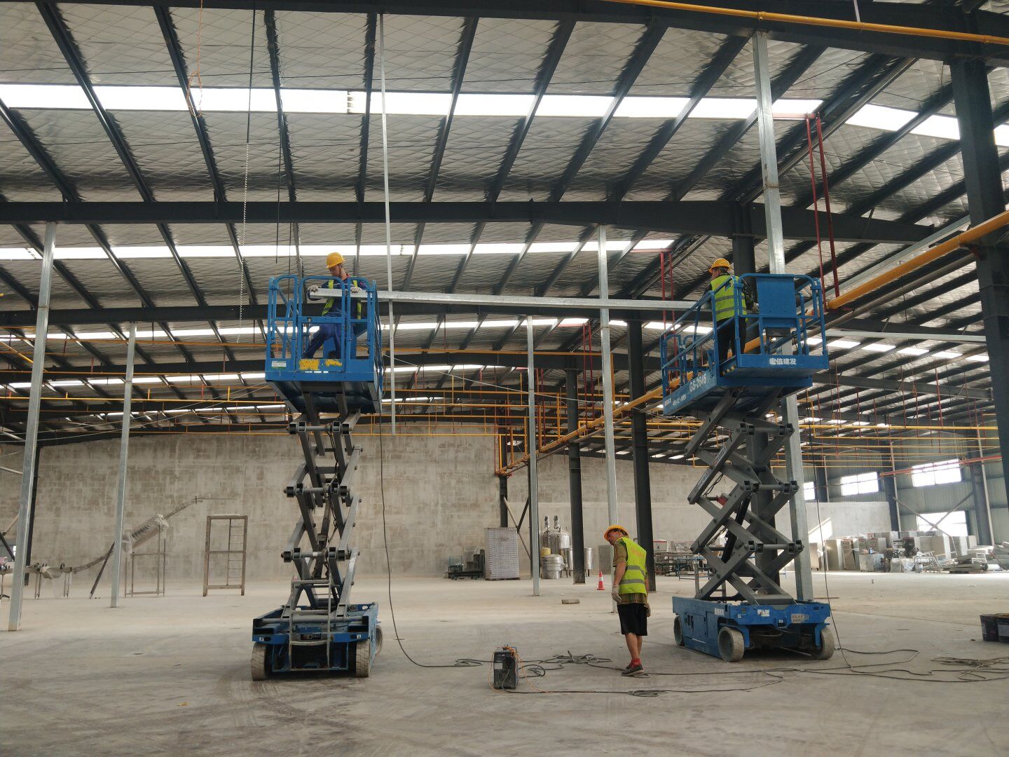 液體車間施工:1,彩鋼墻板完成60%; 2,頂板完成40%。