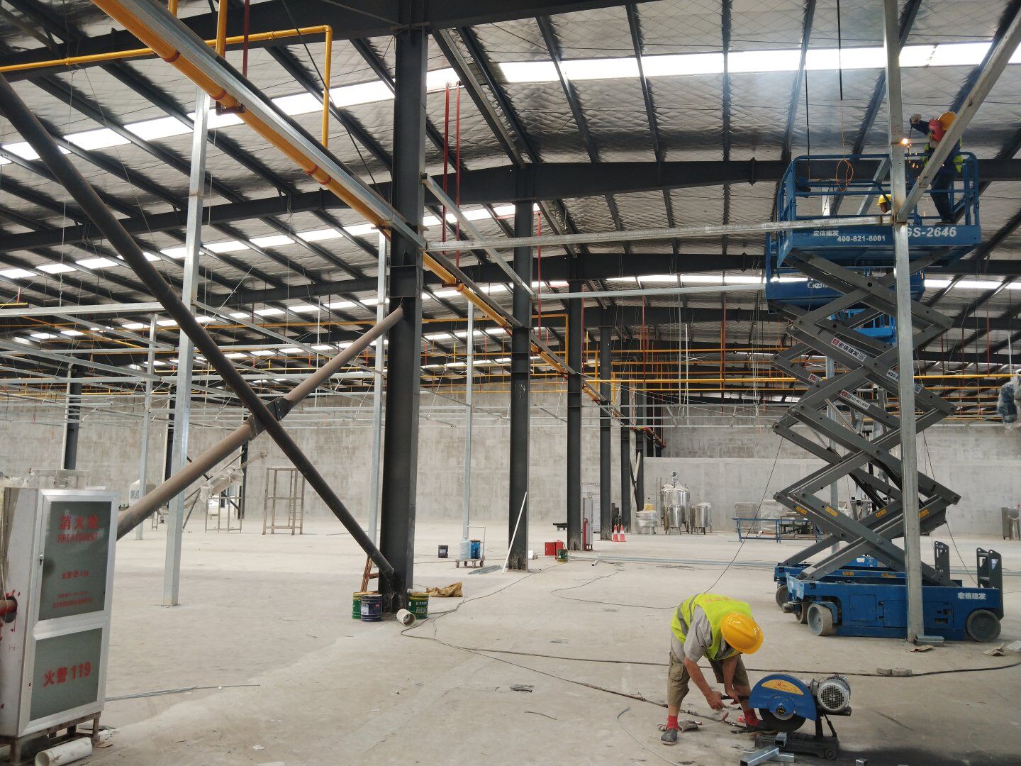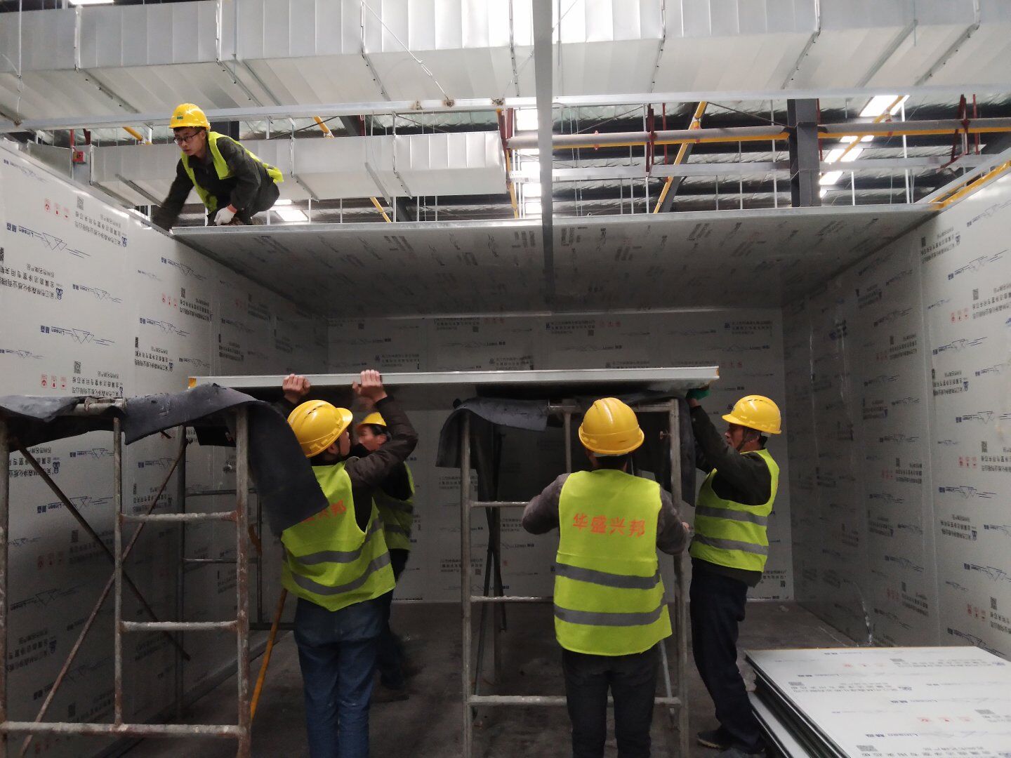 1,除預留設備通道外的彩鋼板墻板完成; 2,彩鋼板頂板完成80%。