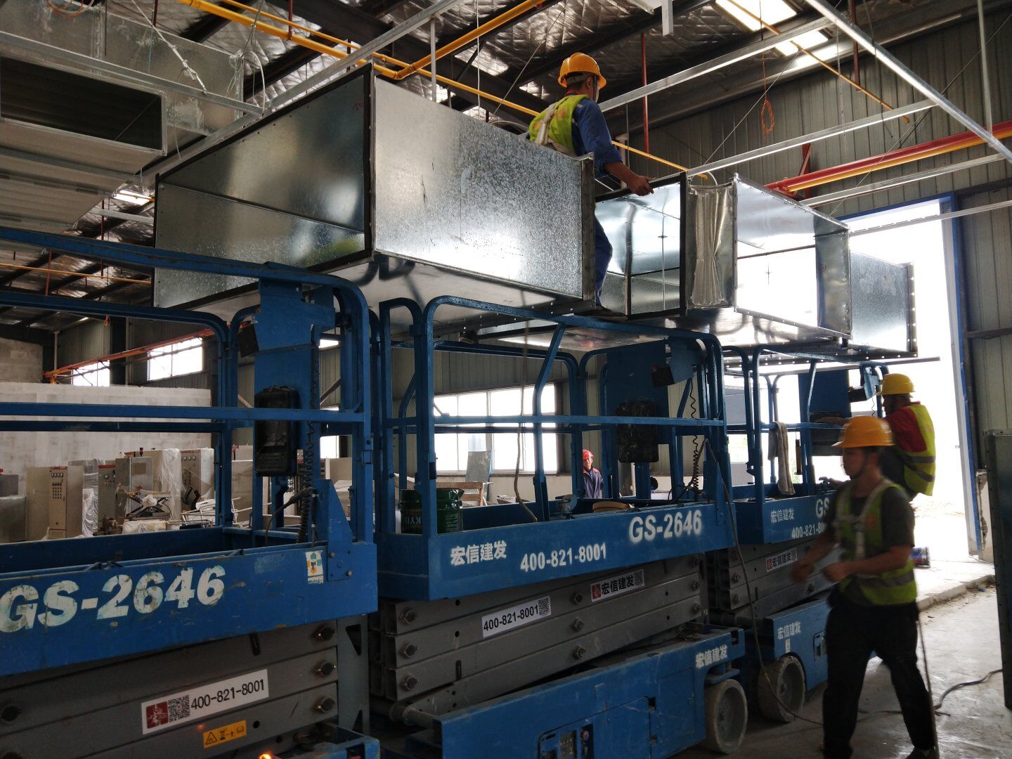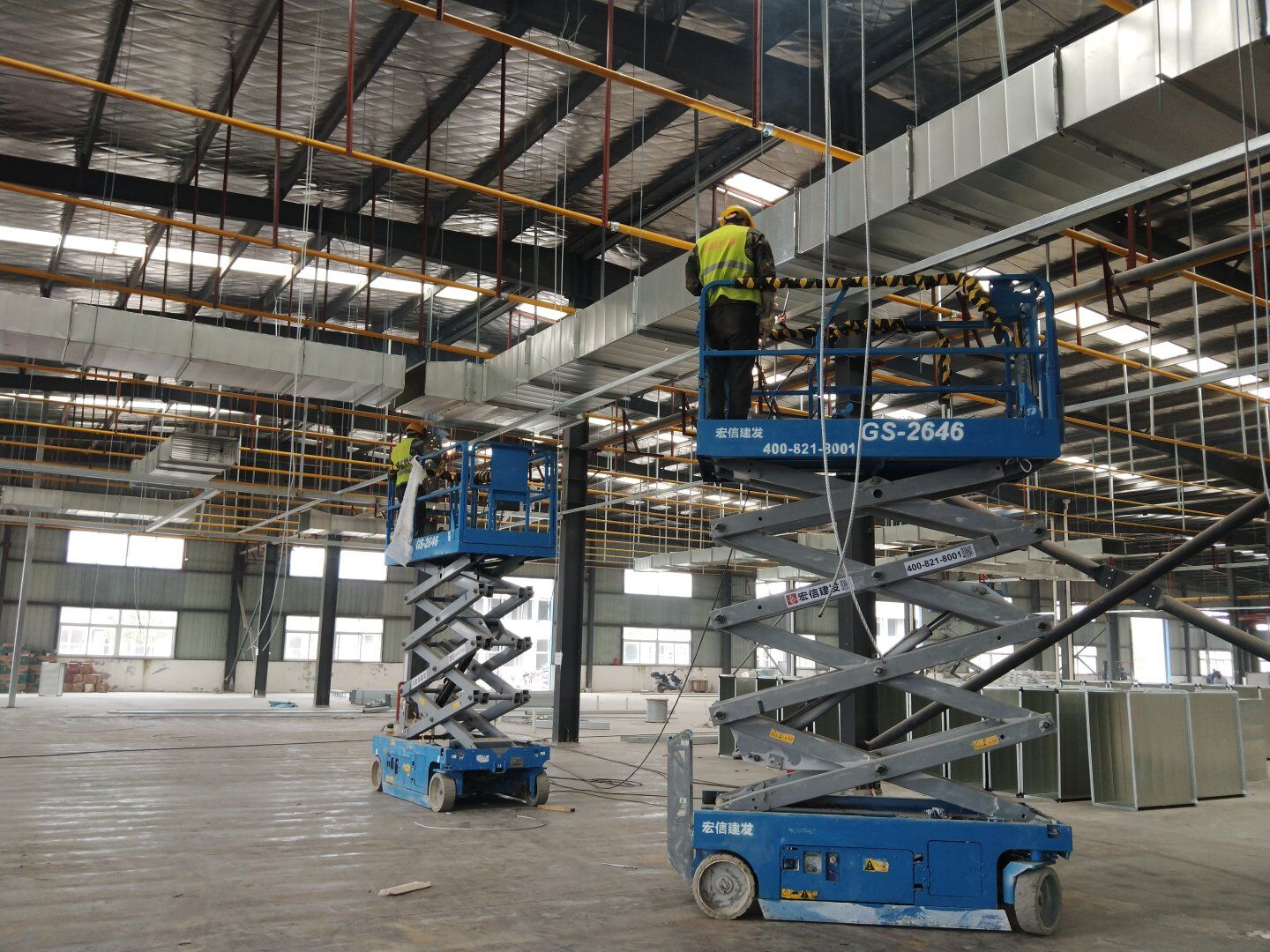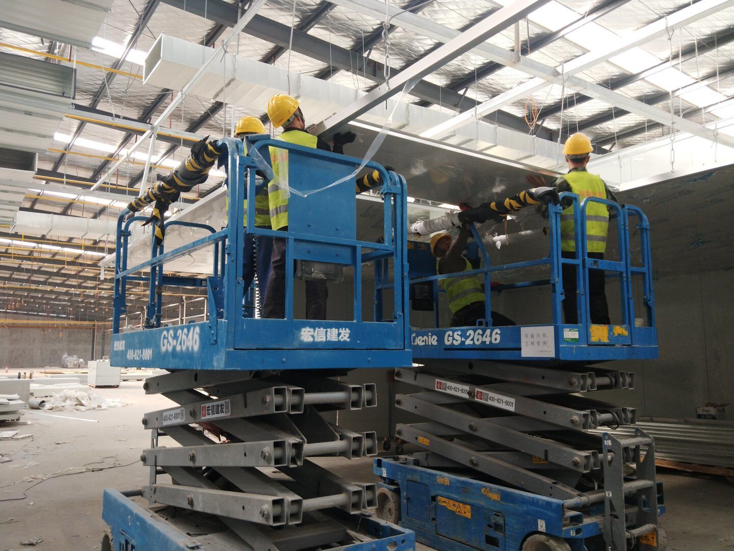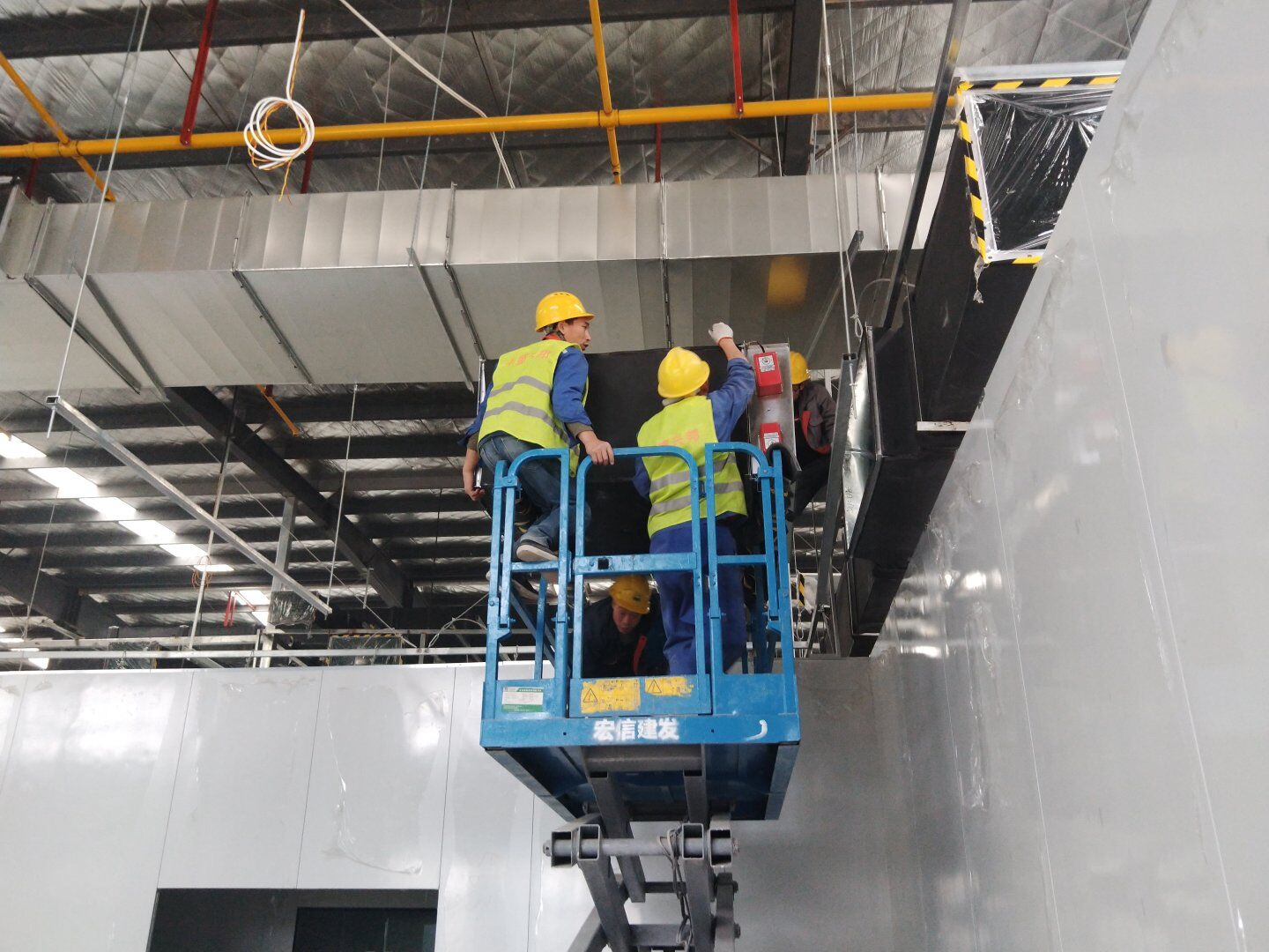 1,風管干管清洗,保溫及吊裝完成80%; 2,主風管保溫施工