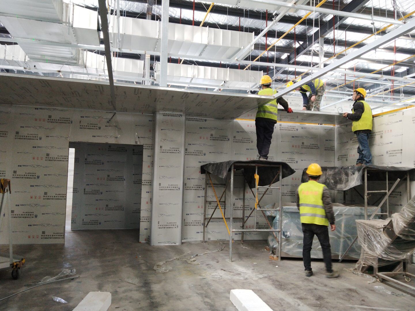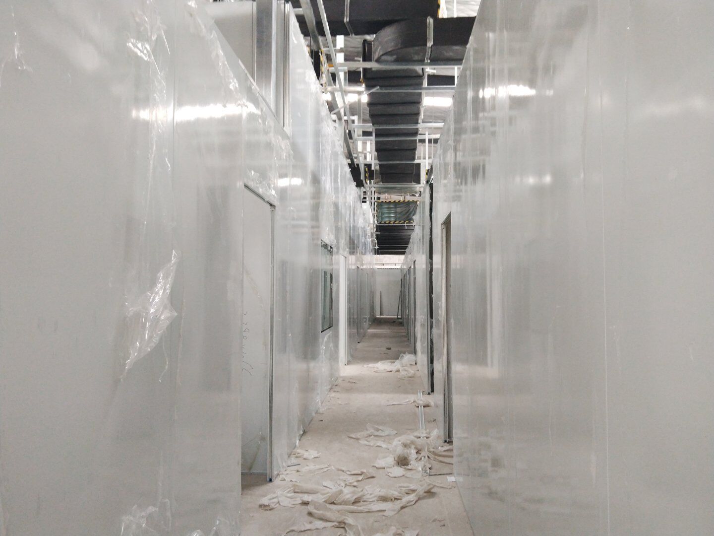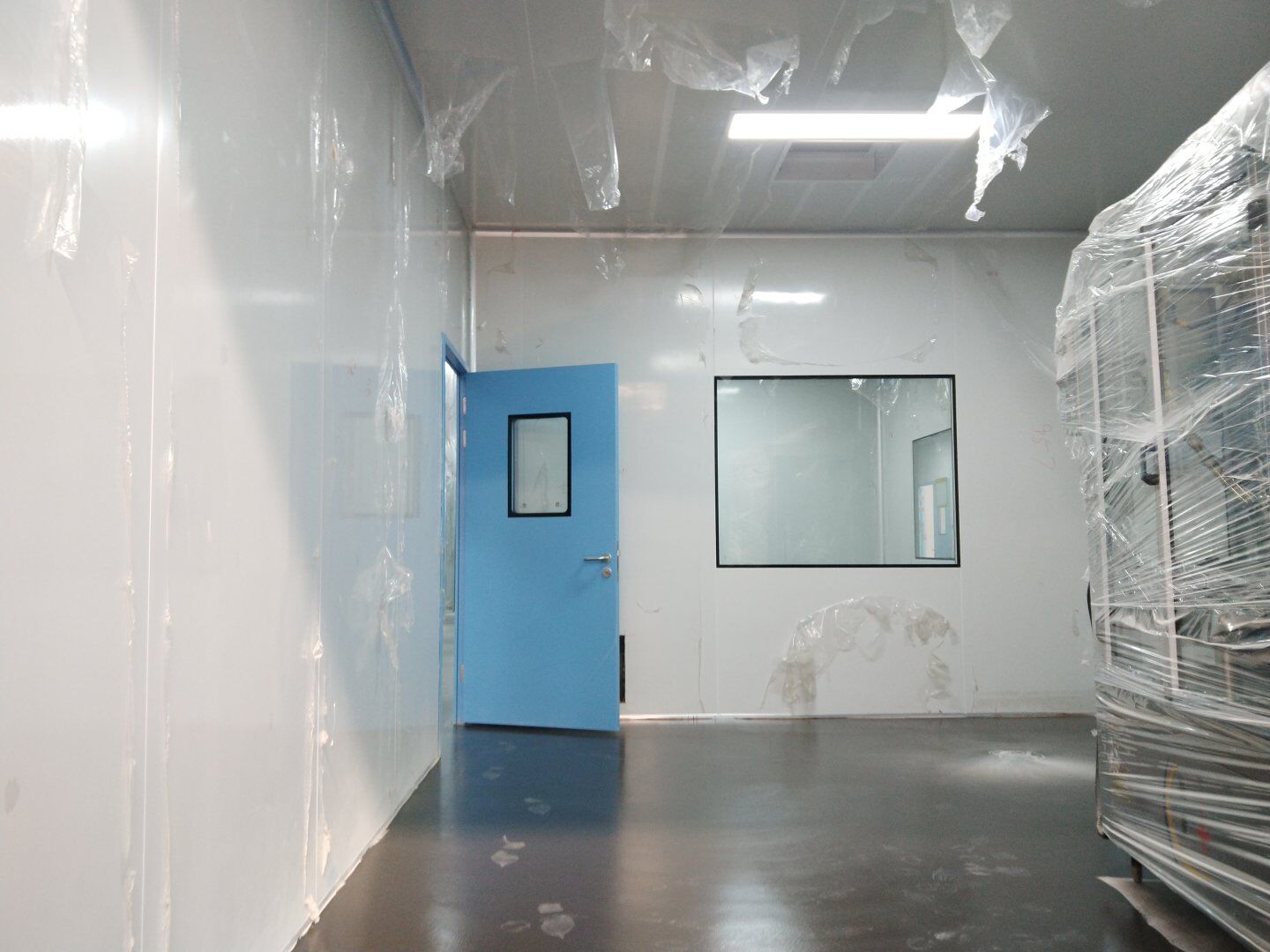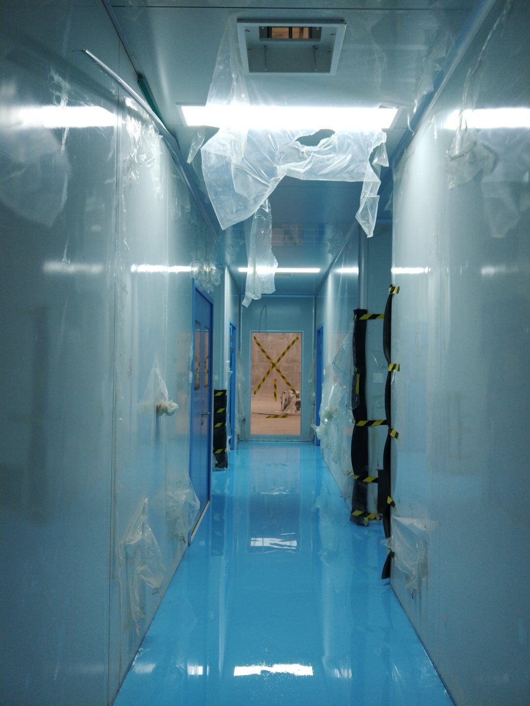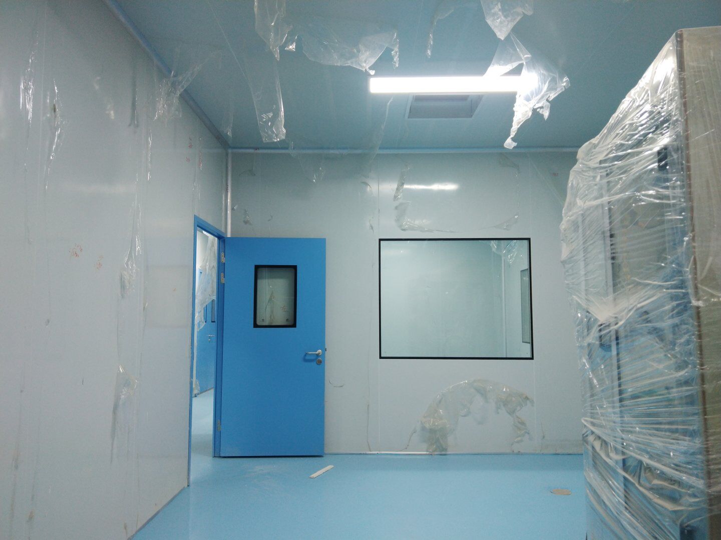 1,潔凈鋼質門安裝完成70% 2,電氣配管穿線完成65%,插座及開關安裝完成75%,照明通電完成30% 3,高效箱保溫完成80%。