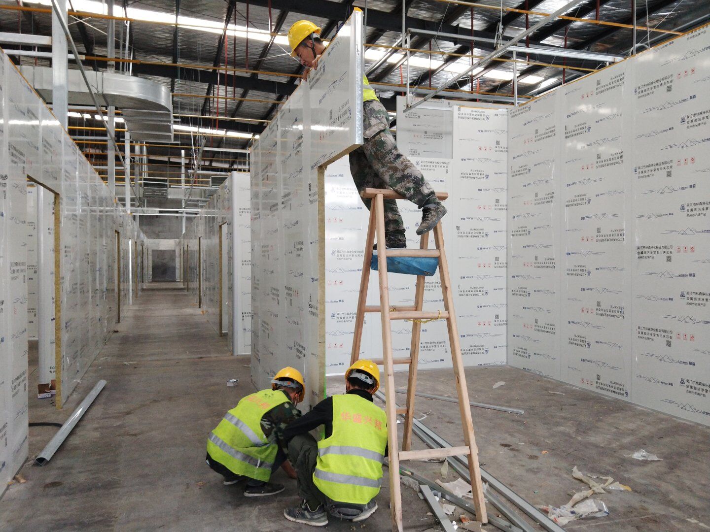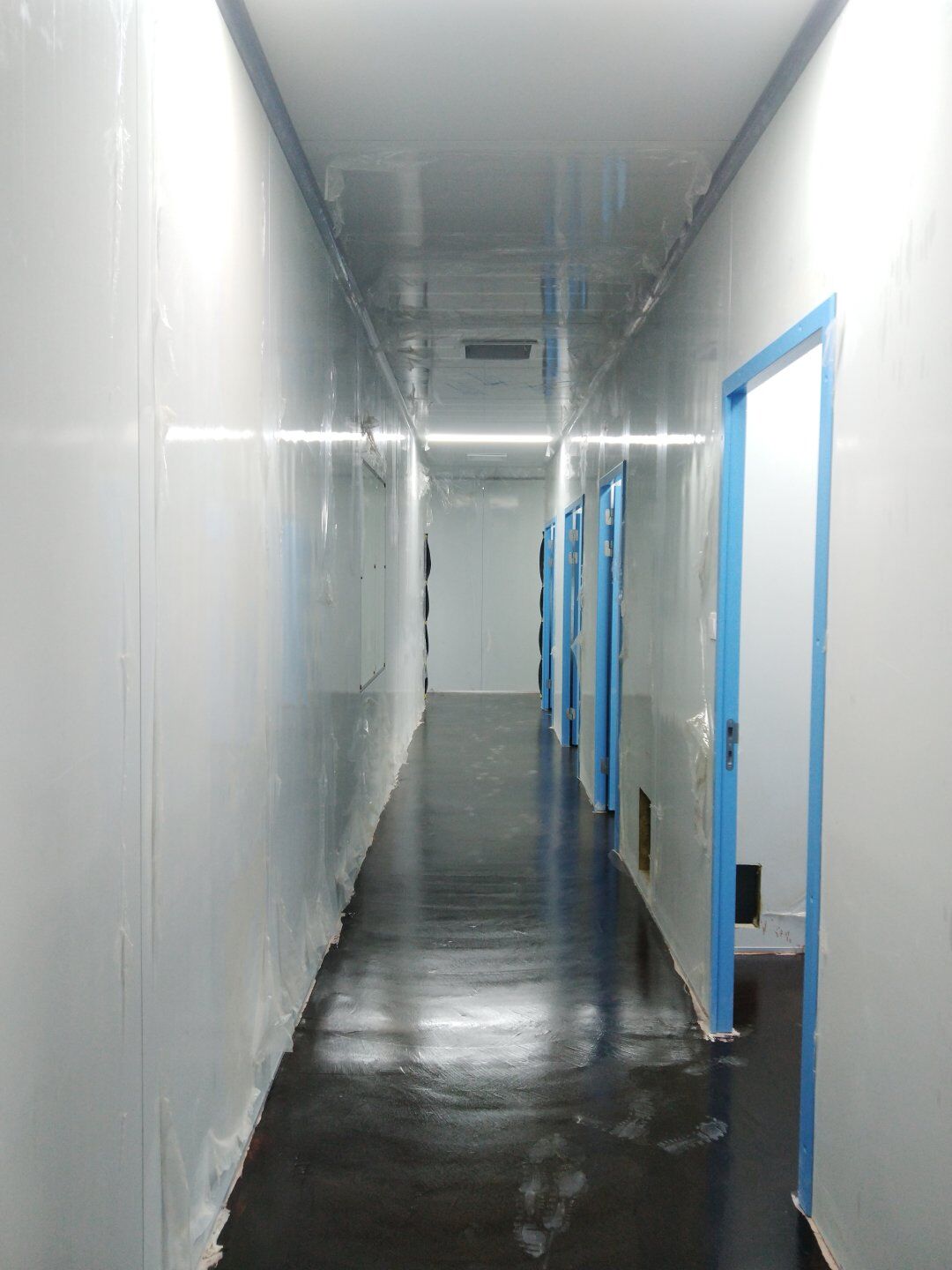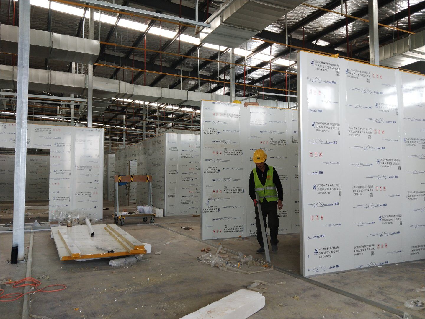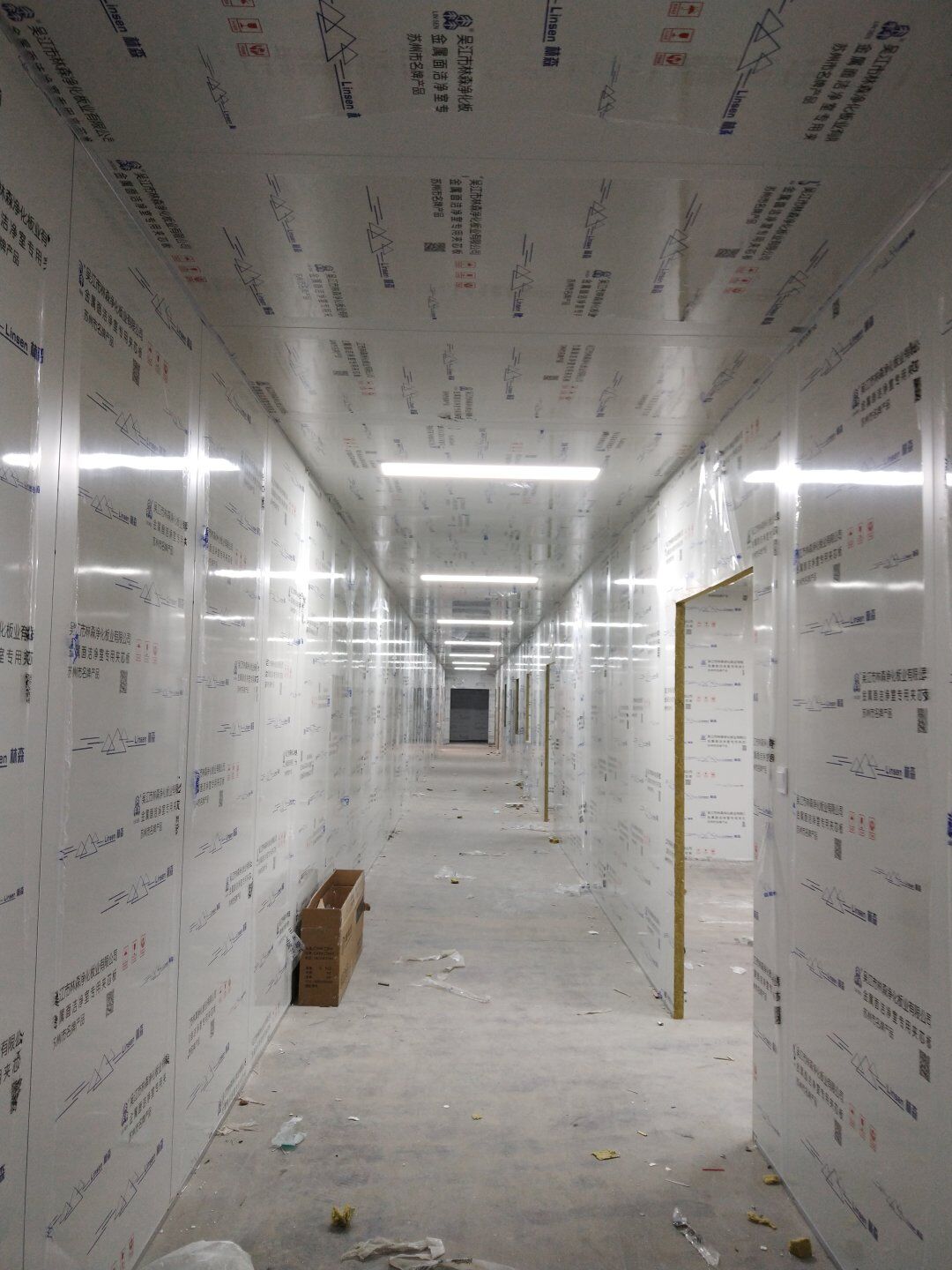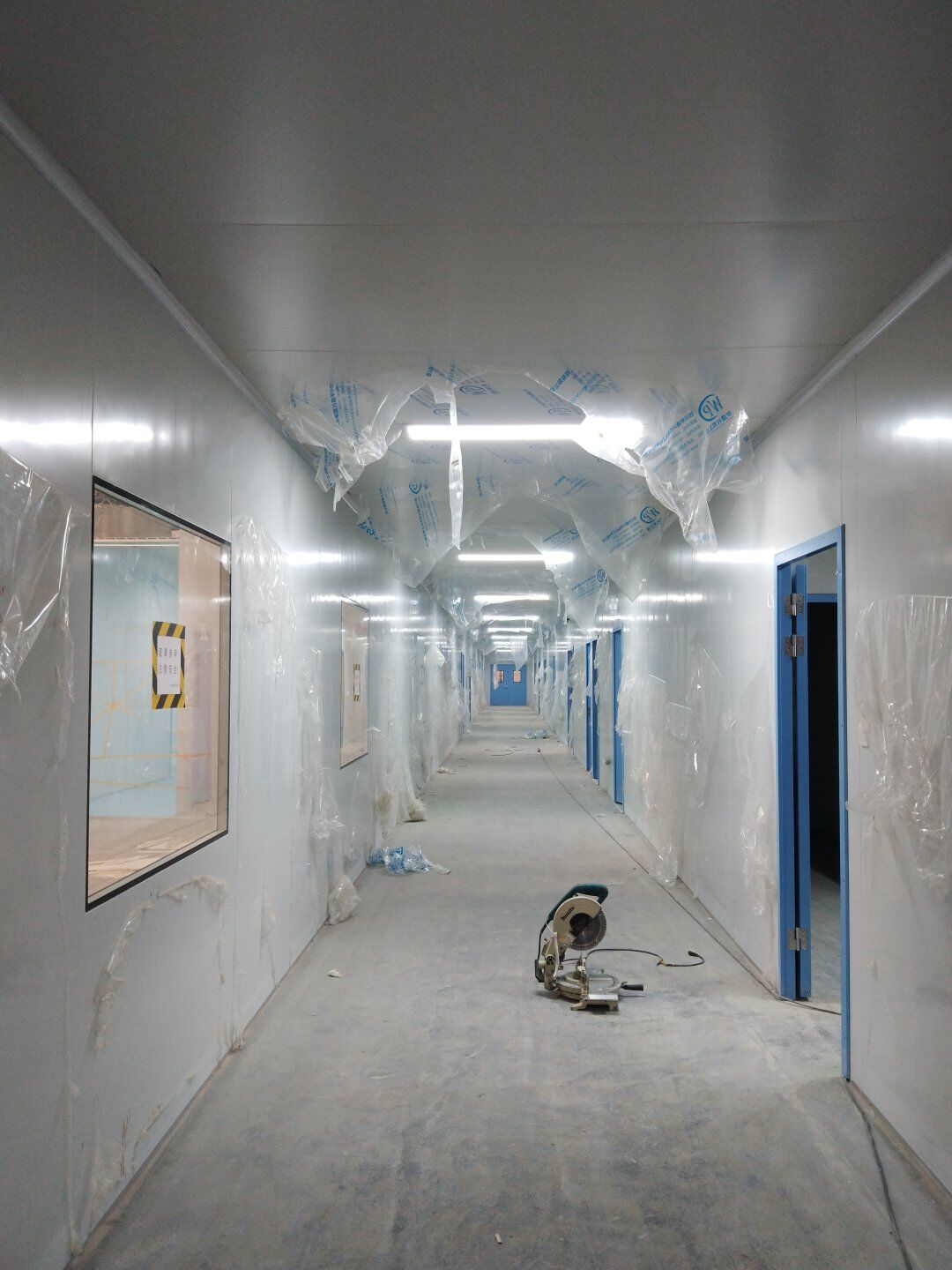 1,潔凈鋼質門安裝完成70% 2,電氣配管穿線完成65%,插座及開關安裝完成75%,照明通電完成30% 3,高效箱保溫完成80%。