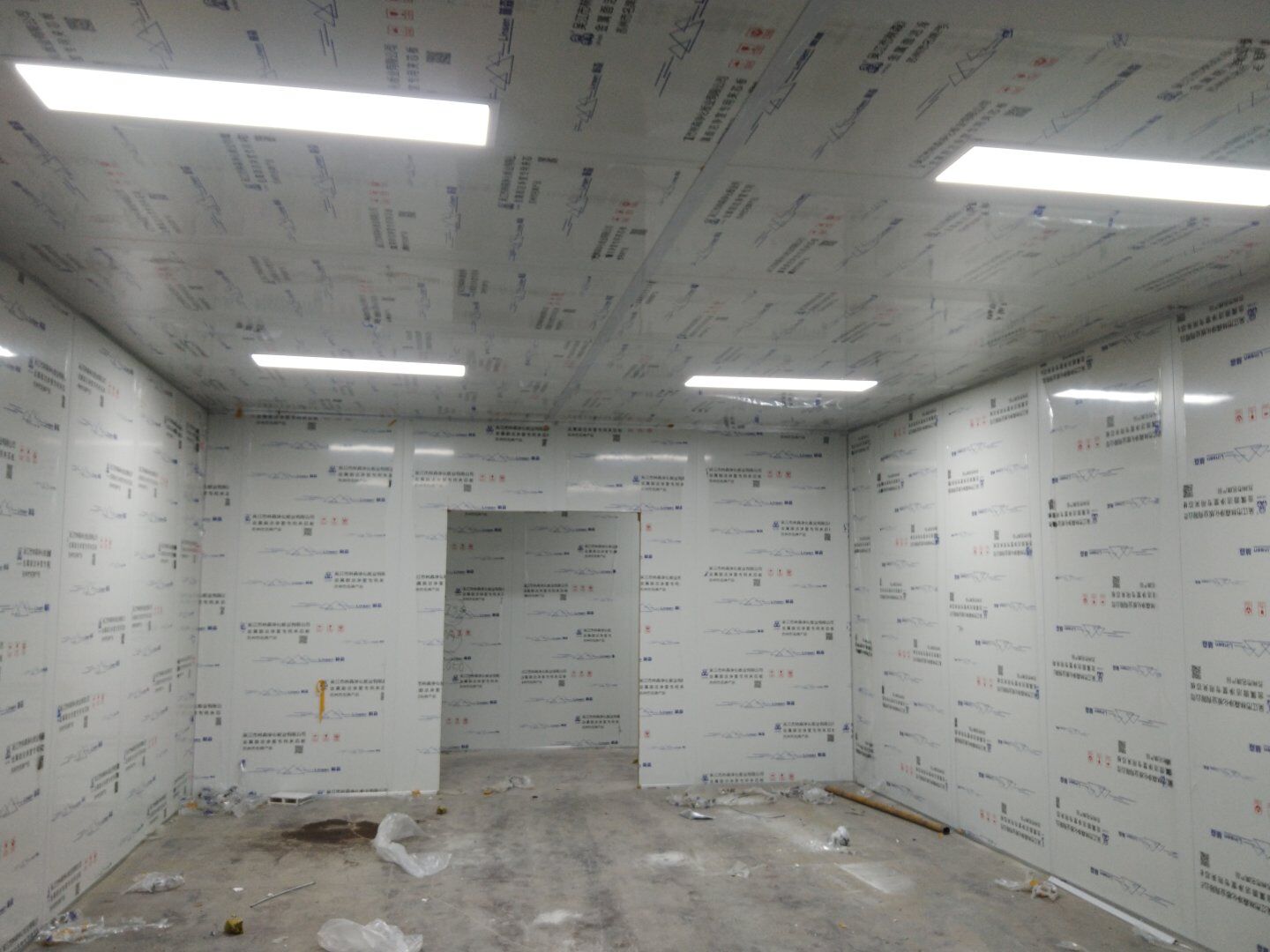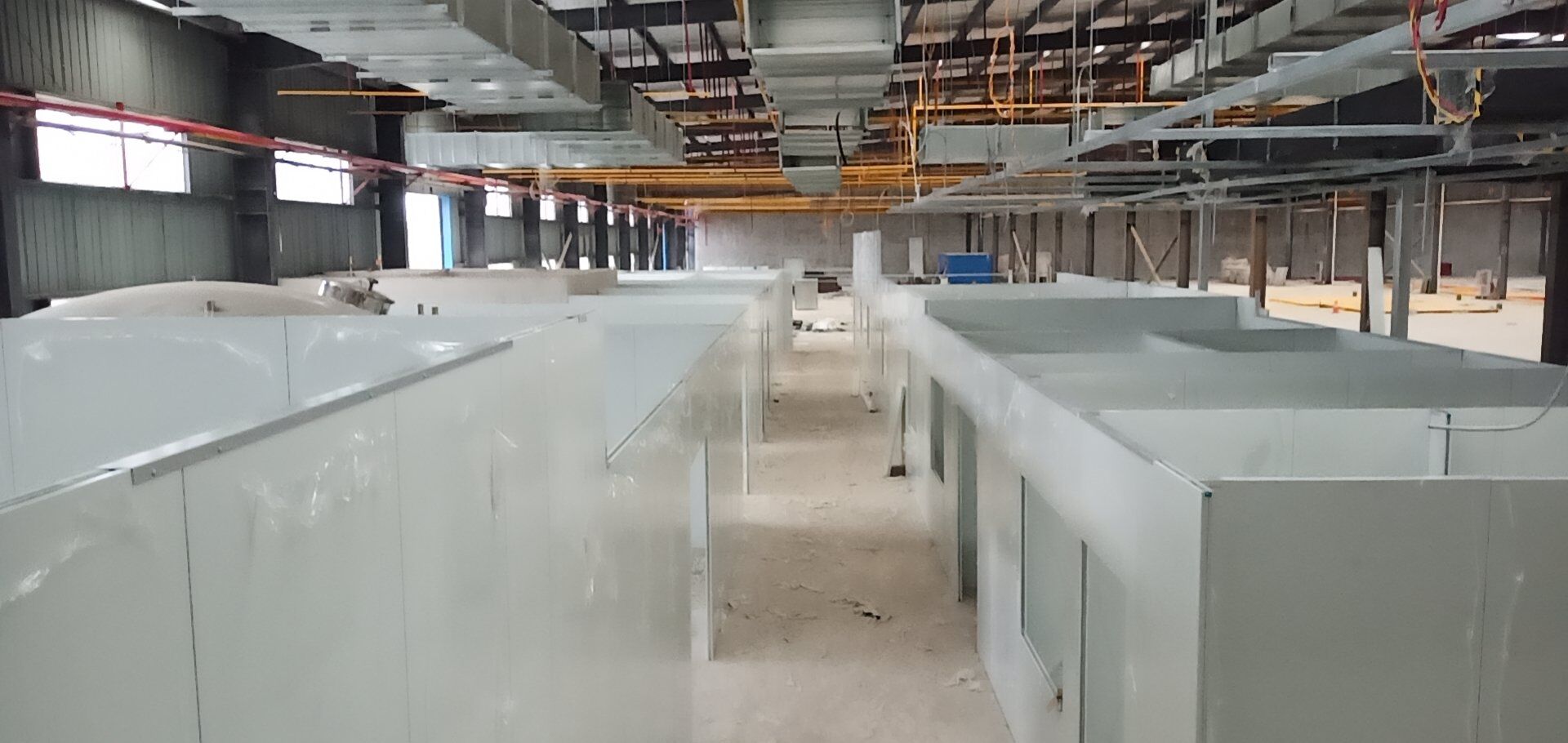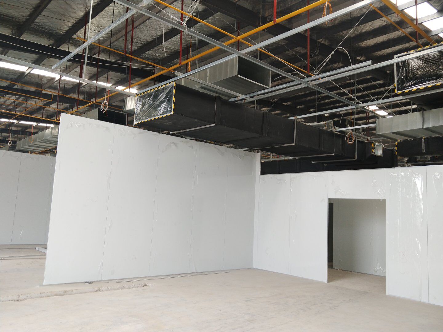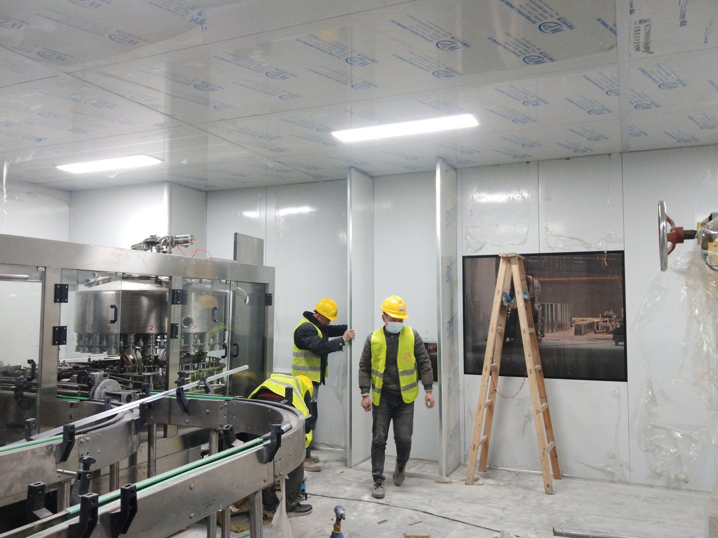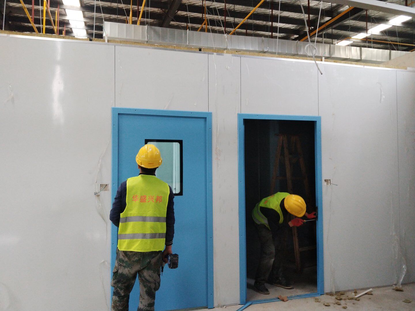 1,潔凈鋼質門安裝完成70% 2,電氣配管穿線完成65%,插座及開關安裝完成75%,照明通電完成30% 3,高效箱保溫完成80%。