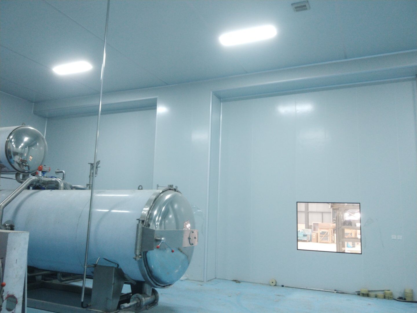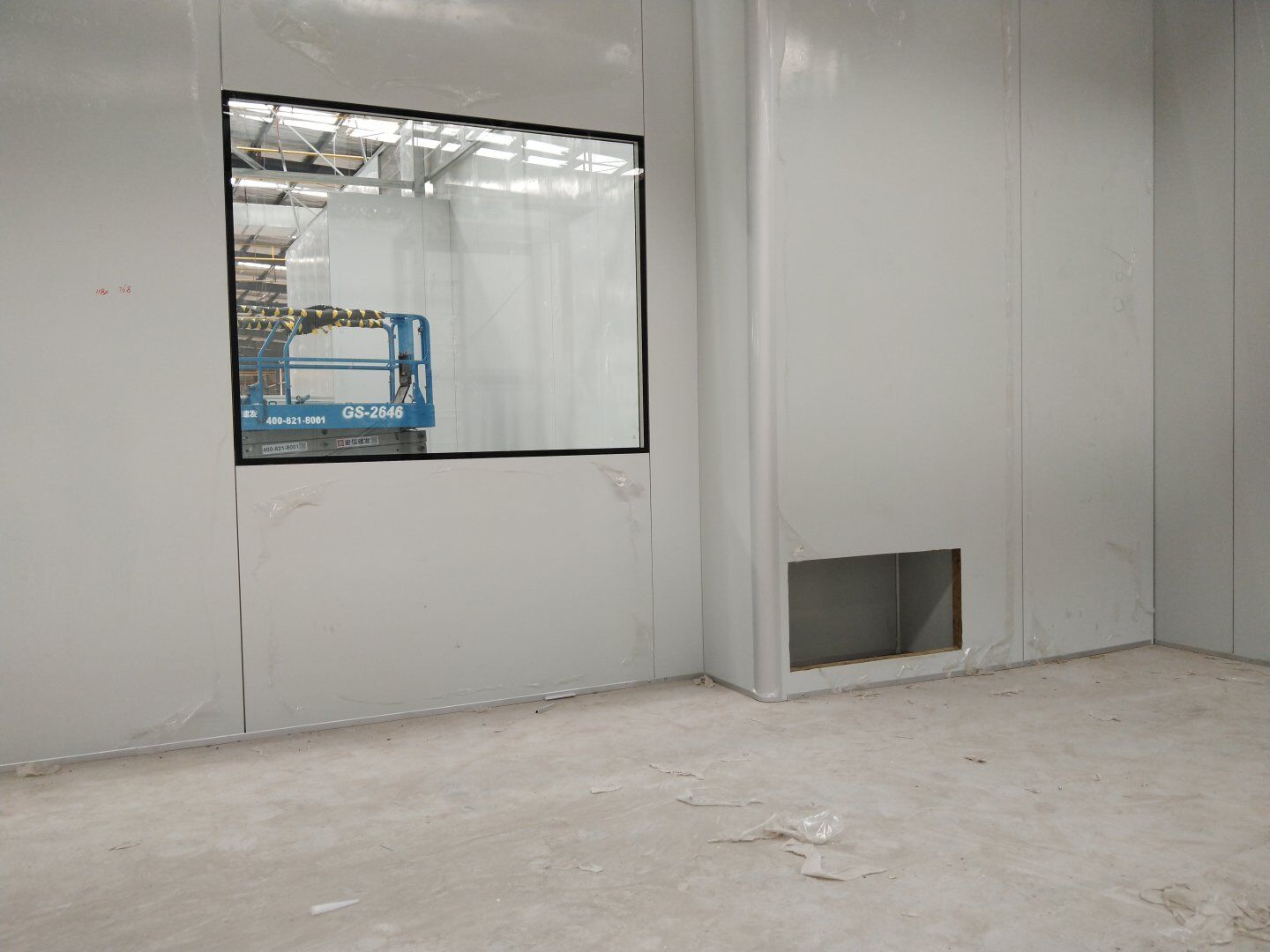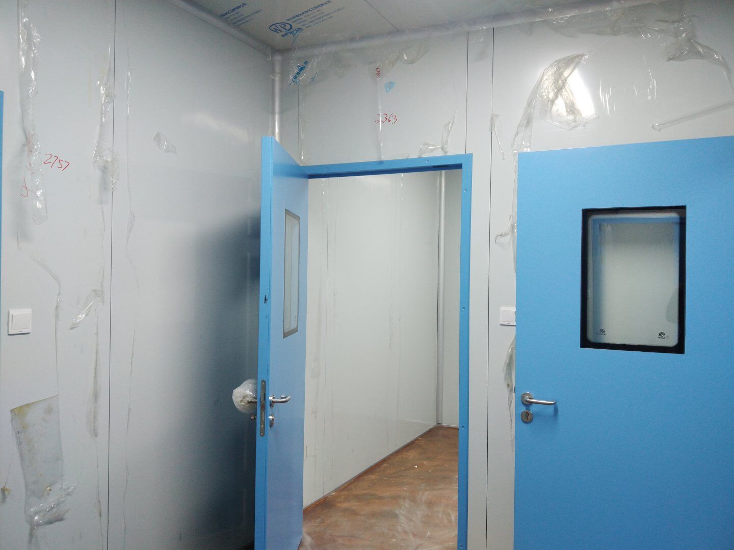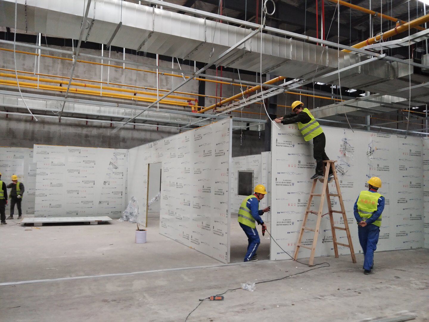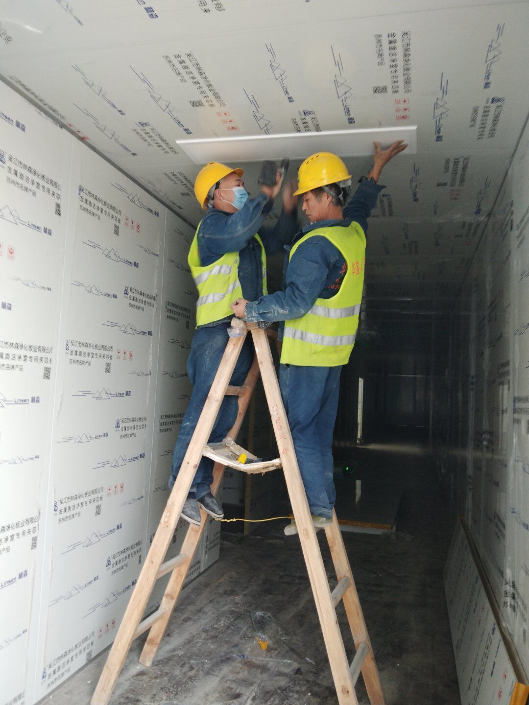 1,潔凈鋼質門安裝完成70% 2,電氣配管穿線完成65%,插座及開關安裝完成75%,照明通電完成30% 3,高效箱保溫完成80%。