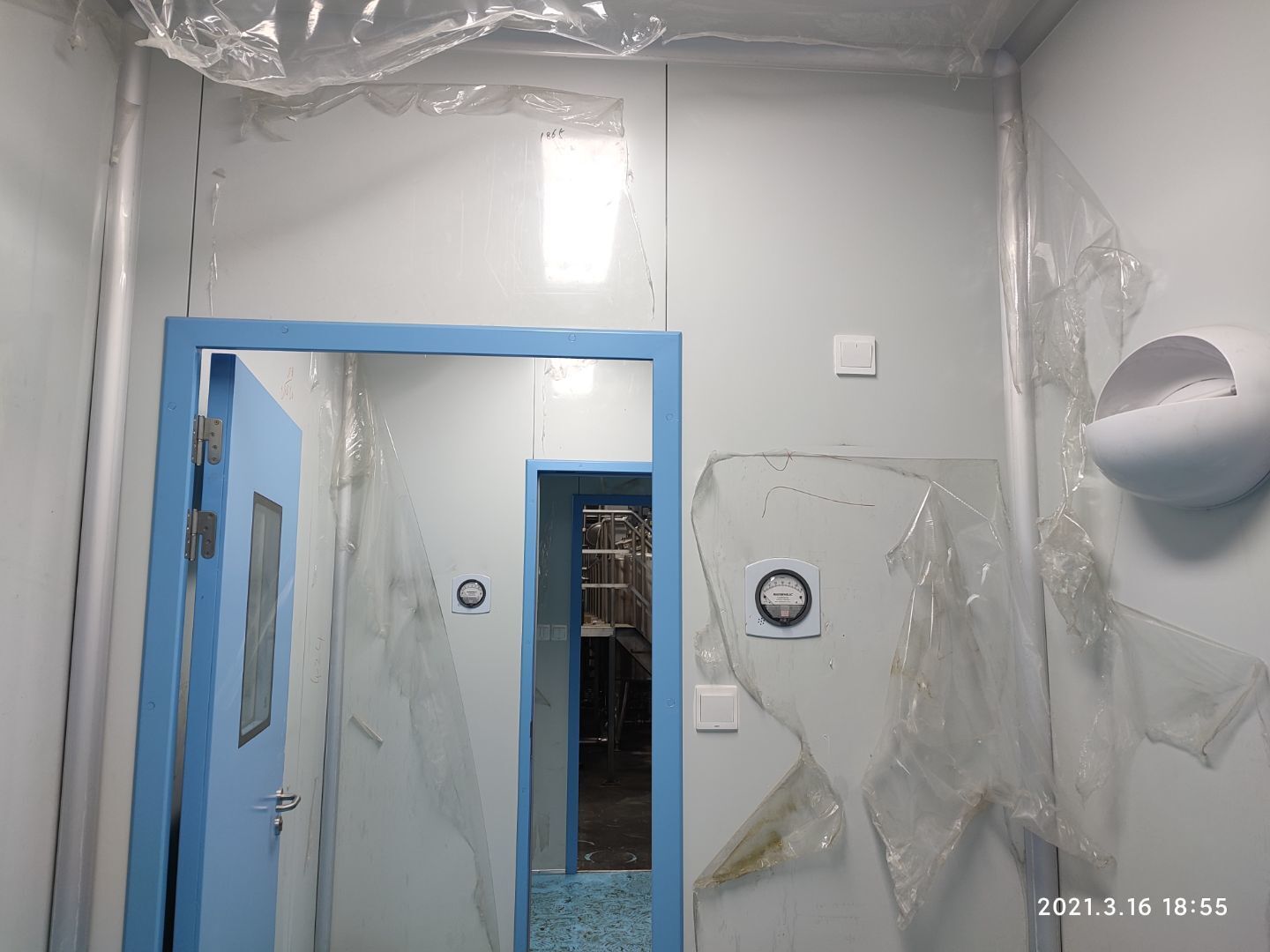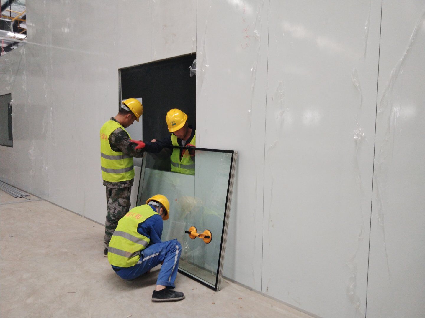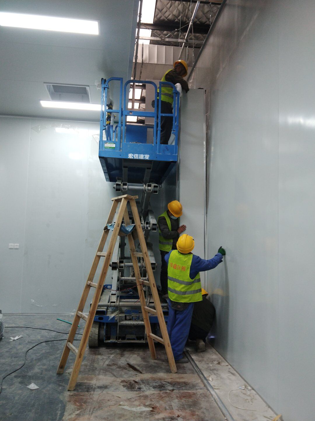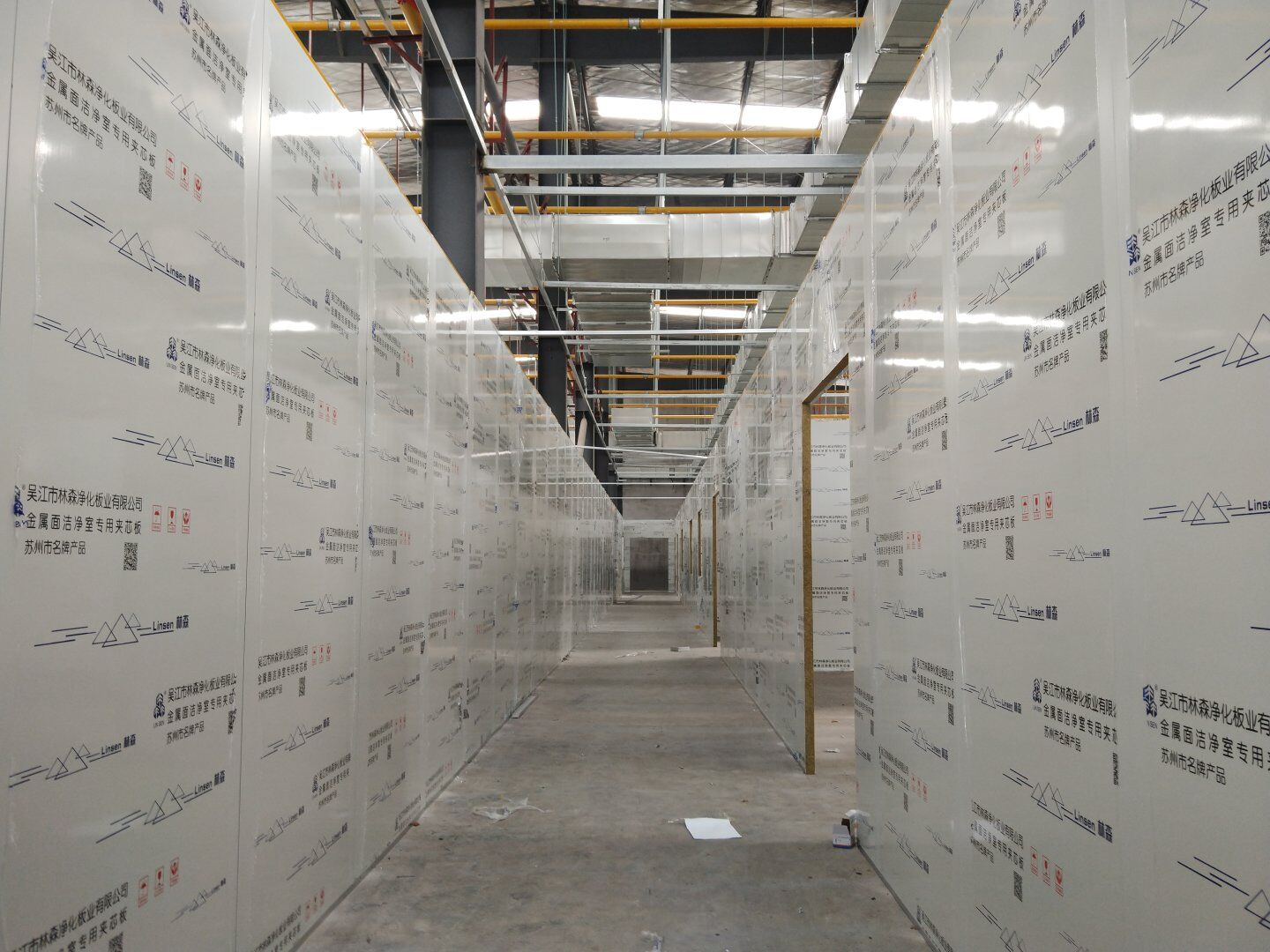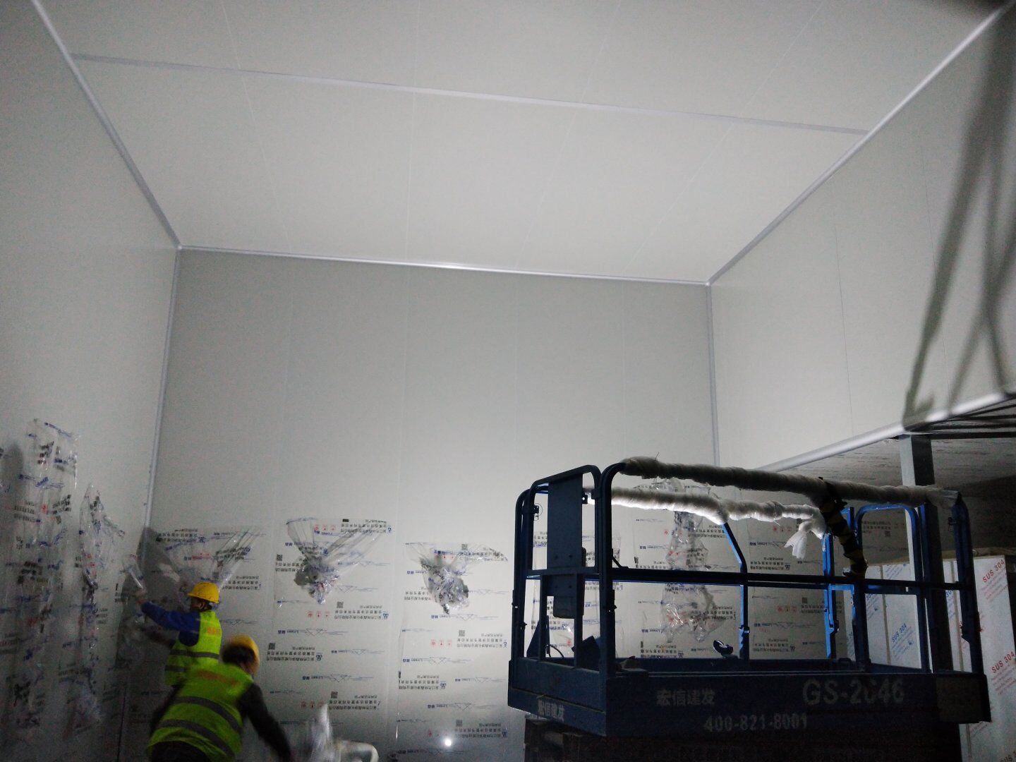1,潔凈鋼質門安裝完成70% 2,電氣配管穿線完成65%,插座及開關安裝完成75%,照明通電完成30% 3,高效箱保溫完成80%。