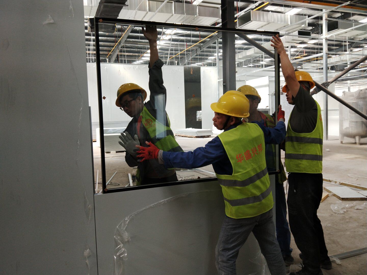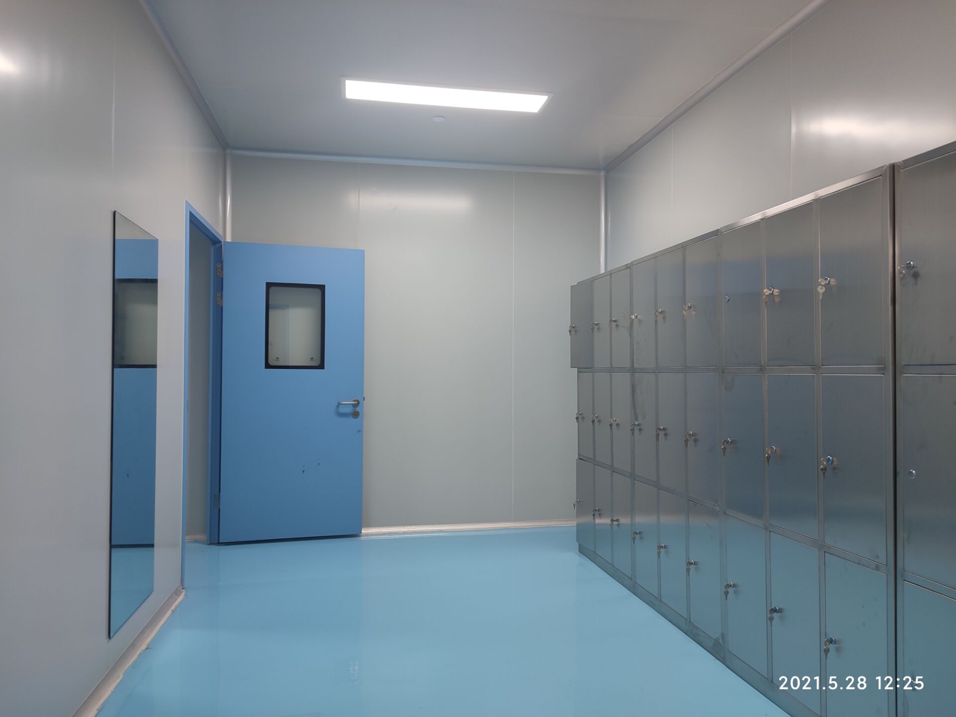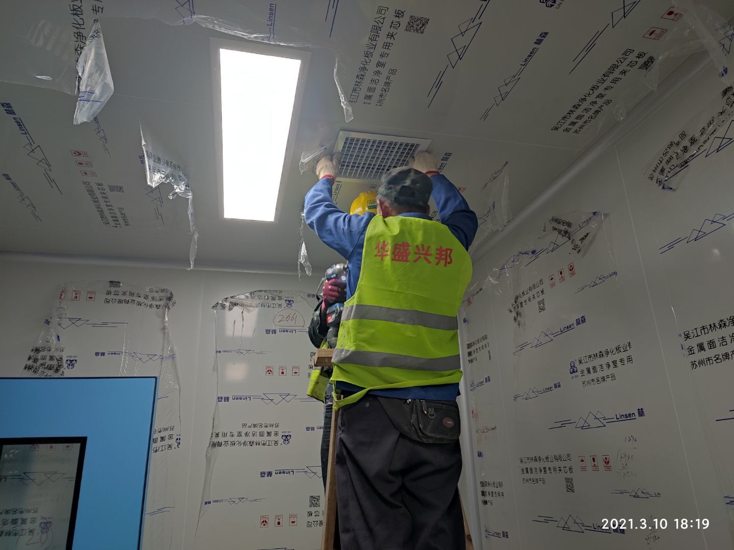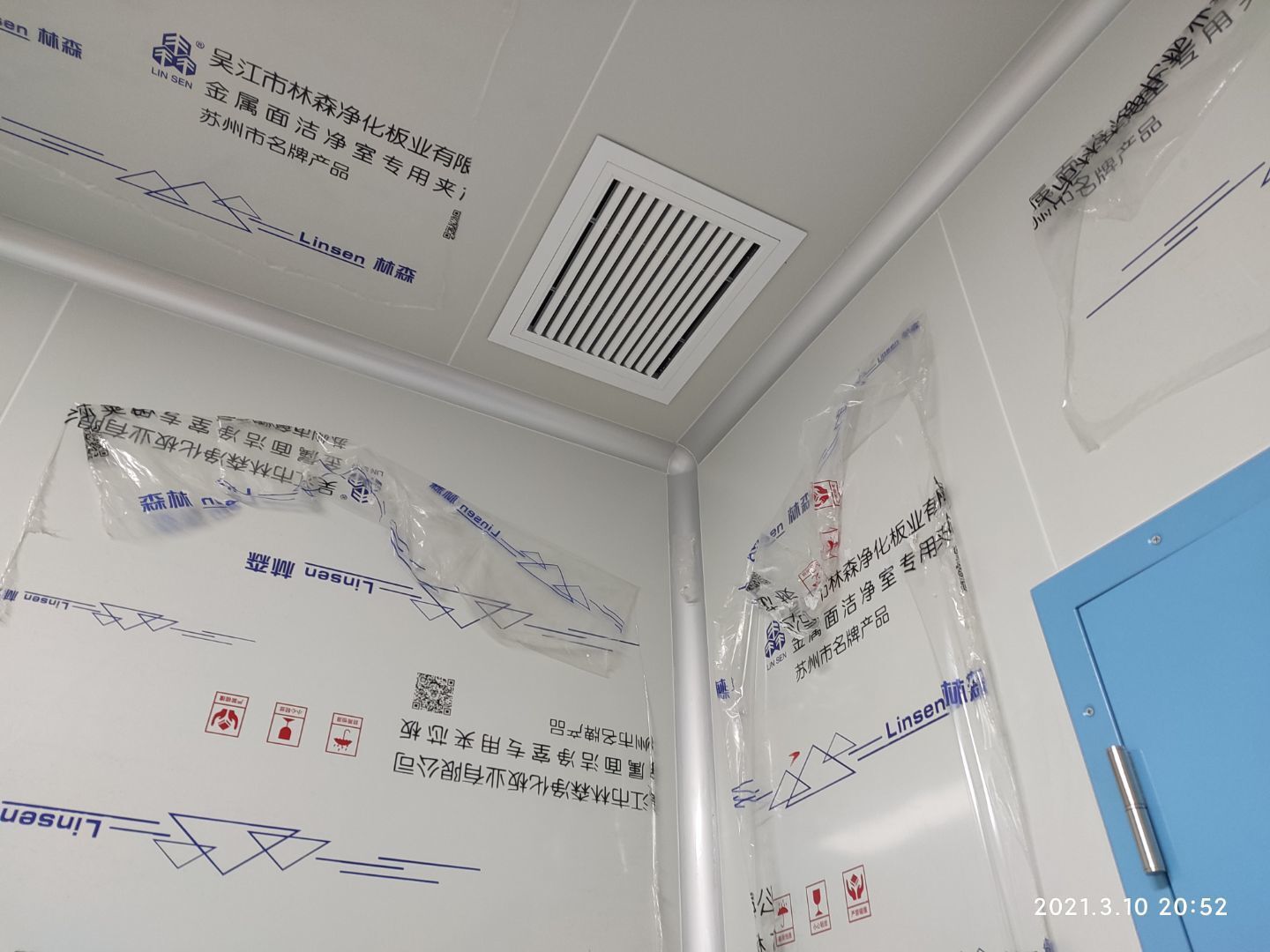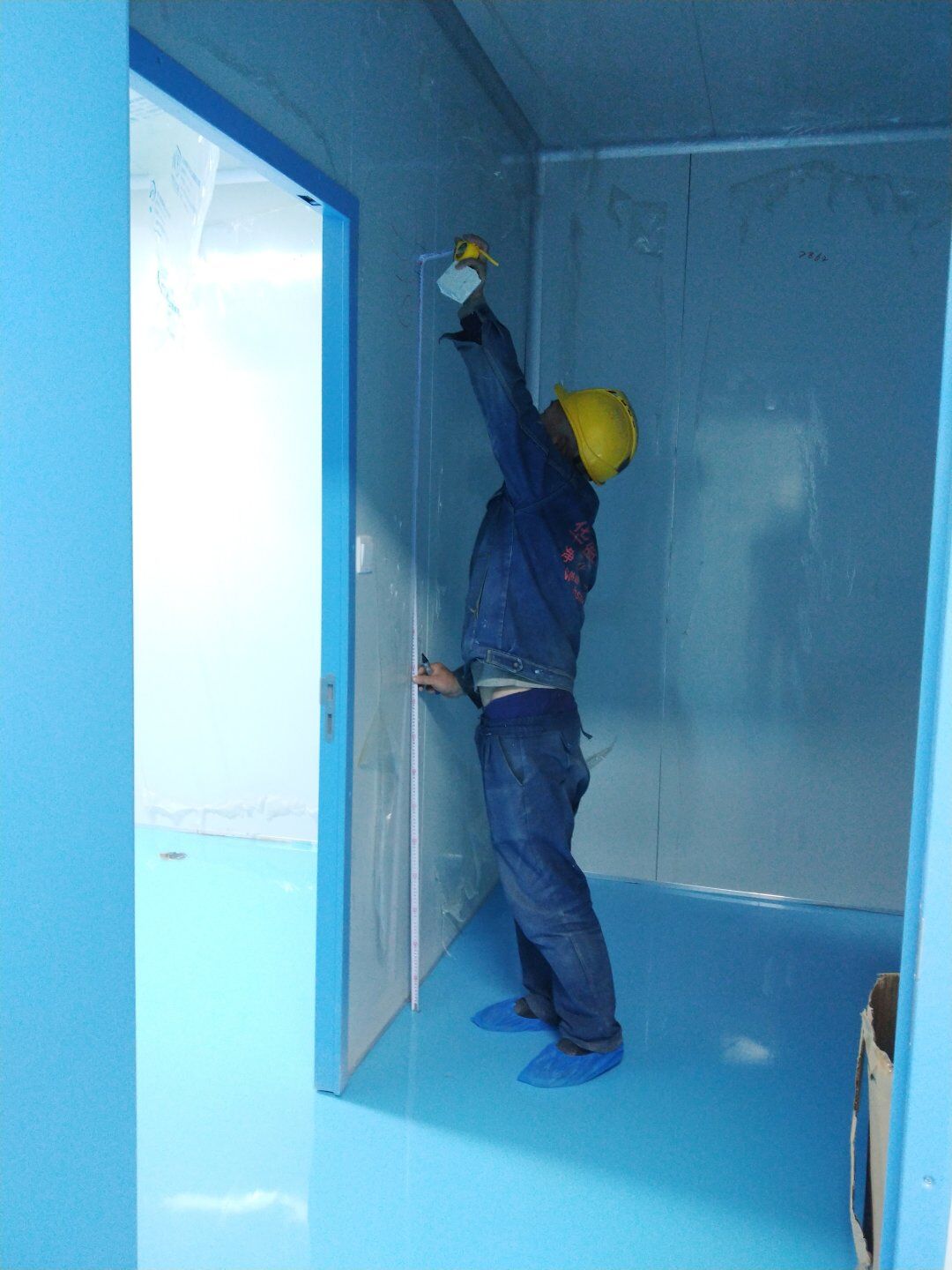 1,潔凈鋼質門安裝完成70% 2,電氣配管穿線完成65%,插座及開關安裝完成75%,照明通電完成30% 3,高效箱保溫完成80%。