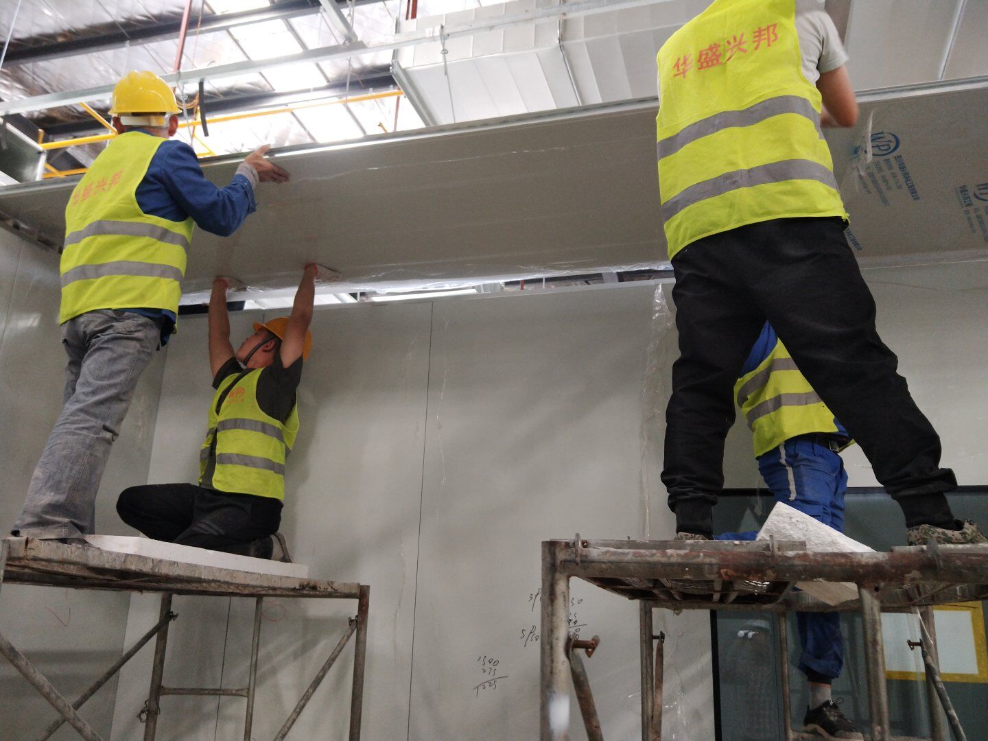 1,彩鋼隔墻完成40%; 2,彩鋼板頂板完成20%。