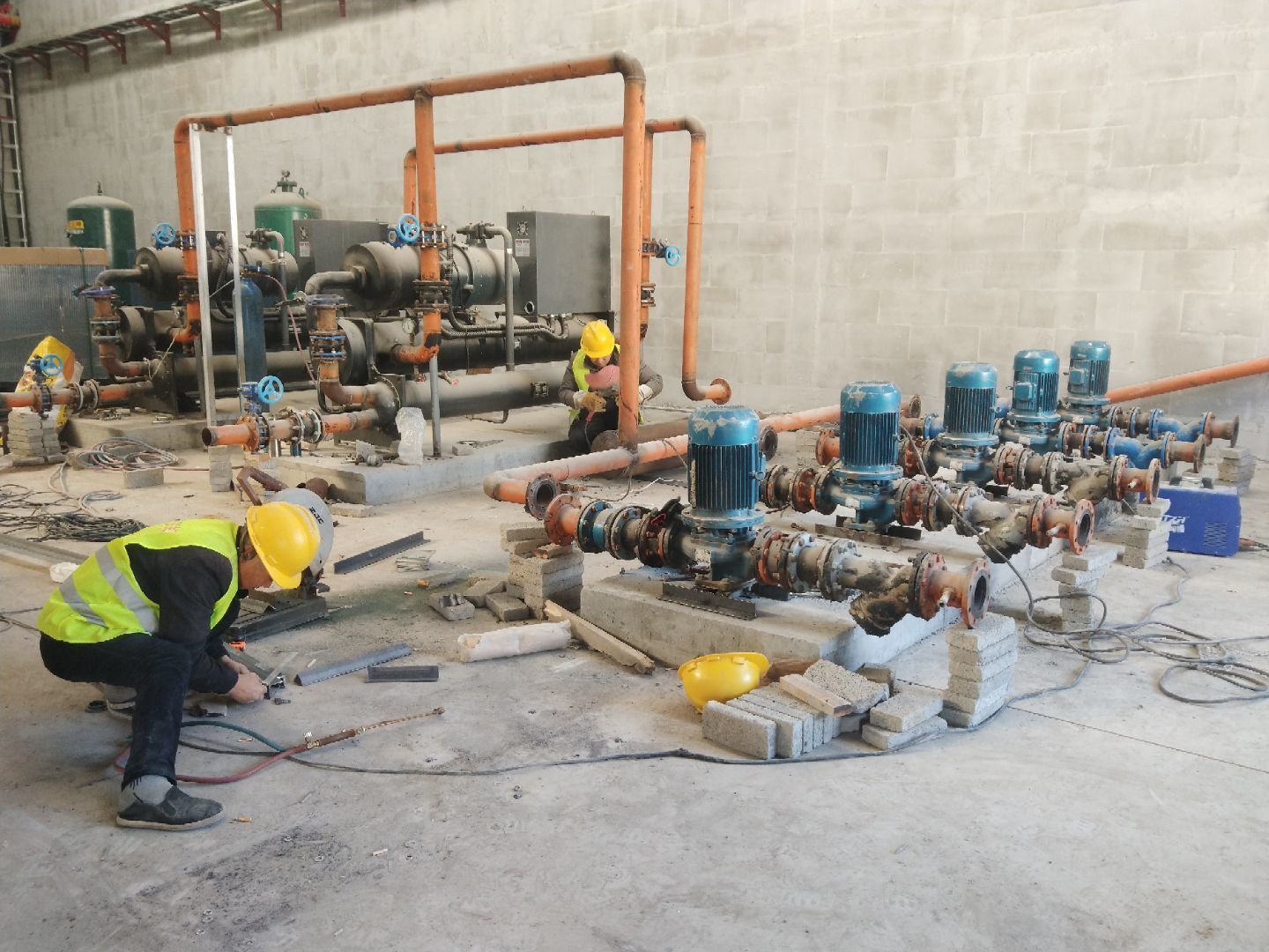 液體車間: 1,空調水管除銹刷漆完成,水管改造切割,水泵拆除移位完成空調機組就位完成, 2,風管扣管。 飲片車間: 1,配圓弧完成 2,清理衛(wèi)生完成。