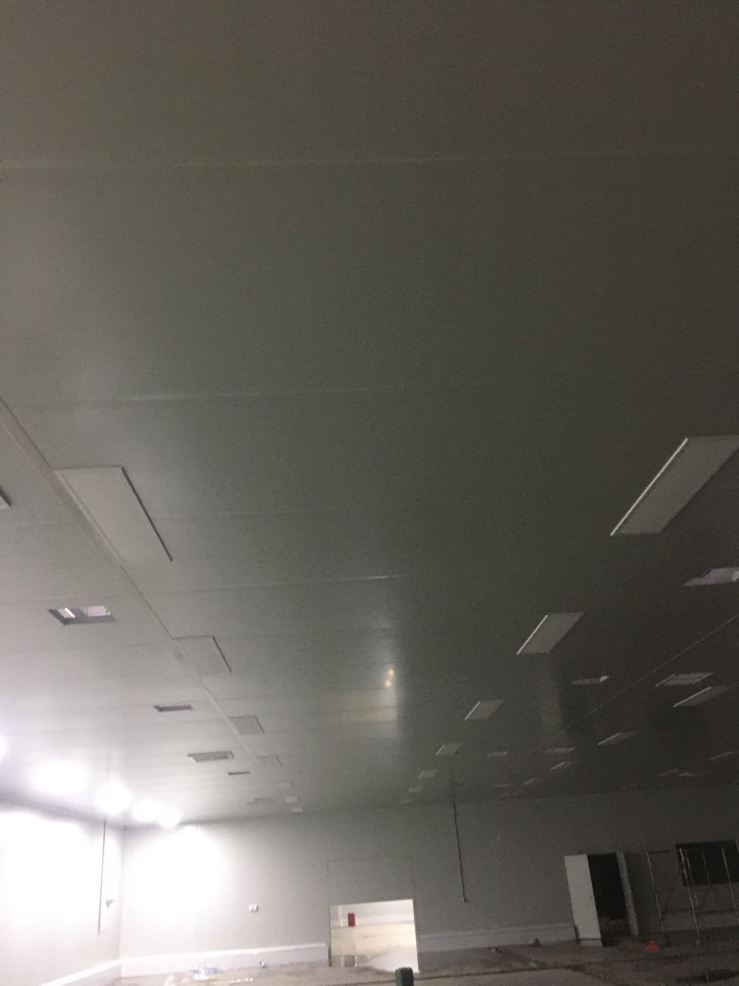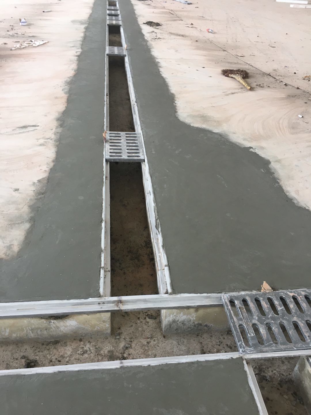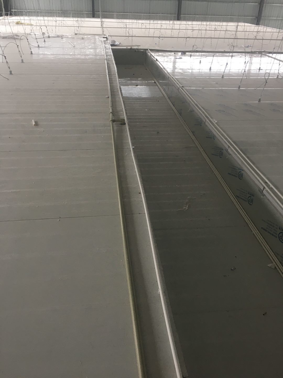 彩鋼頂板除預留外完成100%門、窗、各完成100%地坪固化處理,完成100%,排水溝環氧完成20圓狐及底座同時完成85%水,電、完成90%