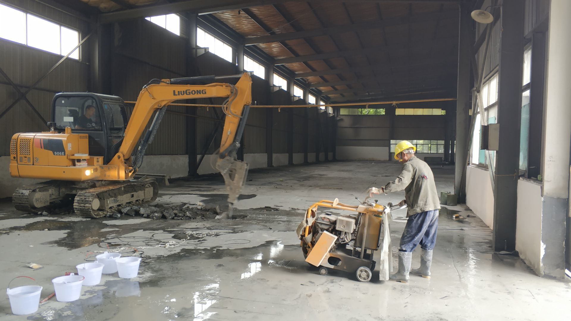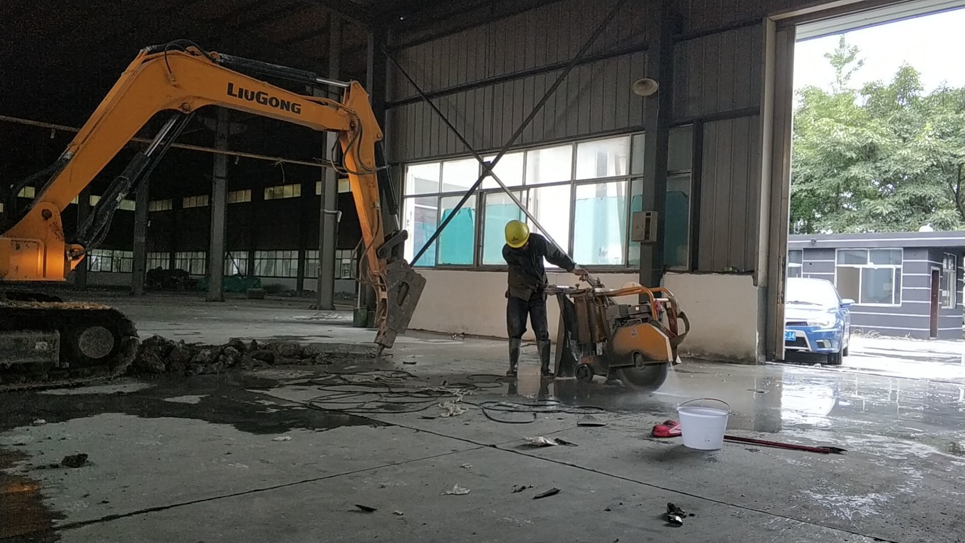 混凝土層破處開挖,水溝開挖切線施工,排水溝混凝土層破除