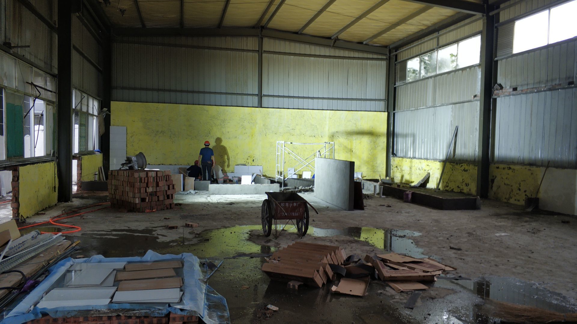 1、加工區(qū)域墻板安裝完成百分之七十,加固。 2、新增周轉(zhuǎn)清洗間墻面貼磚完成。 3、廠區(qū)前新增貼磚面乳膠漆清除完成百分之七十。